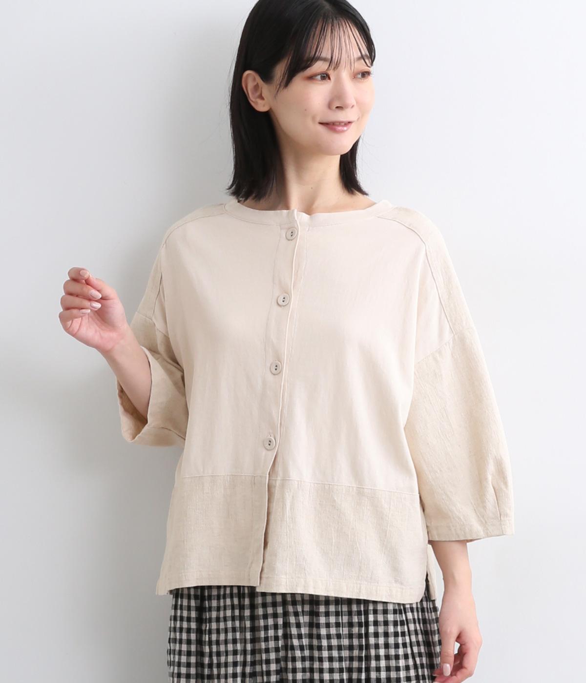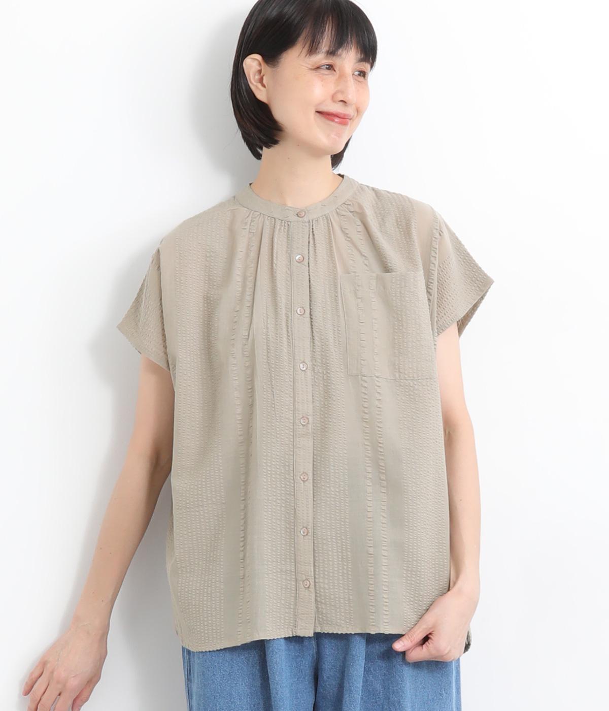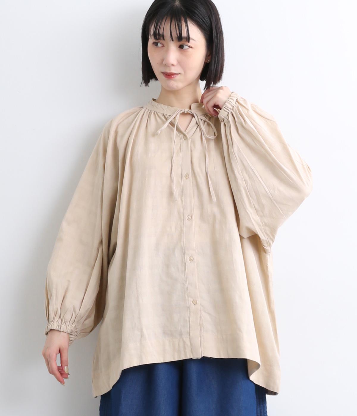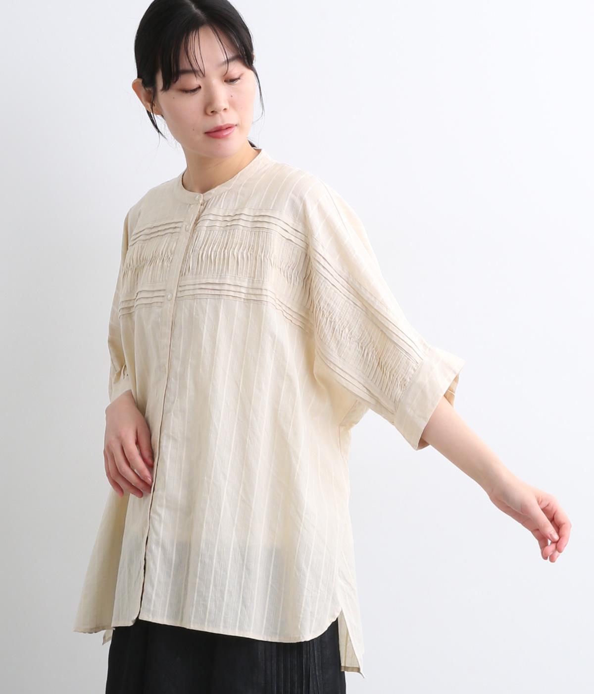 コットンワッシャーストライプクレリックブラウスベージュ
