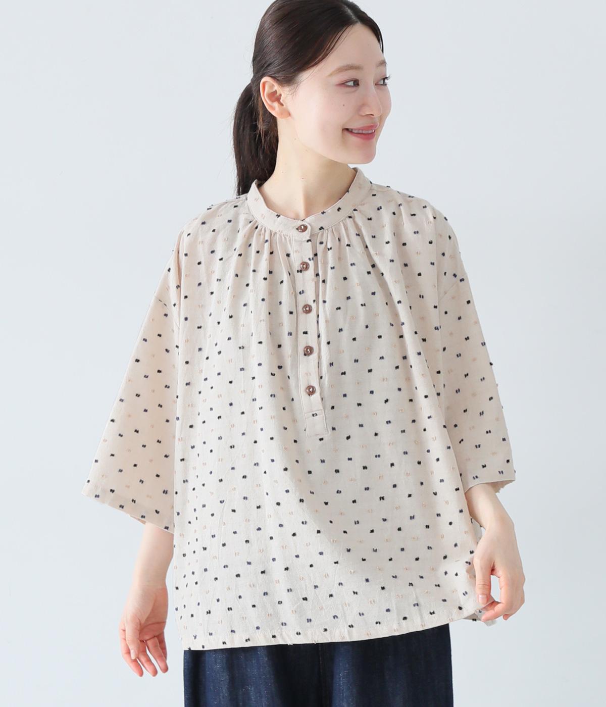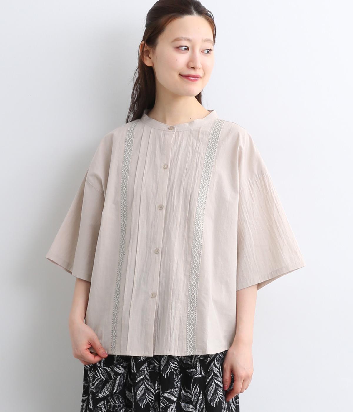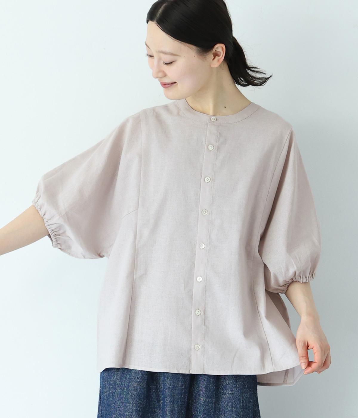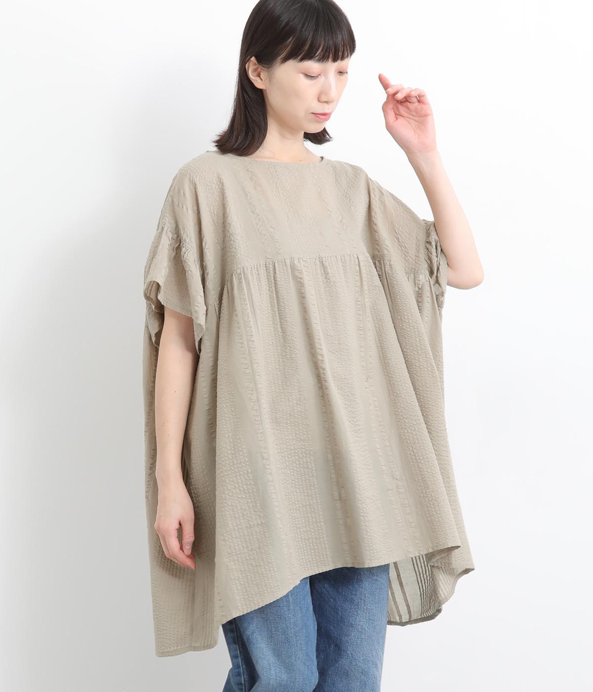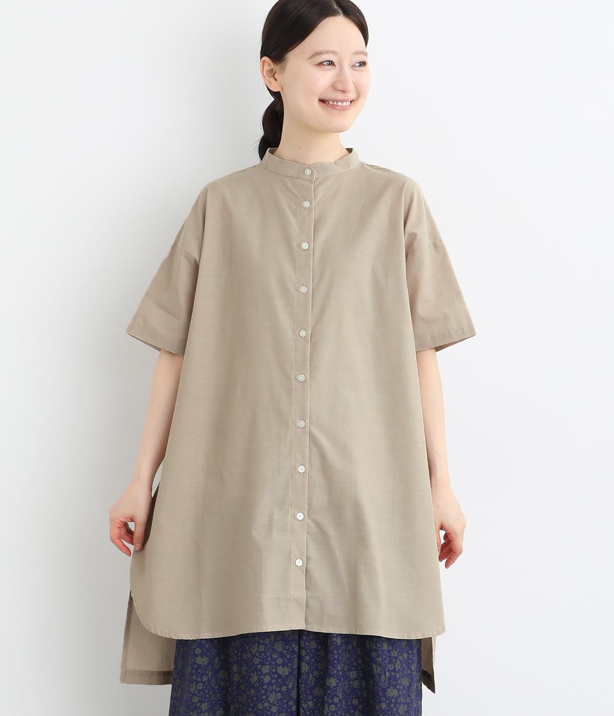 コットンワッシャーストライプクレリックブラウスベージュ
