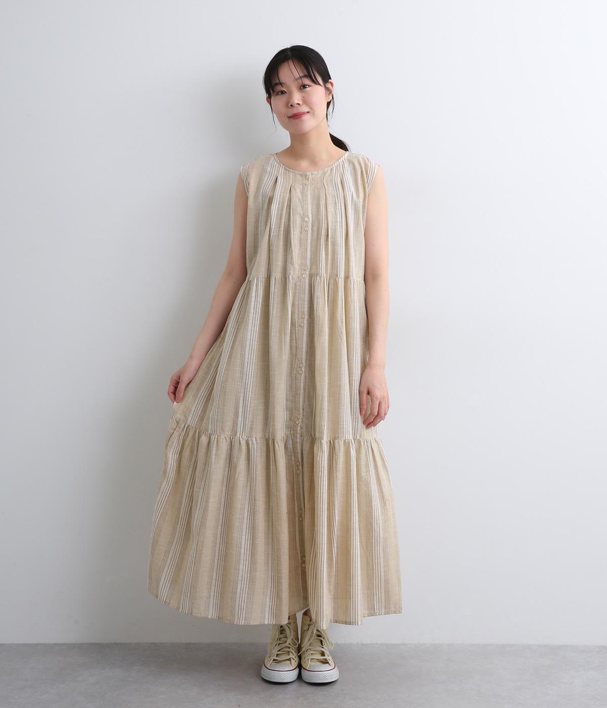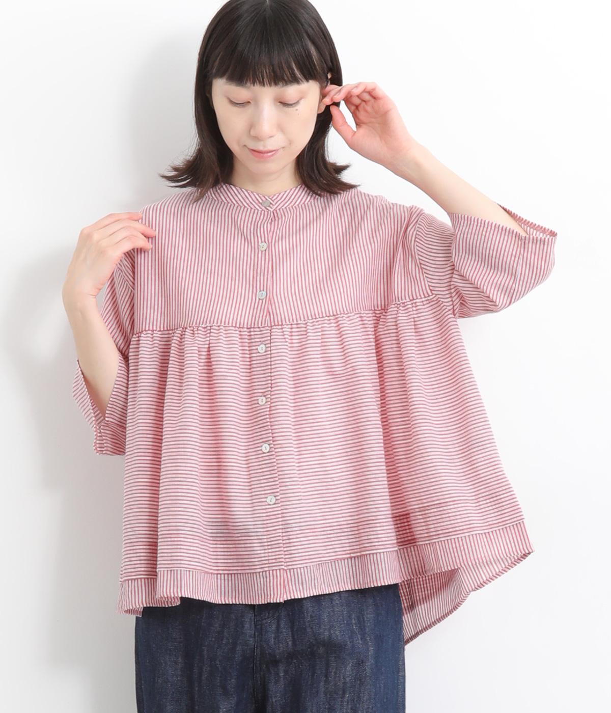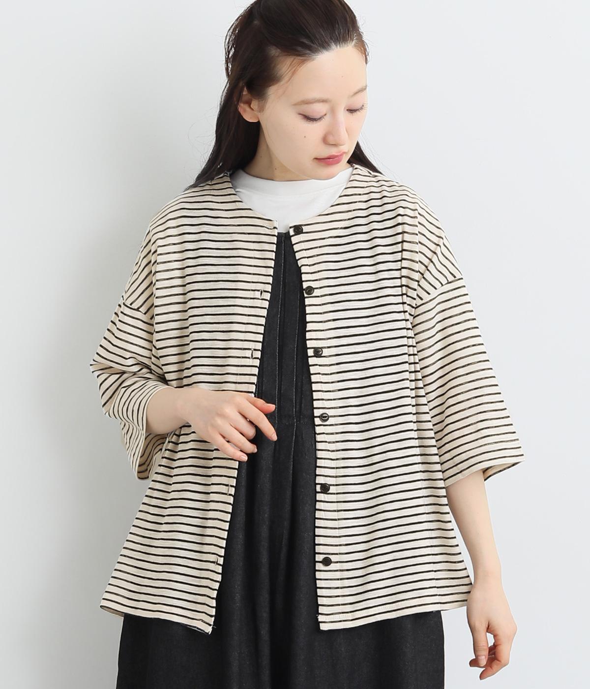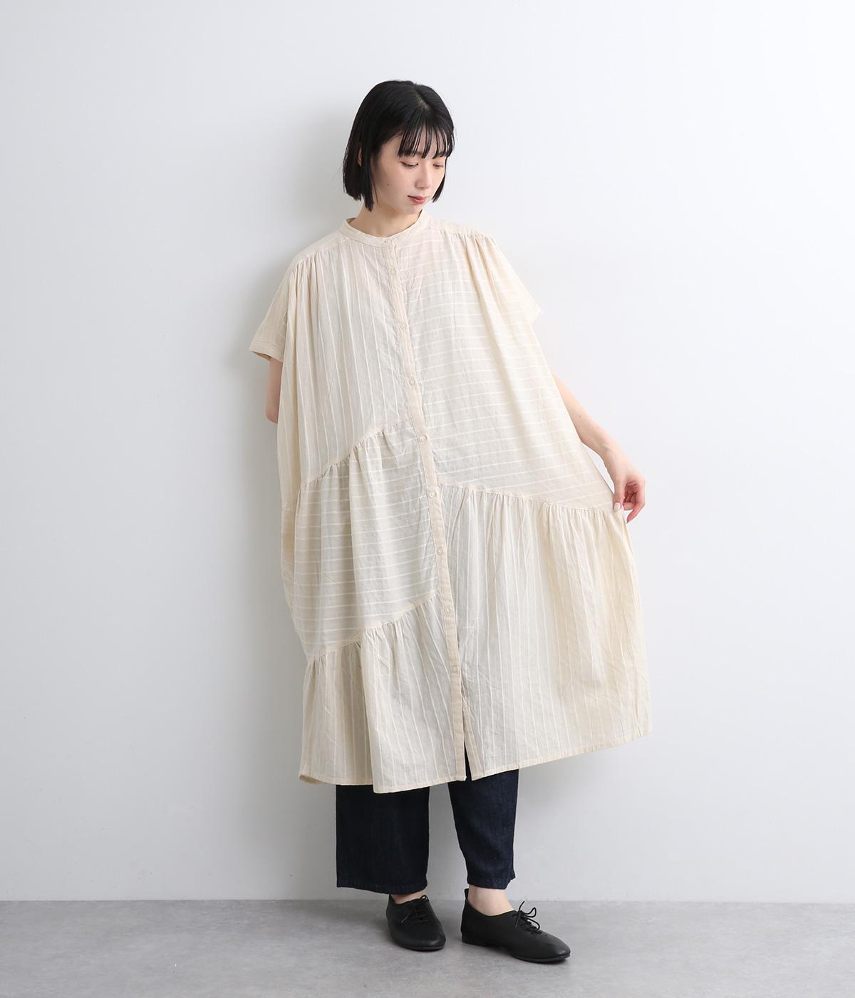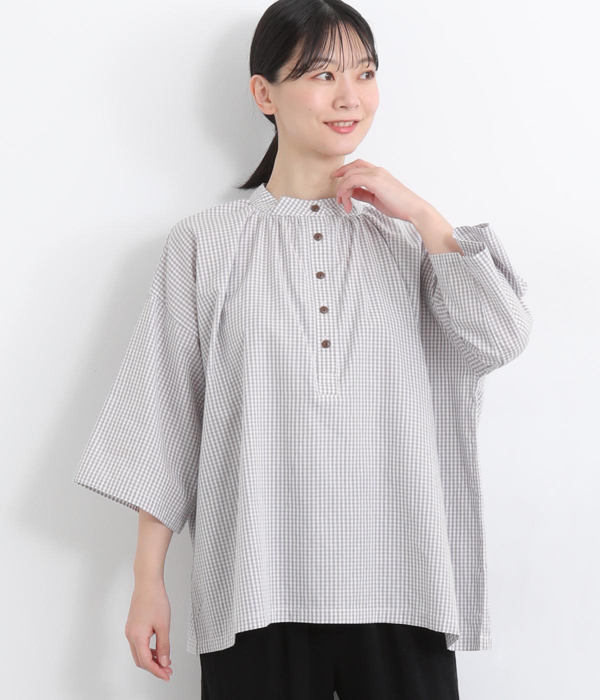 コットンワッシャーストライプクレリックブラウスベージュ