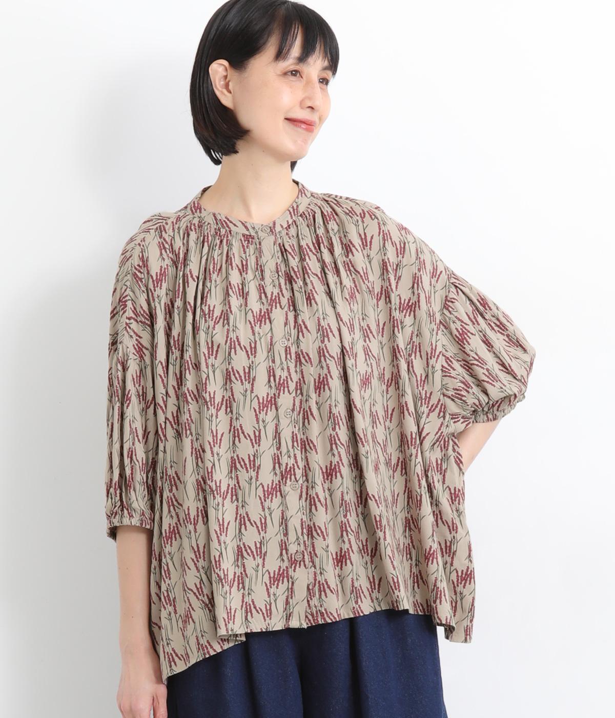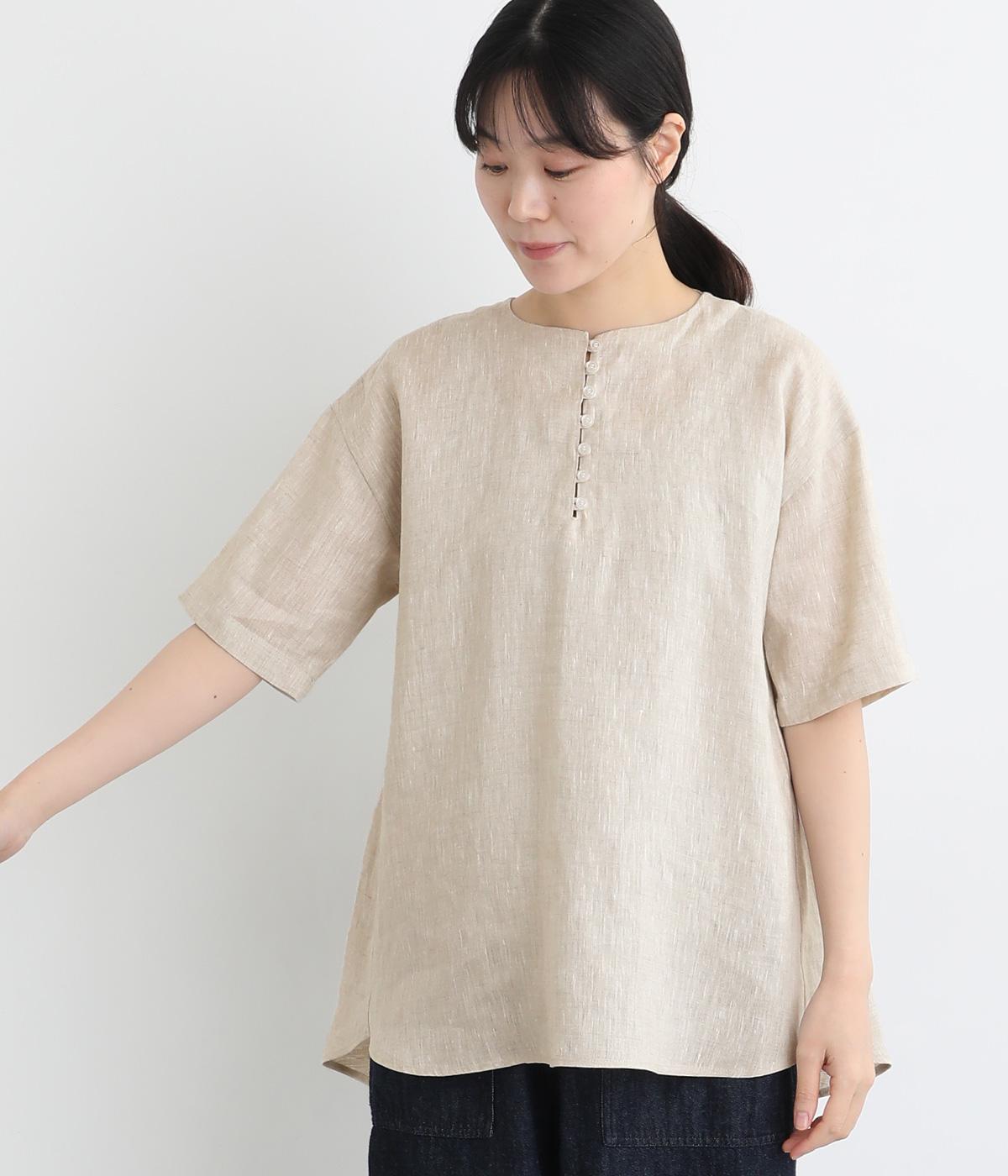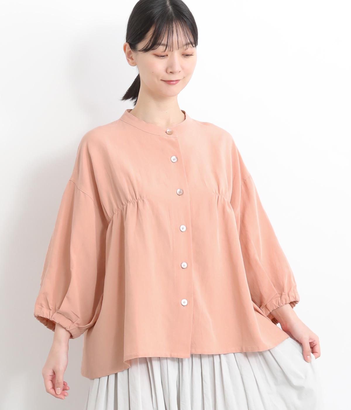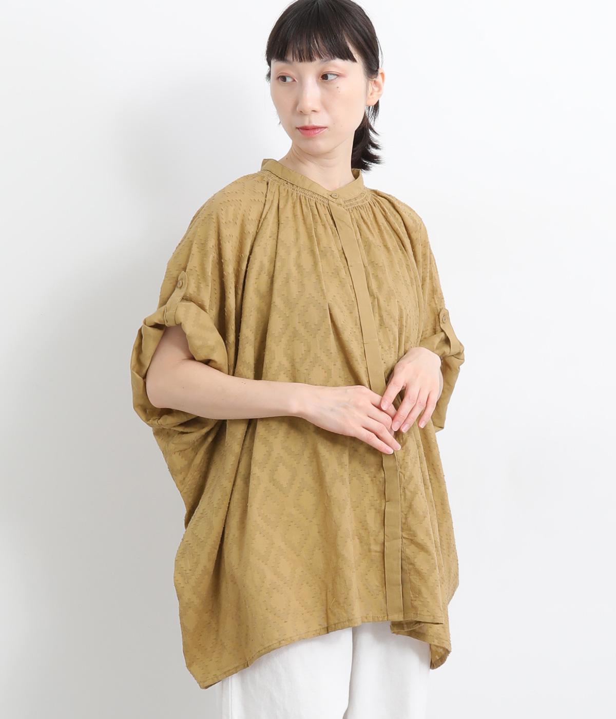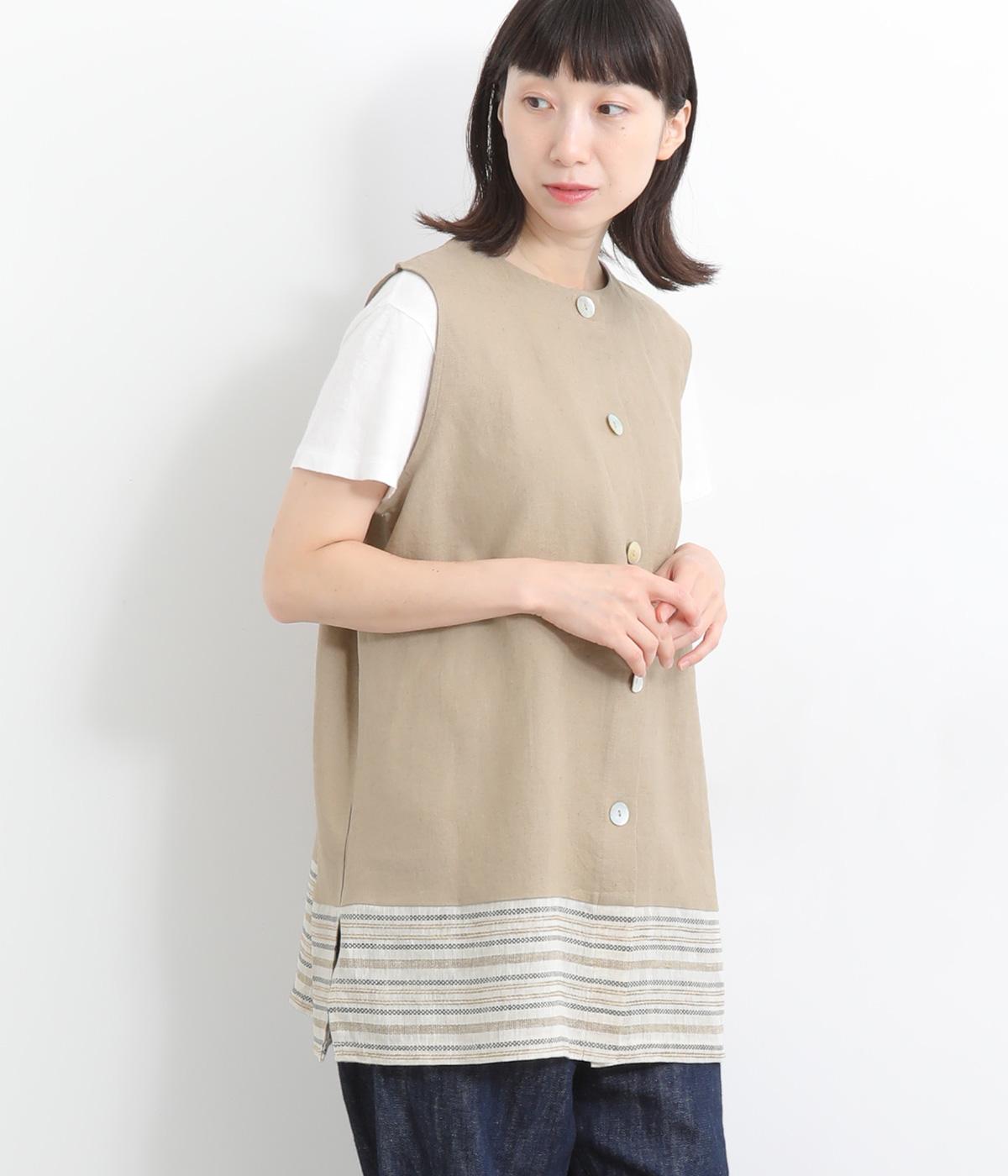 コットンワッシャーストライプクレリックブラウスベージュ