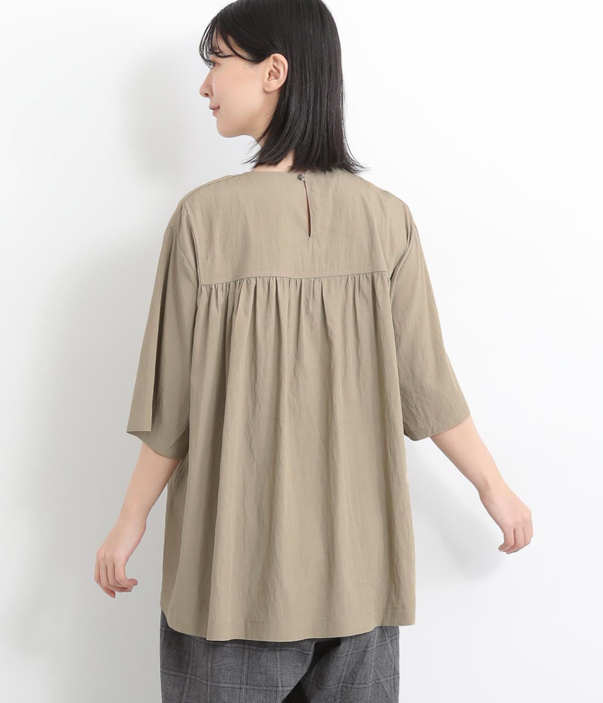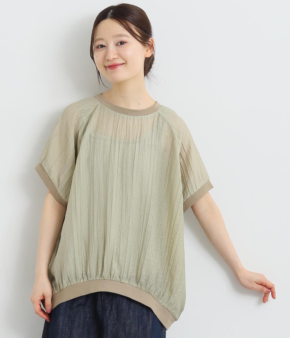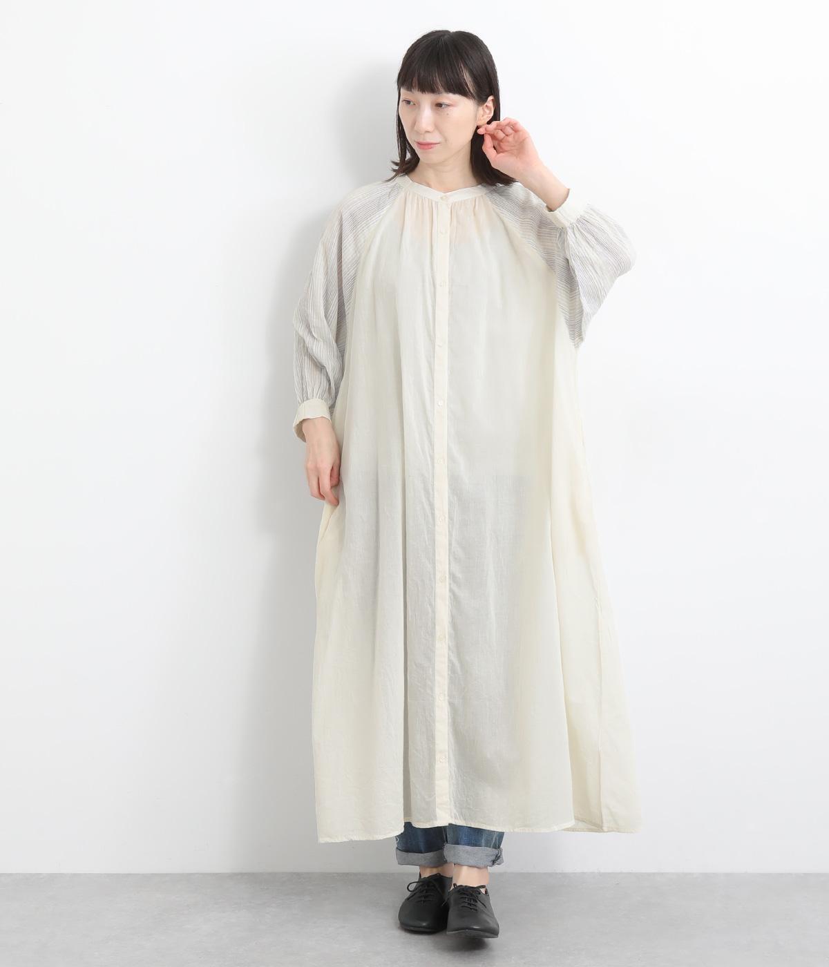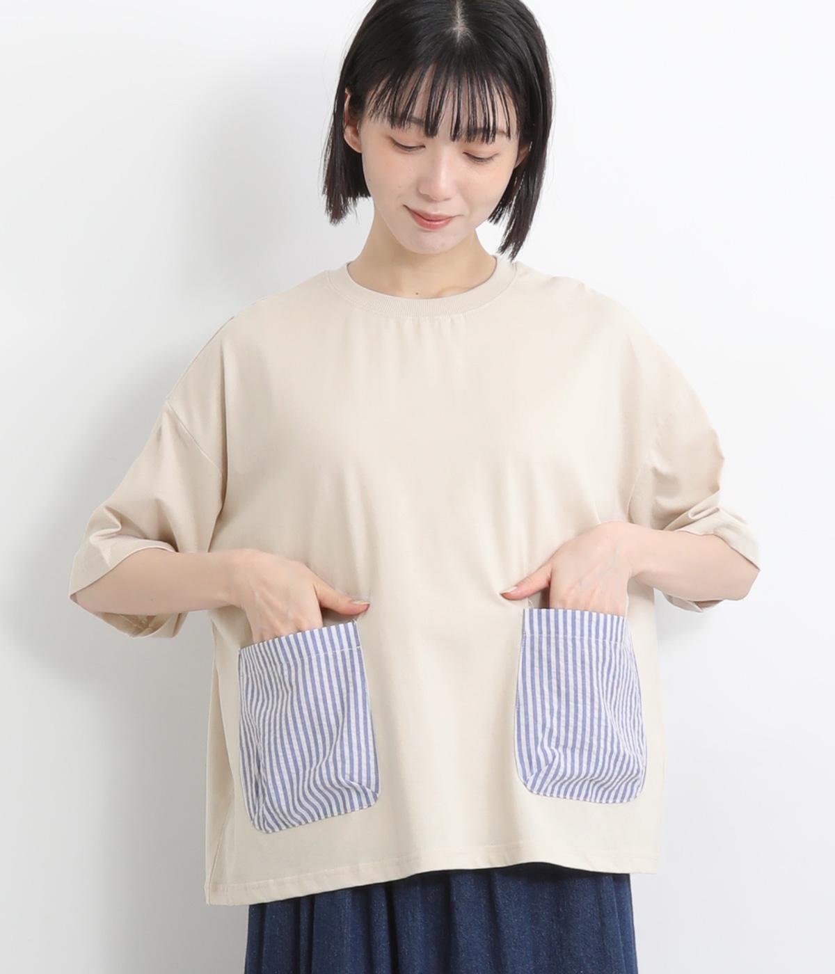 コットンワッシャーストライプクレリックブラウスベージュ