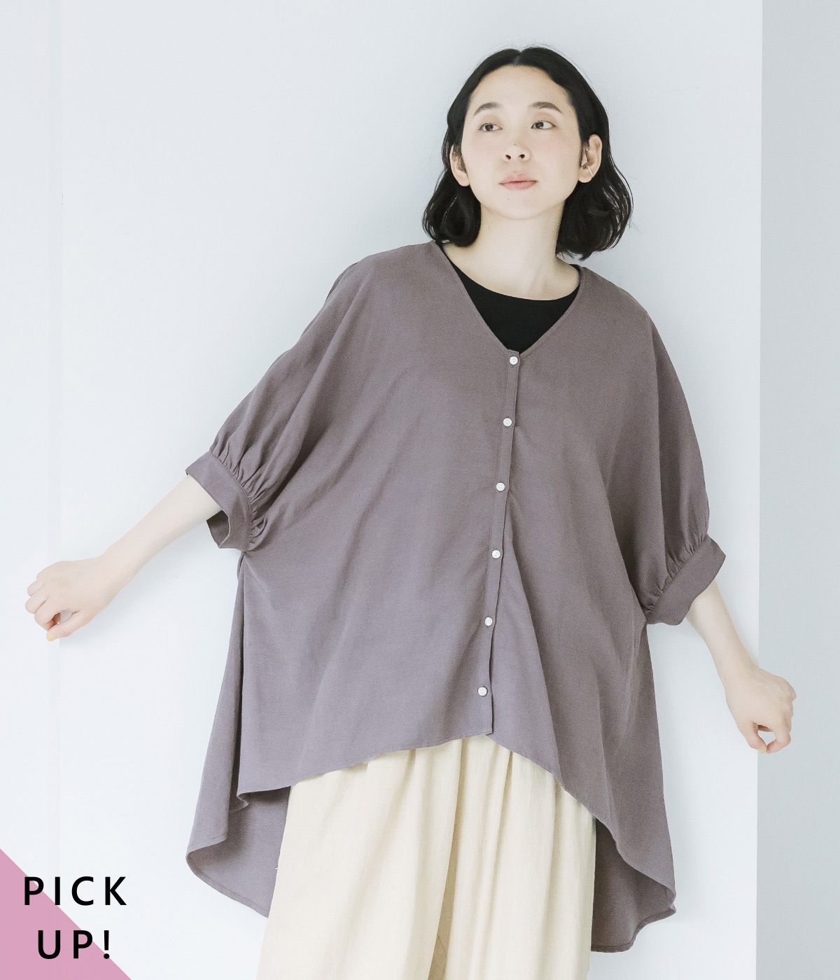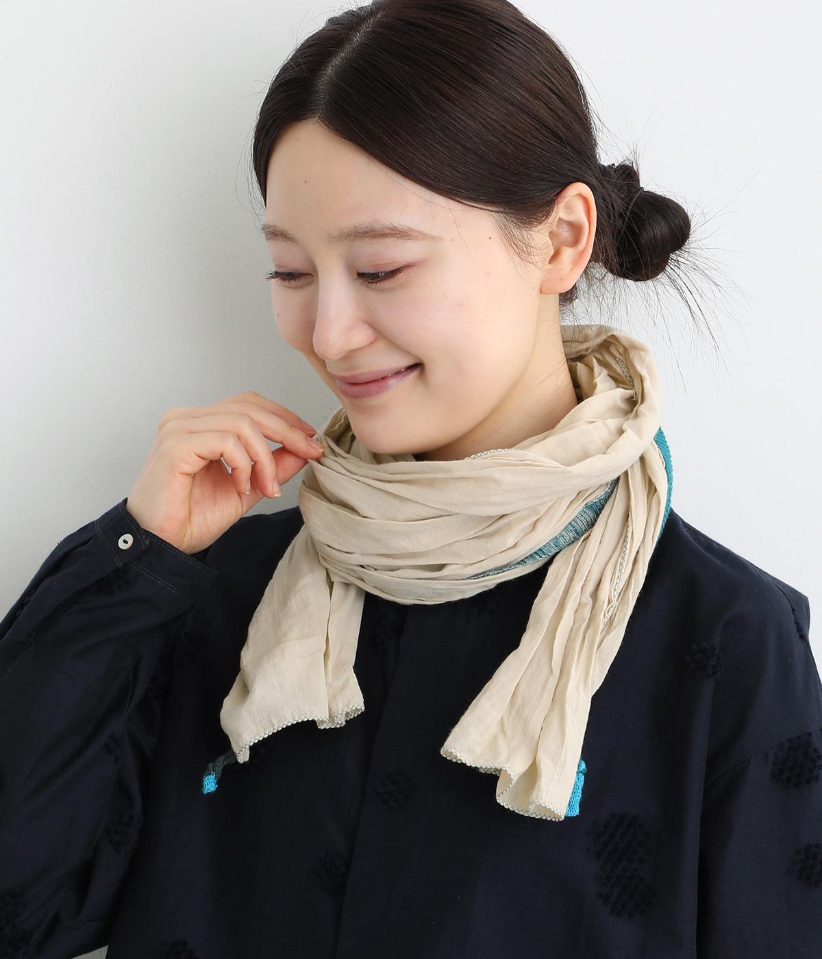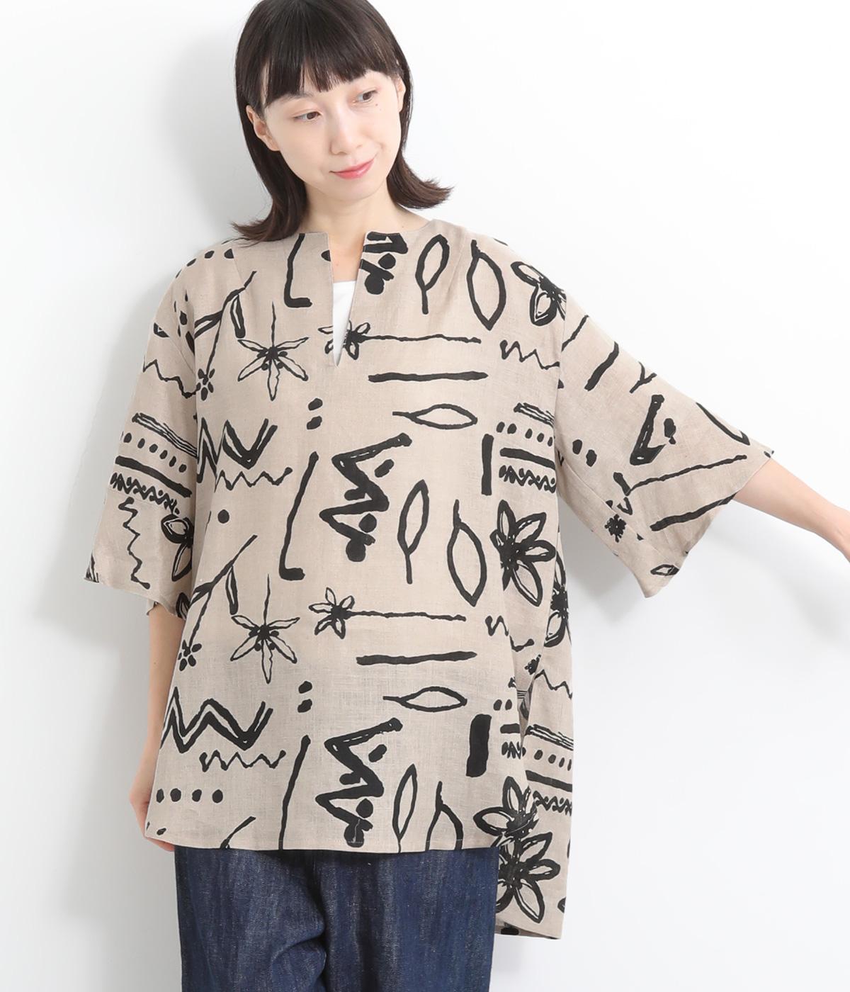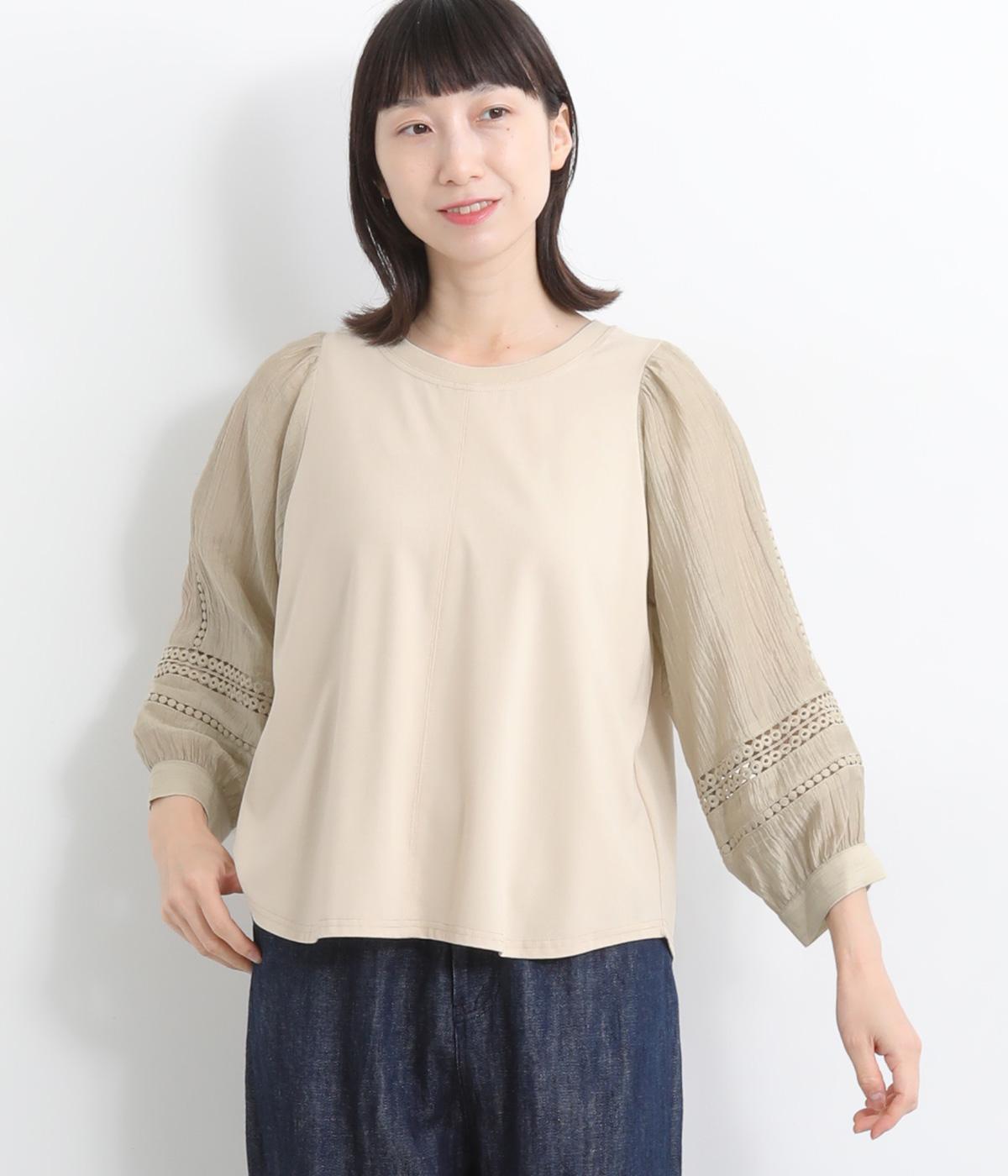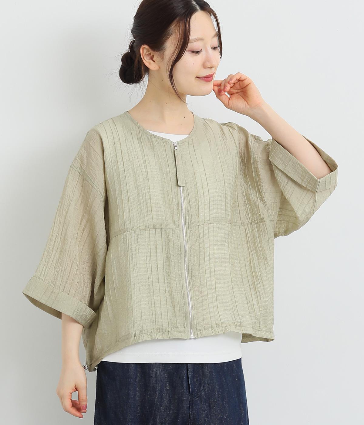コットンワッシャーストライプクレリックブラウスベージュ