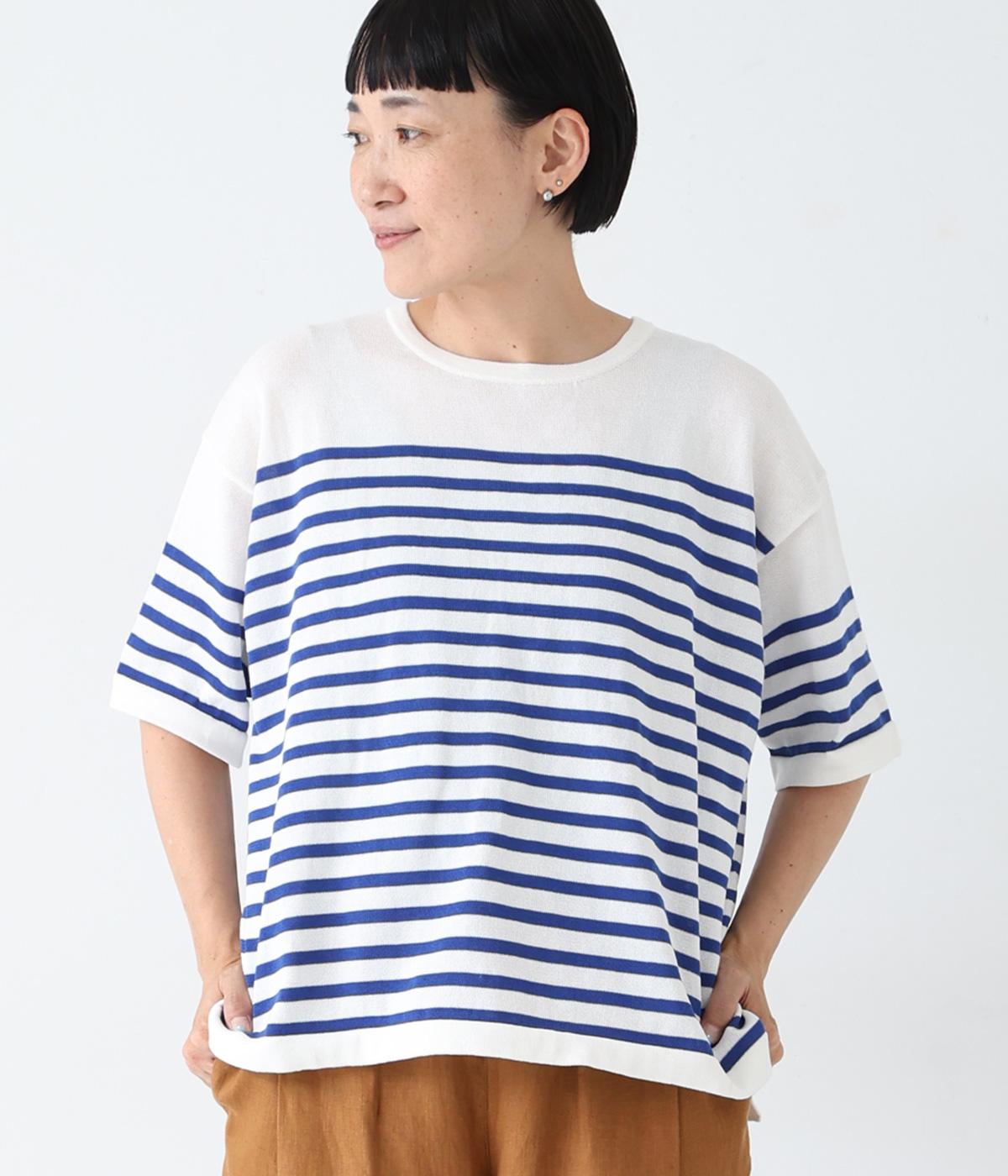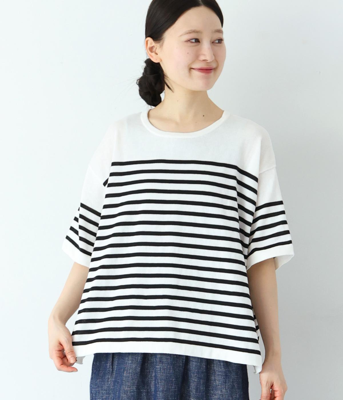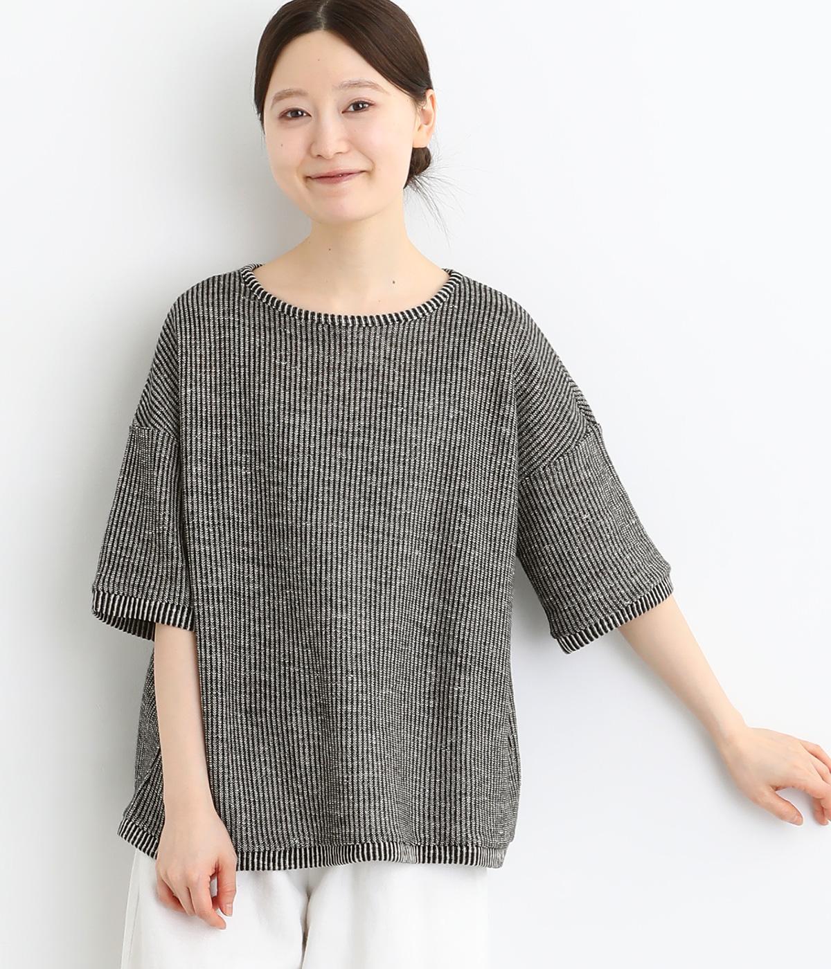 起毛ボーダープルオーバーニットグレー×ホワイト