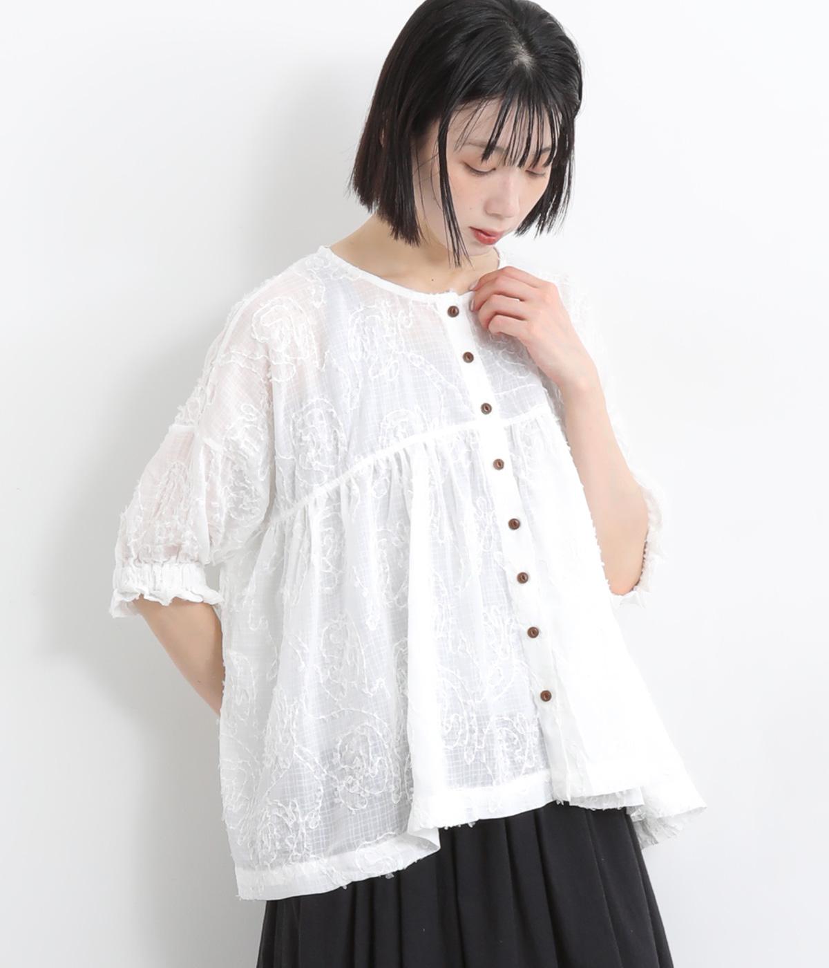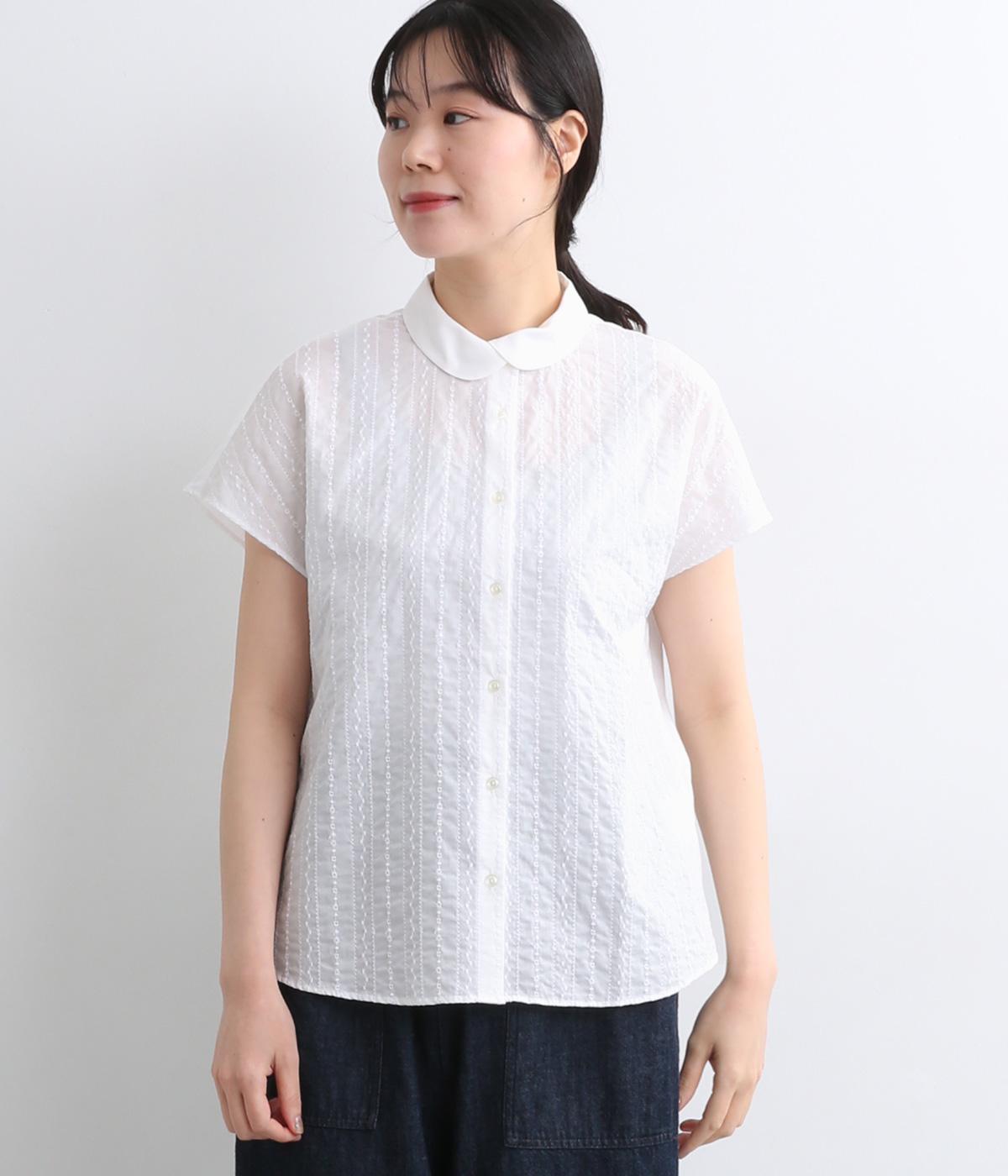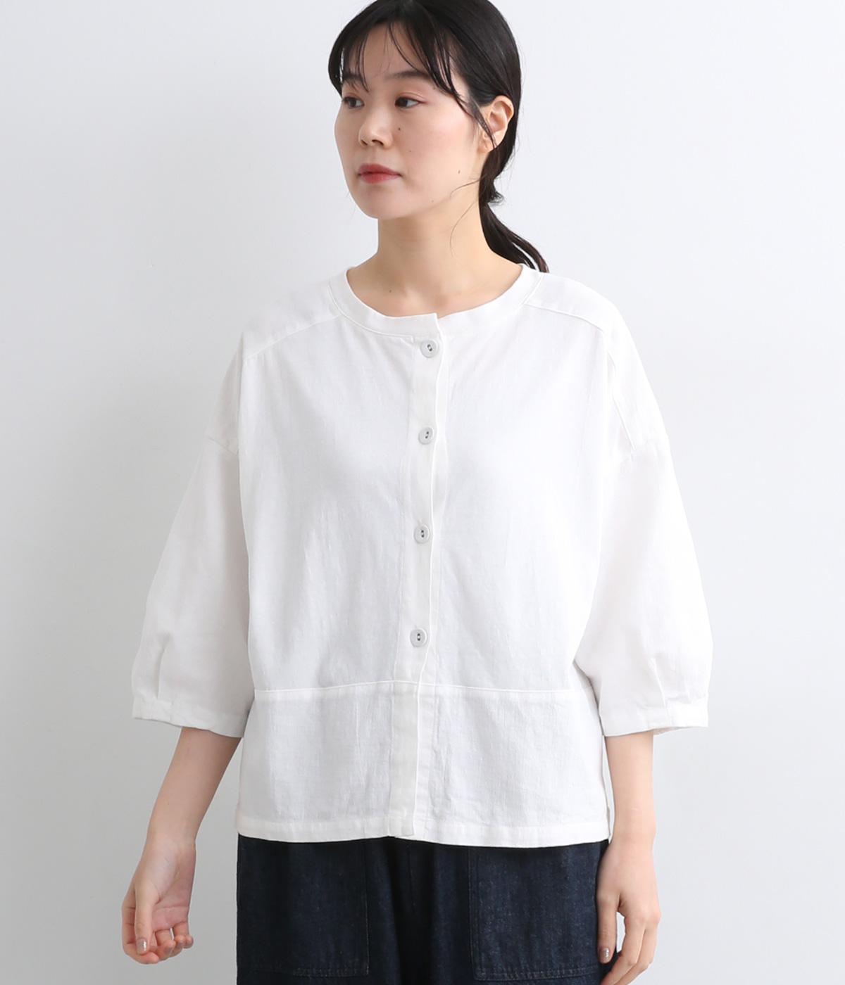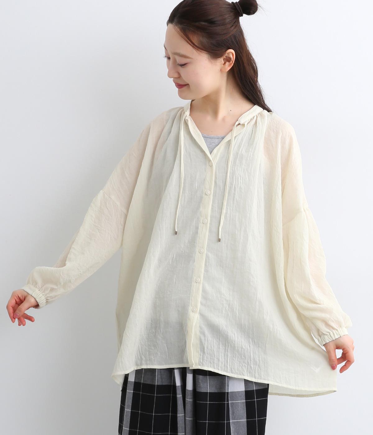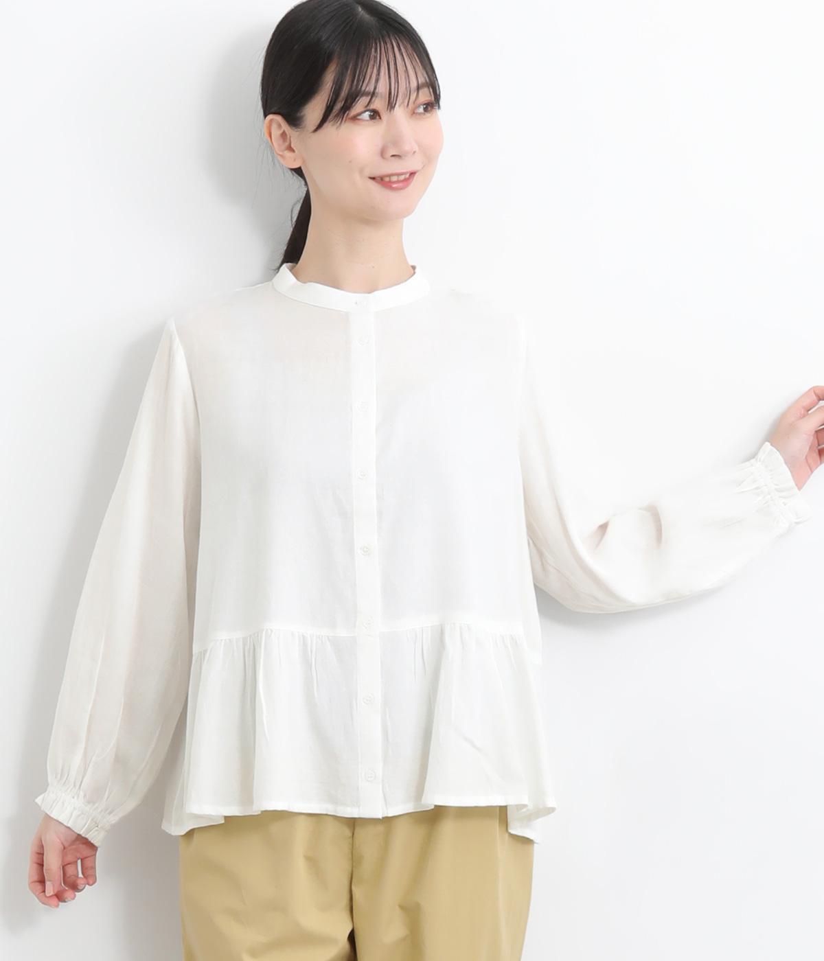 コットンワッシャーフリルカラーブラウスオフ