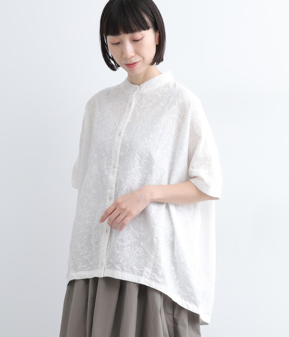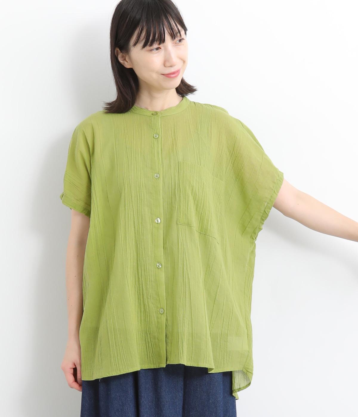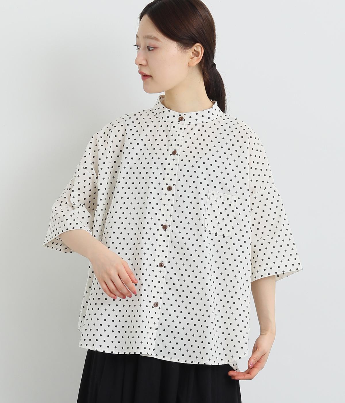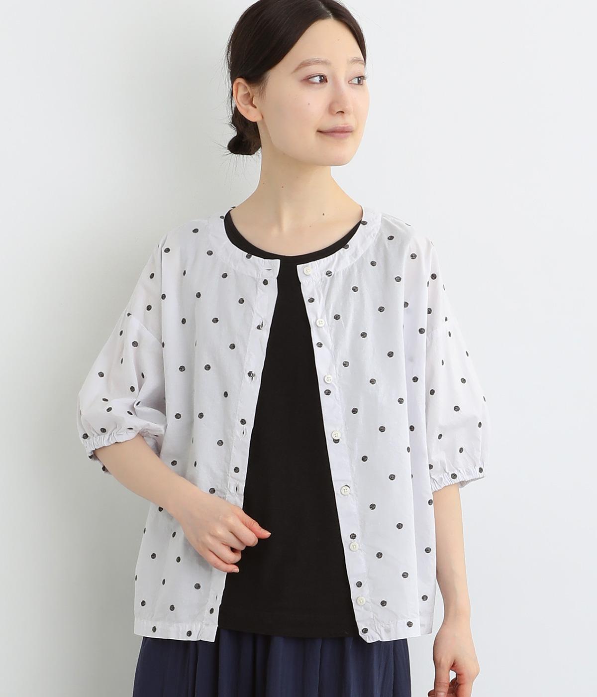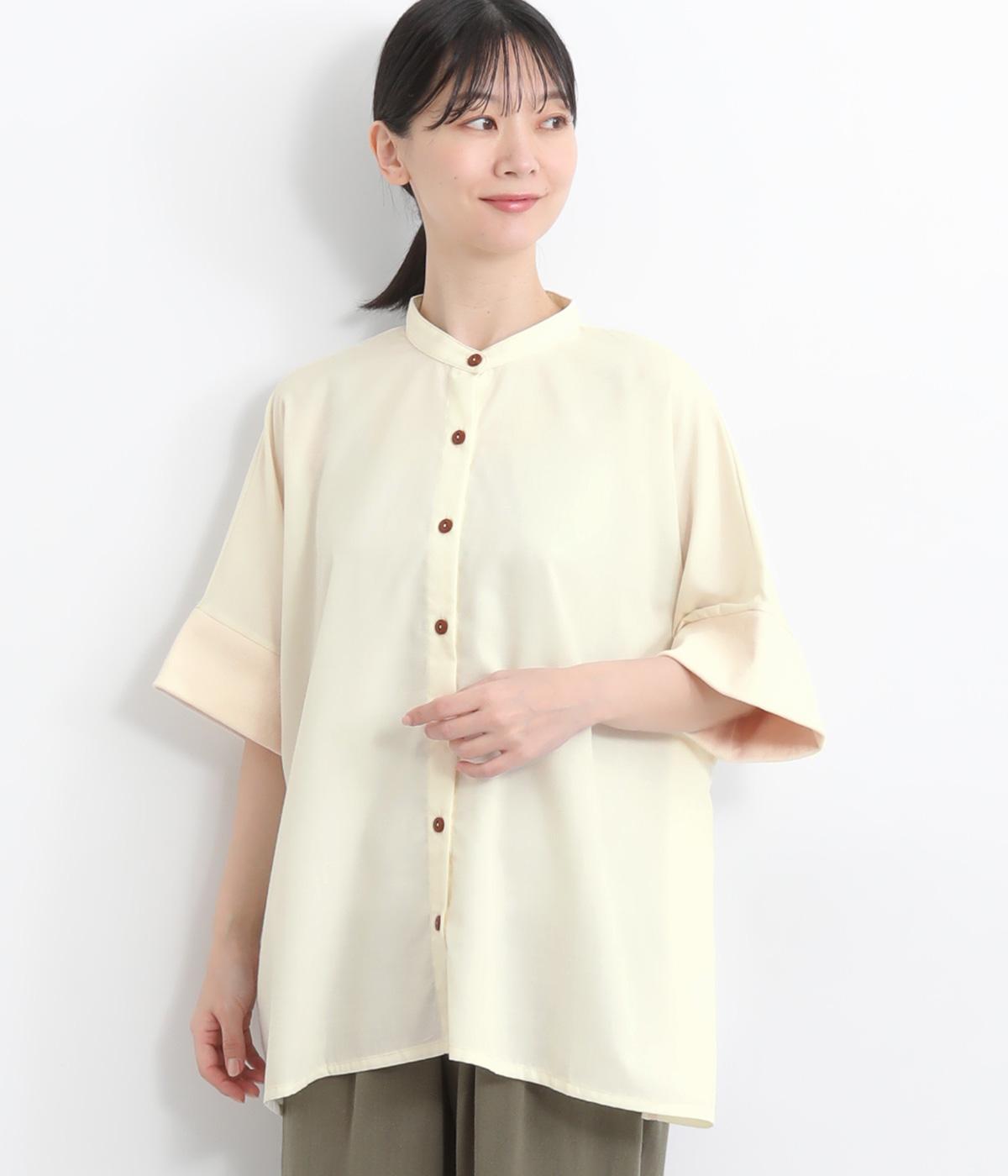 コットンワッシャーフリルカラーブラウスオフ