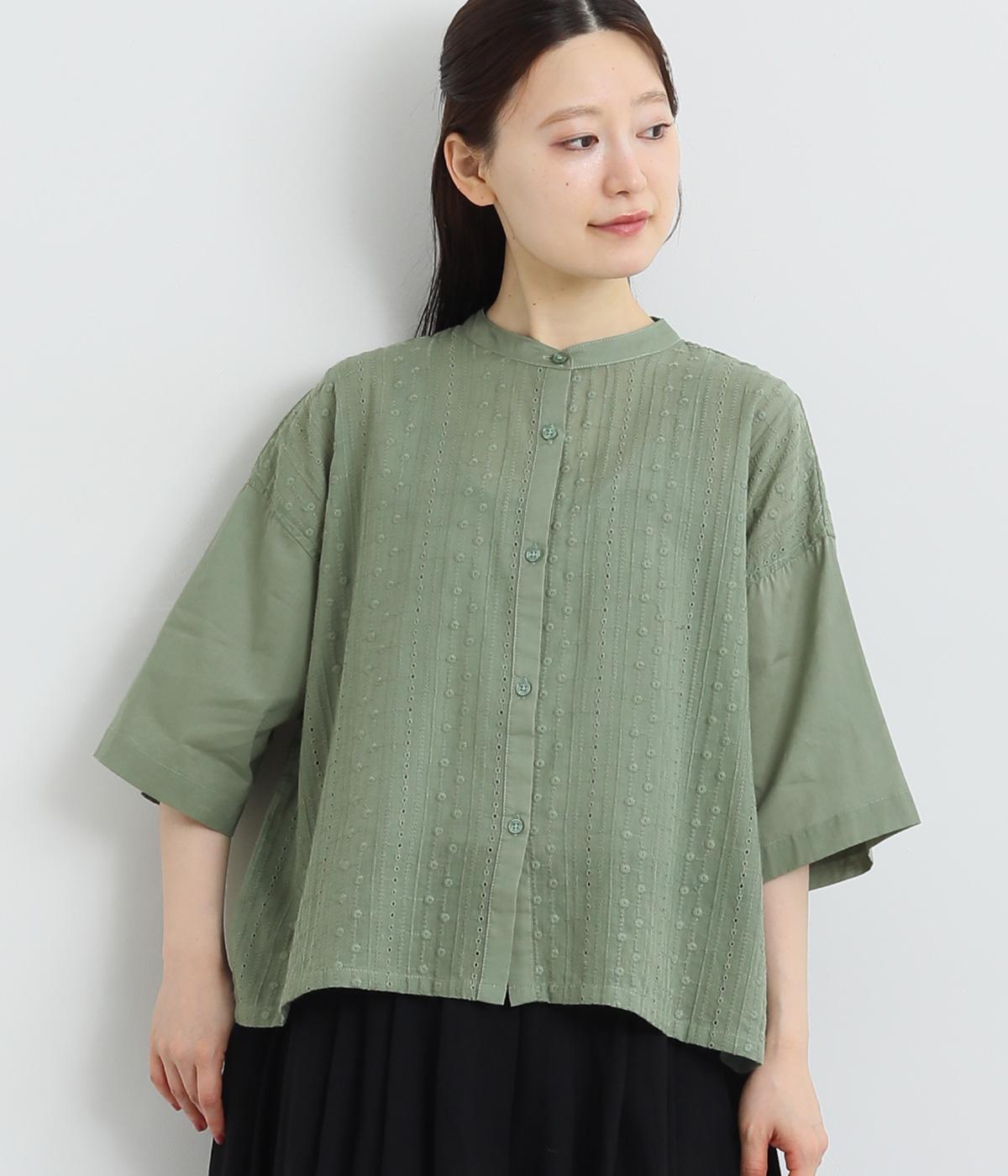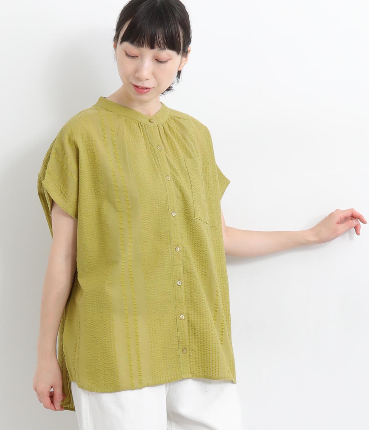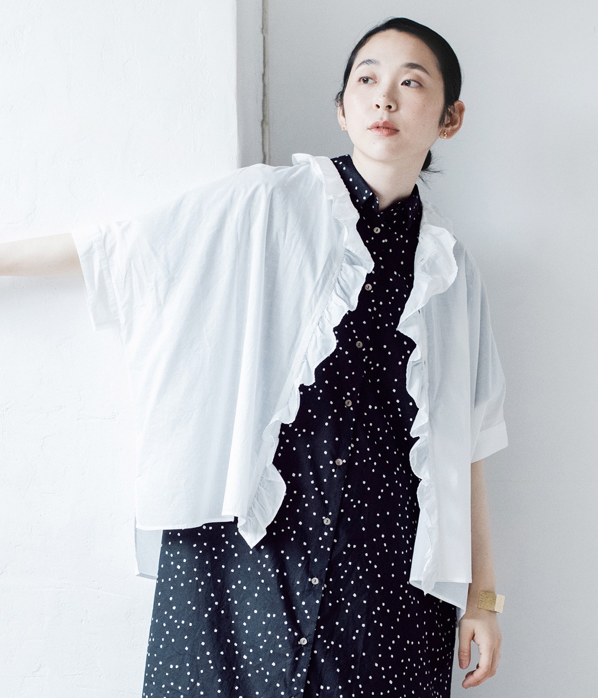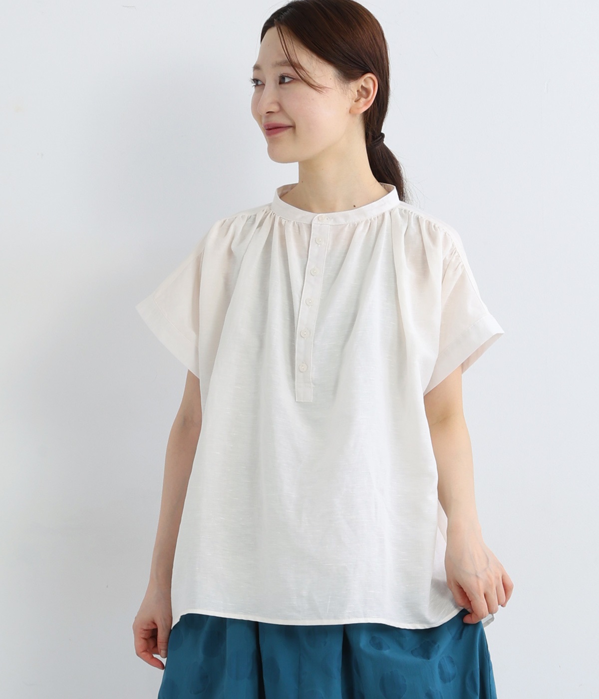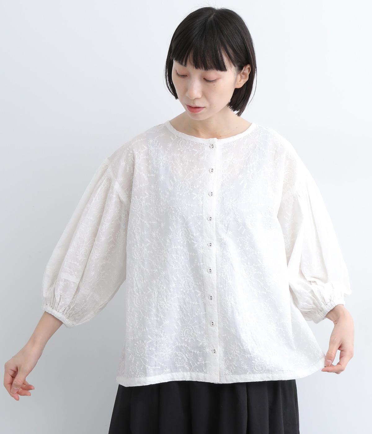 コットンワッシャーフリルカラーブラウスオフ