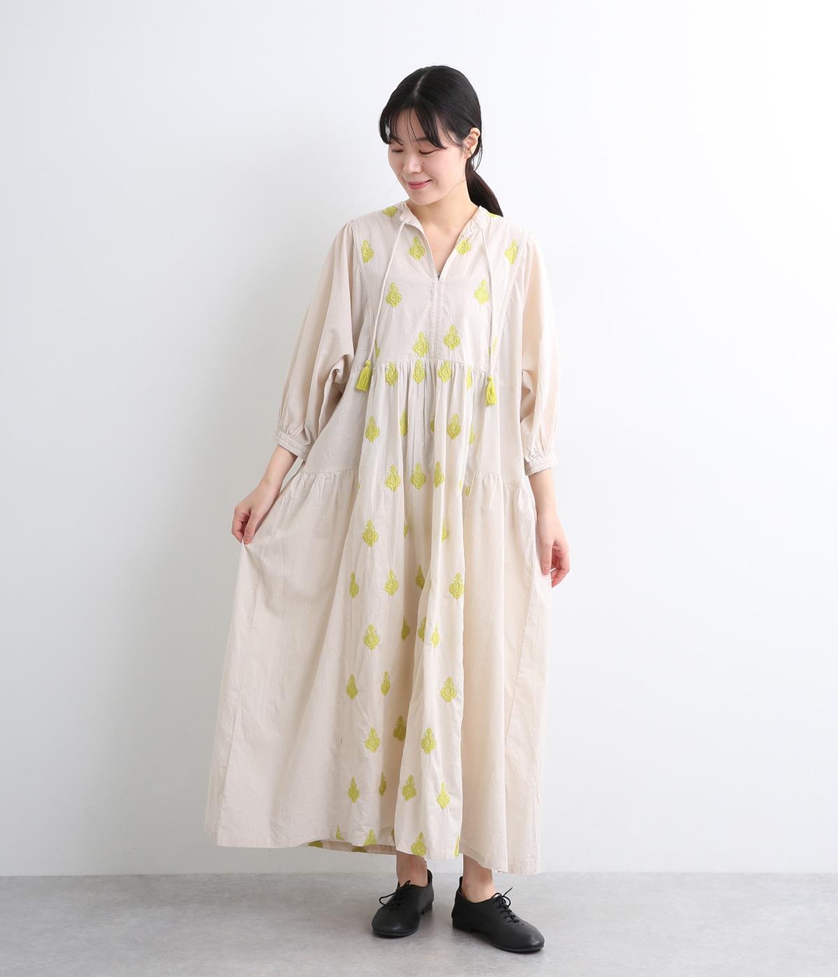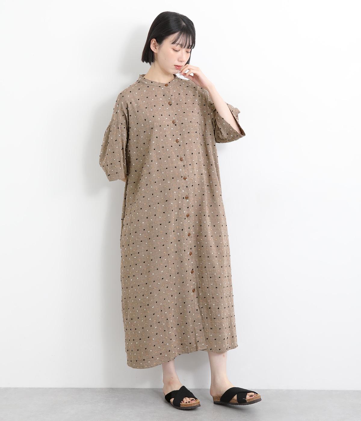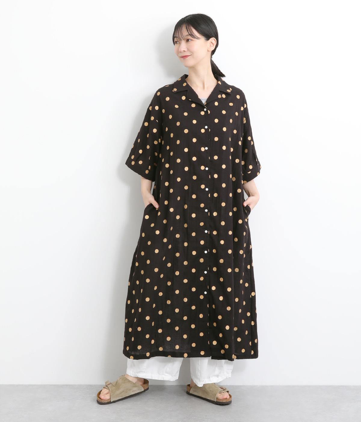 コットンタイプライターワンピースキャメル