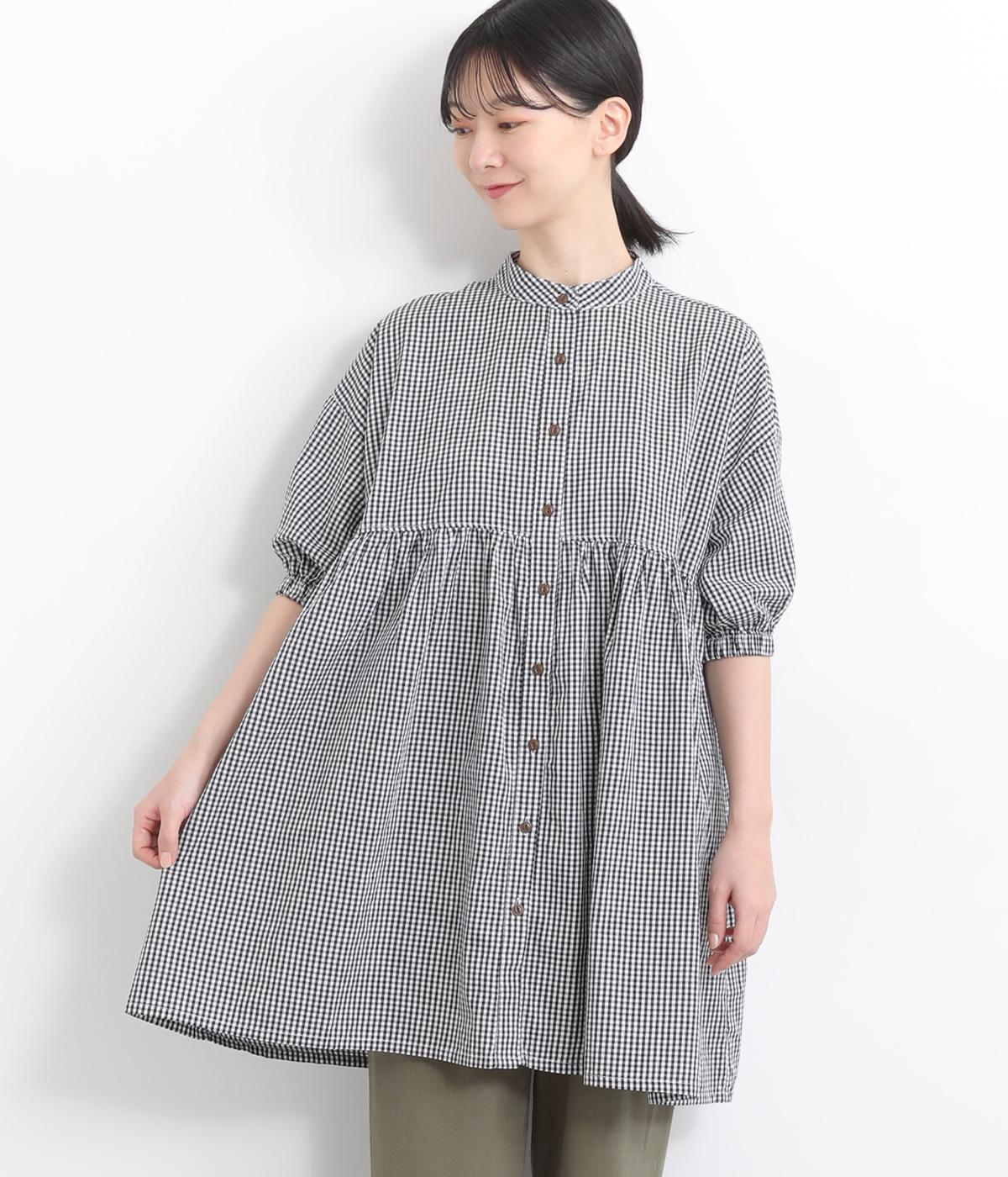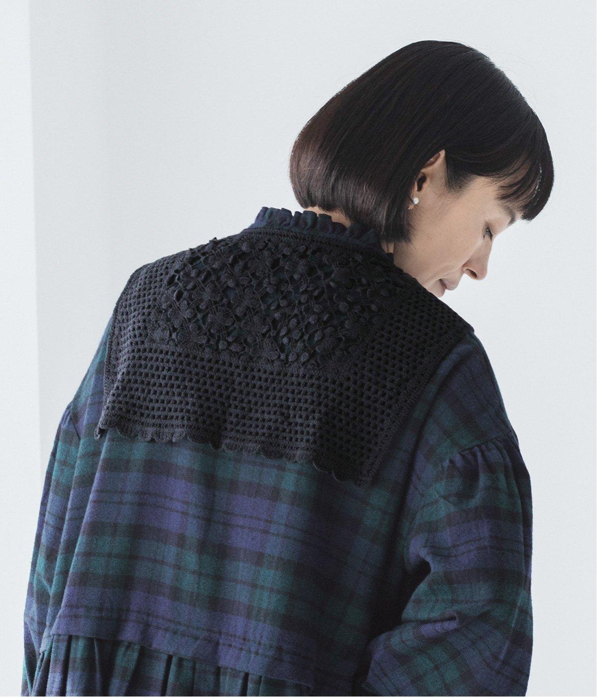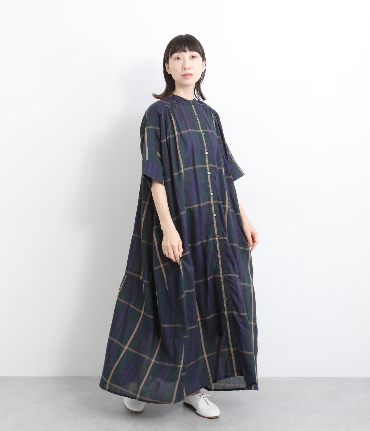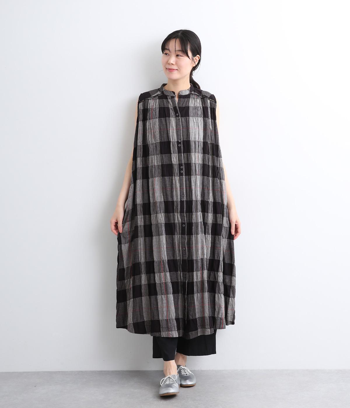 コットンウールタータンチェックシャツワンピースブラック