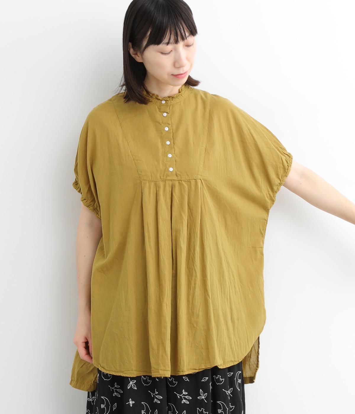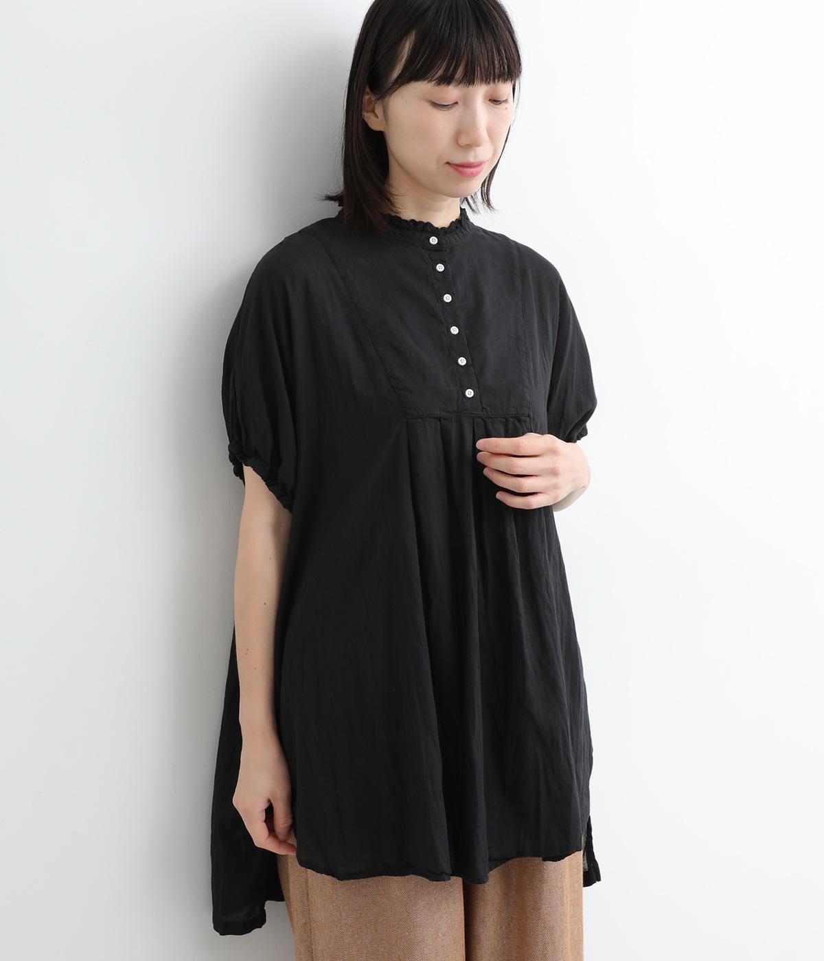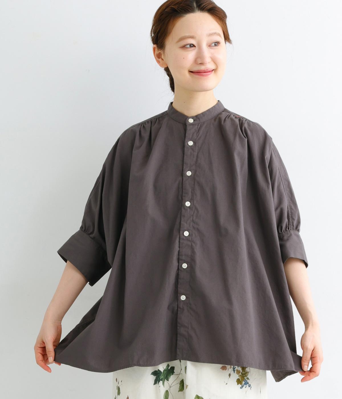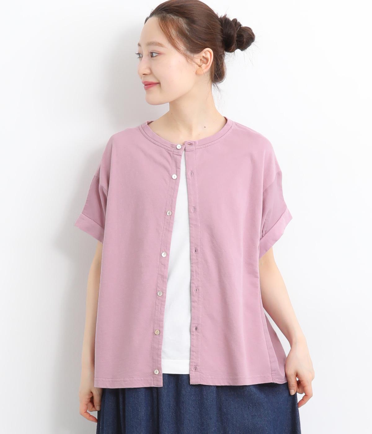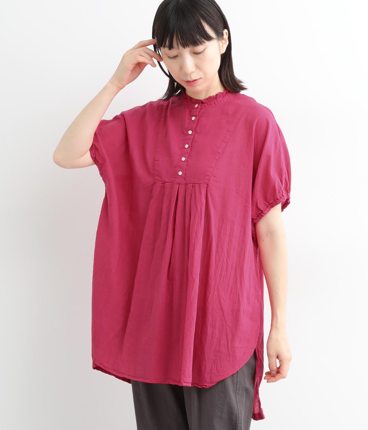 平織コットン微起毛 マオカラー釦プルオーバースミクロ