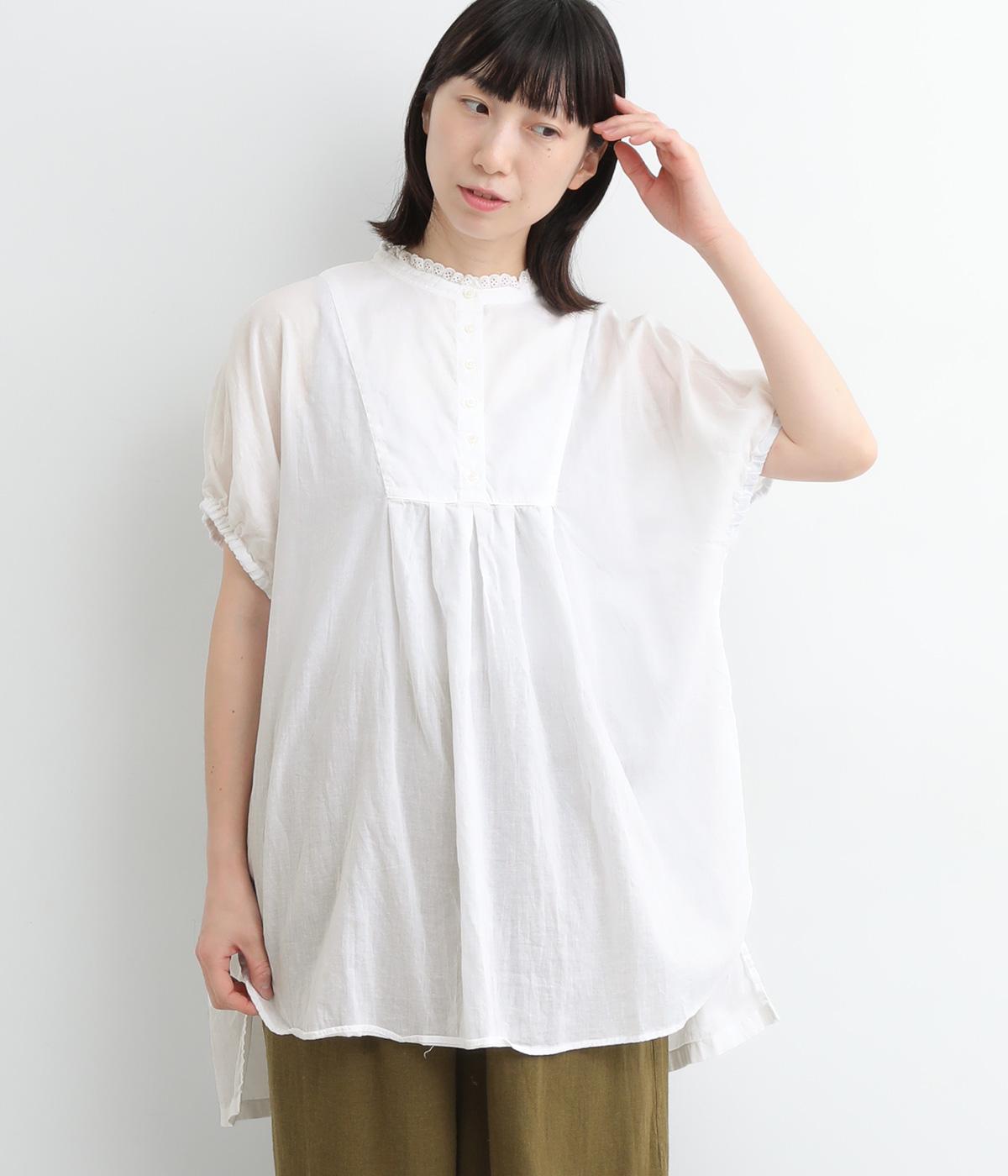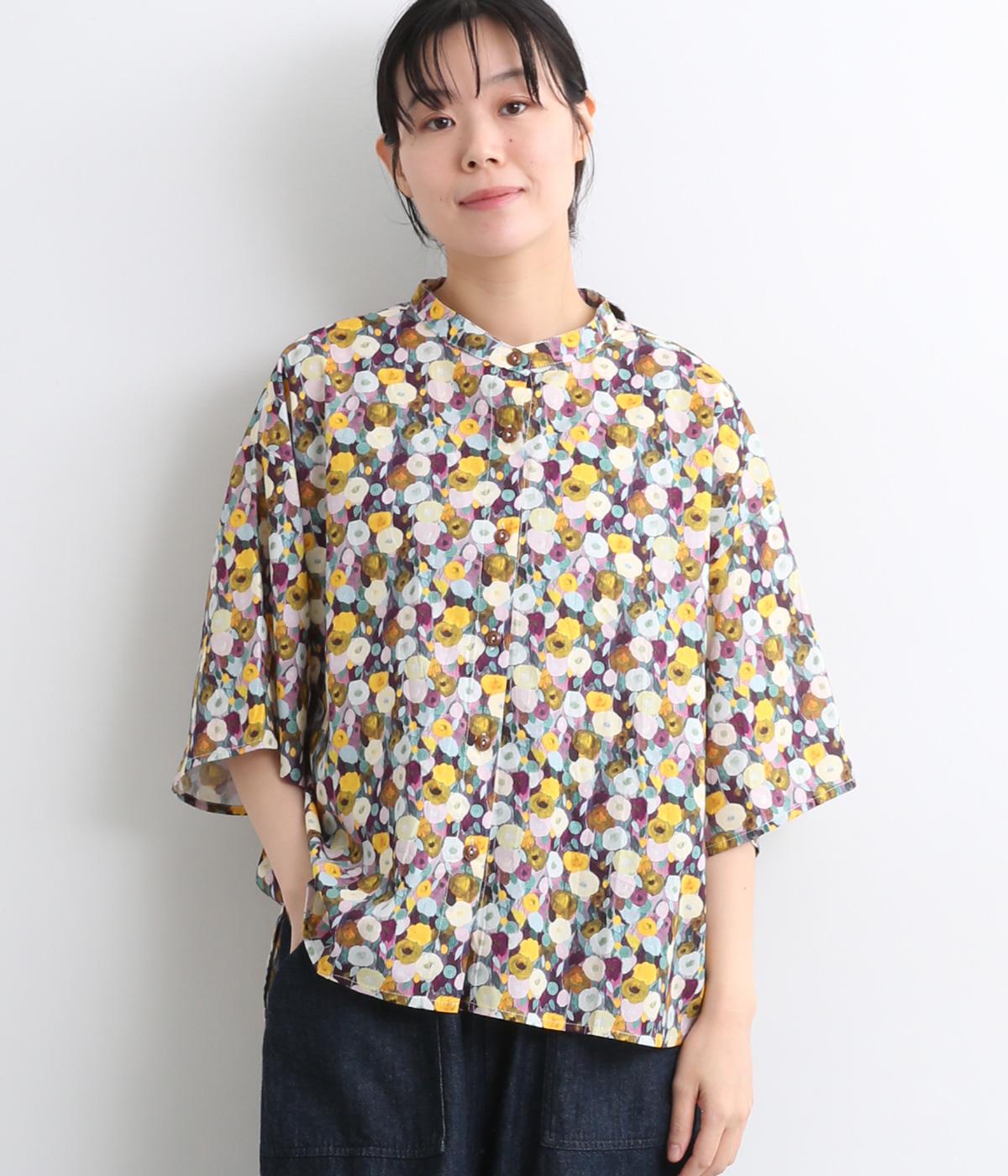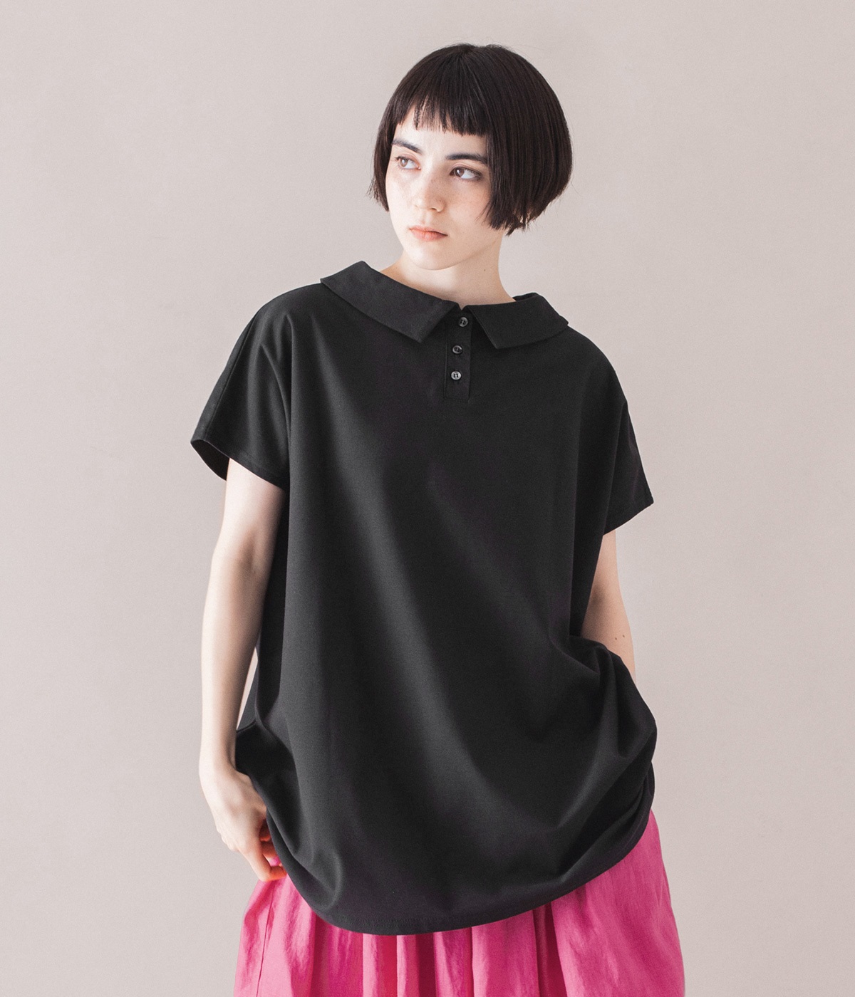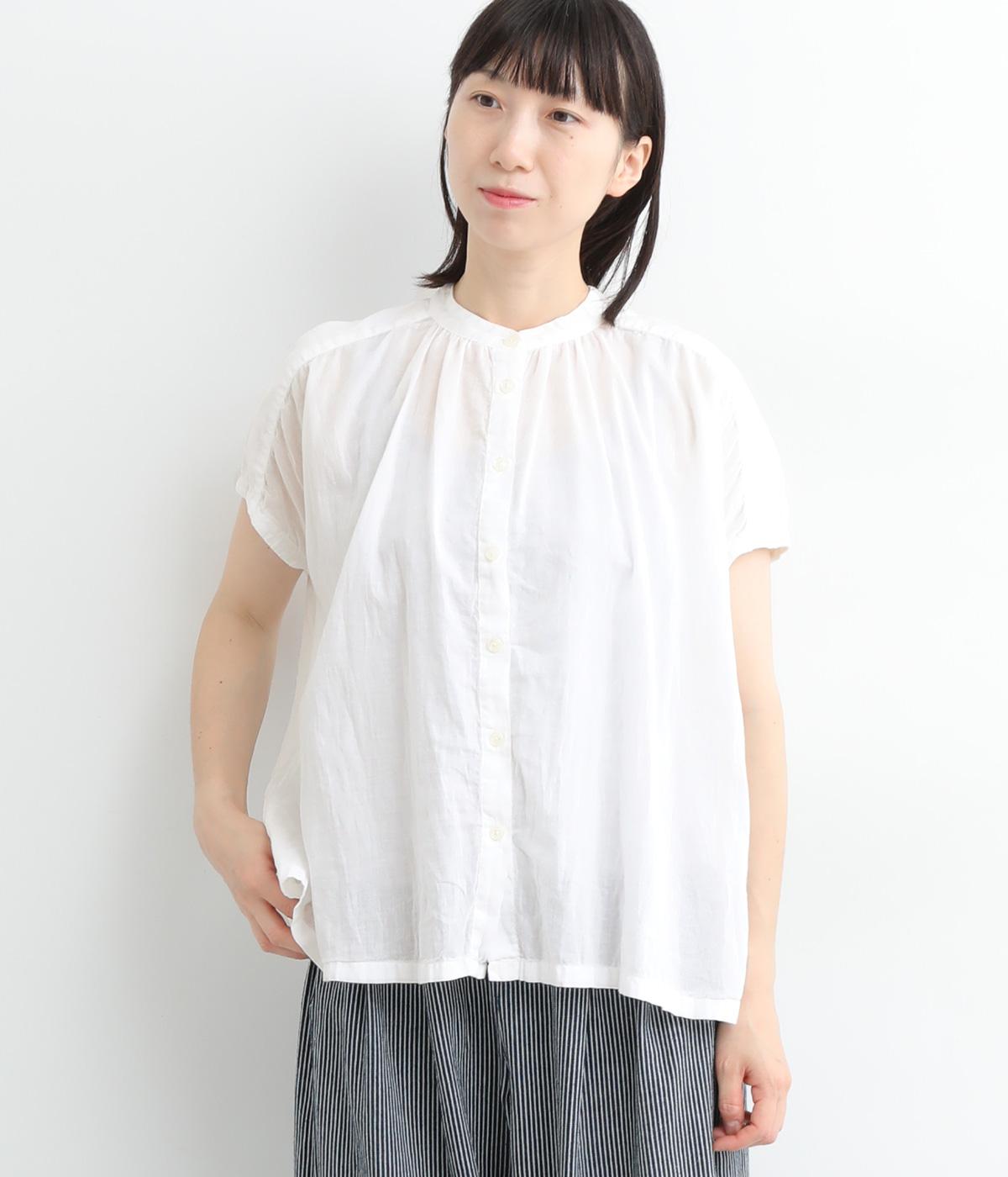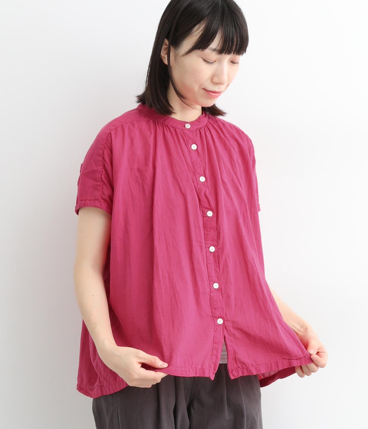 平織コットン微起毛 マオカラー釦プルオーバースミクロ