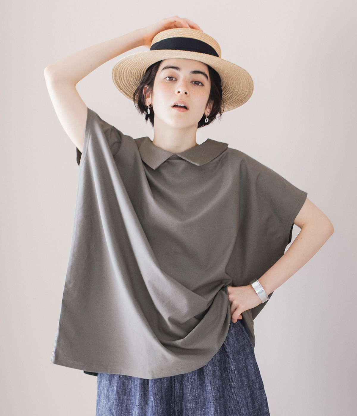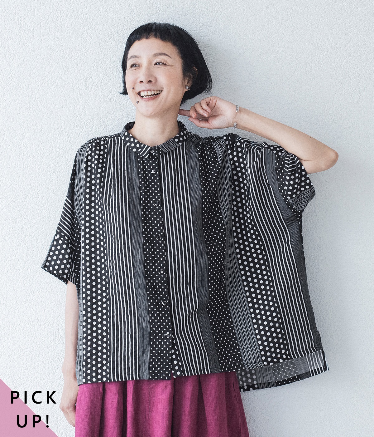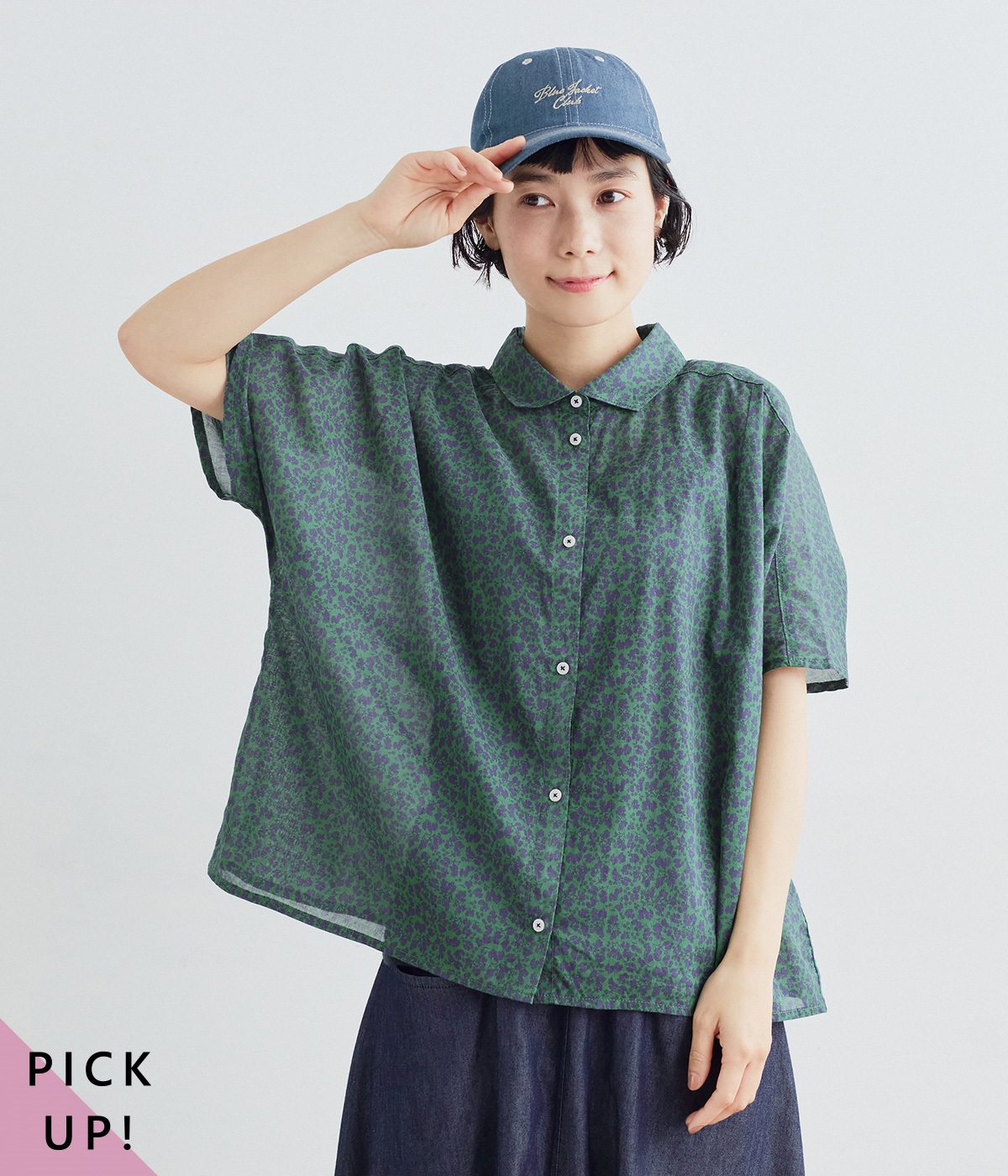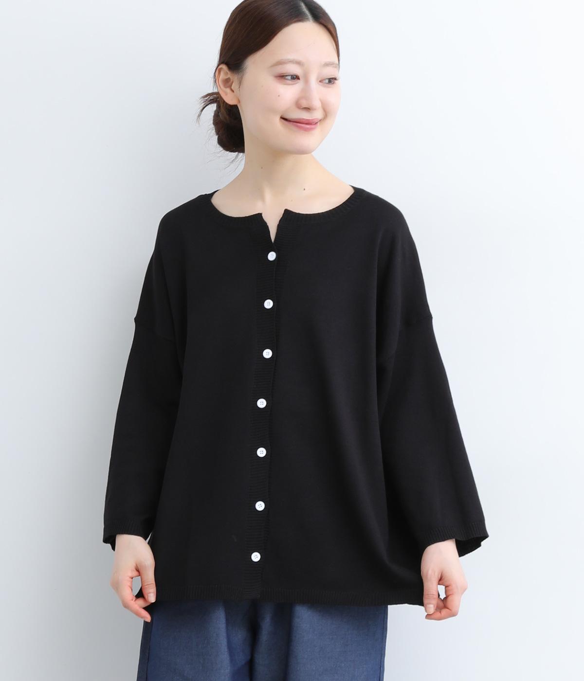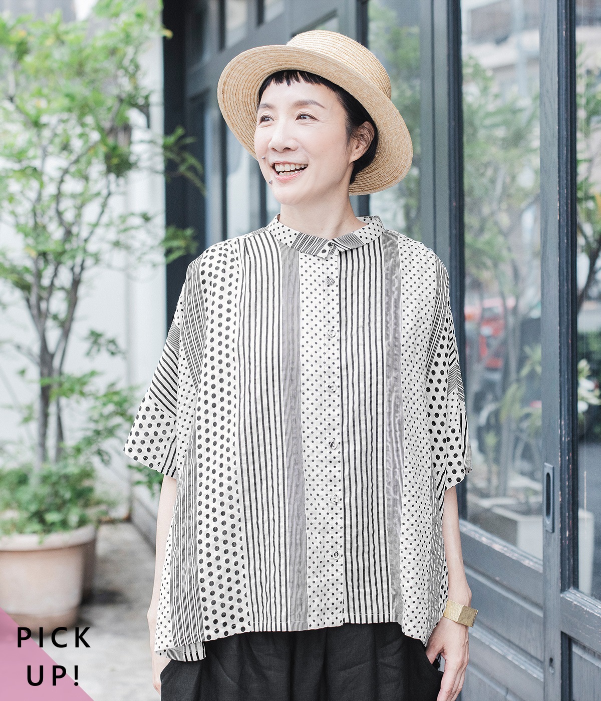 平織コットン微起毛 マオカラー釦プルオーバースミクロ