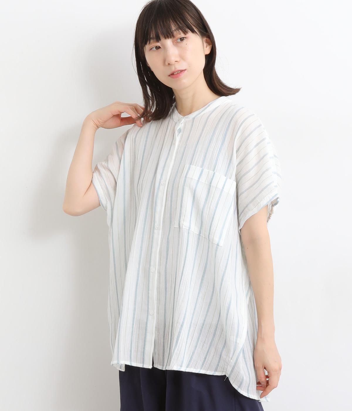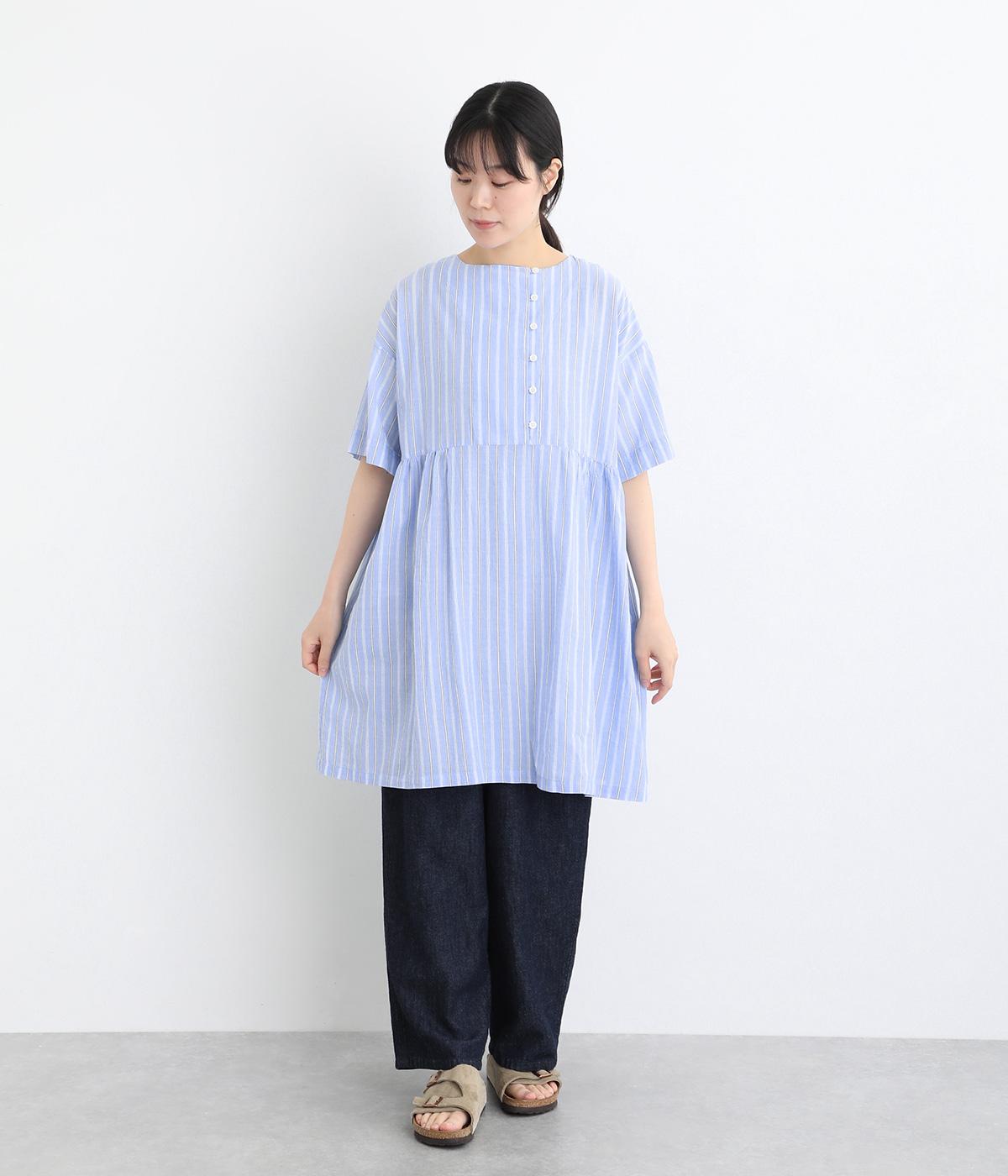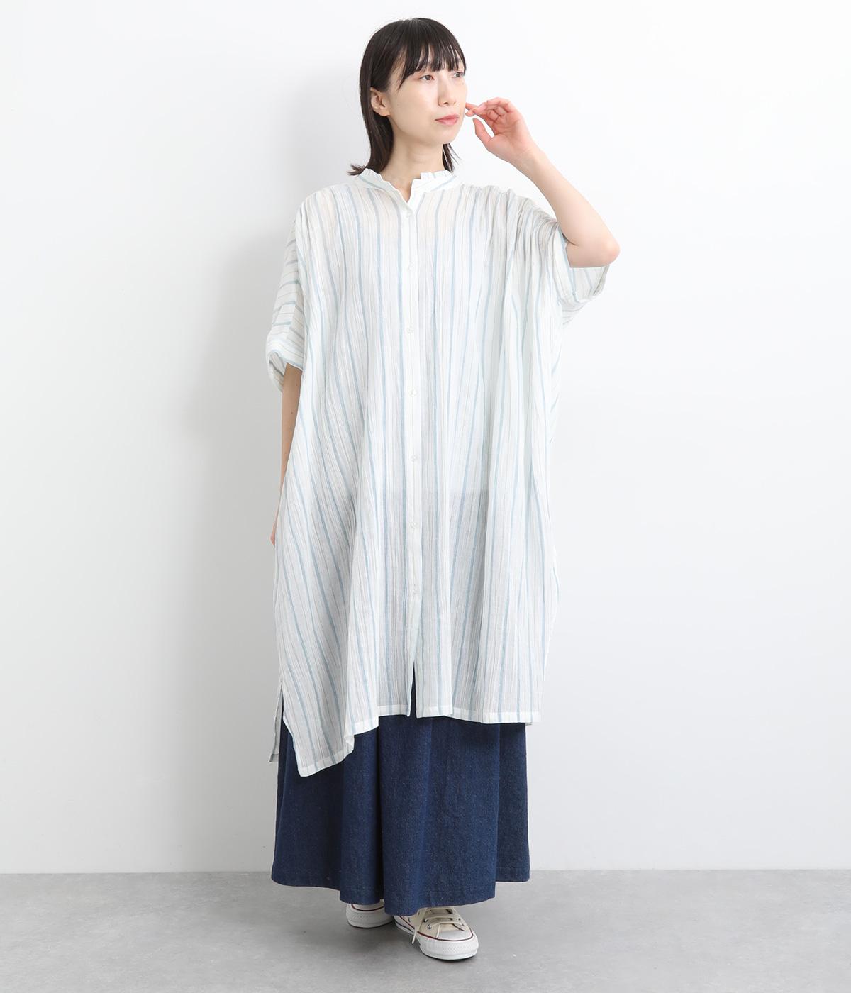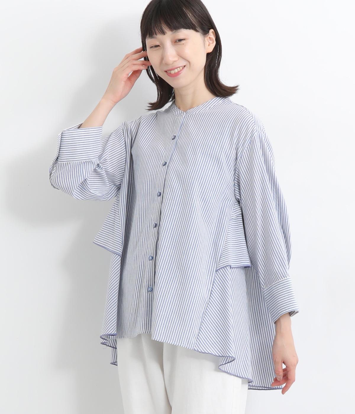 コットンワッシャーストライプクレリックブラウスブルー