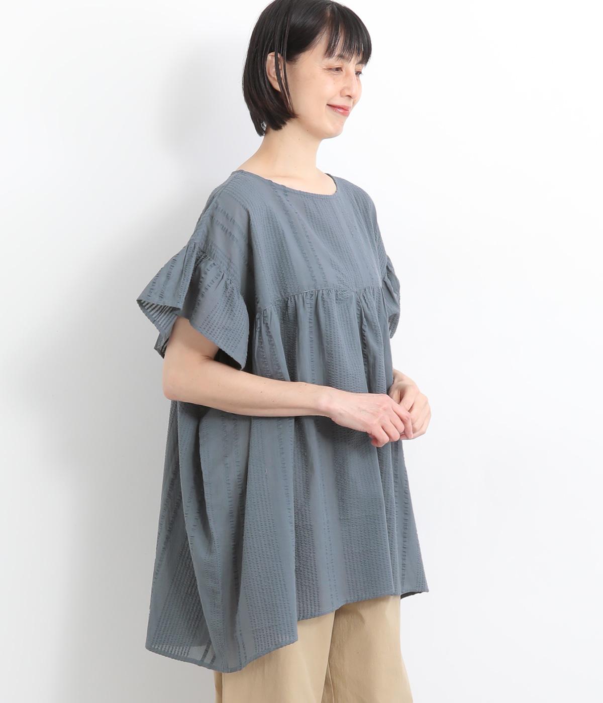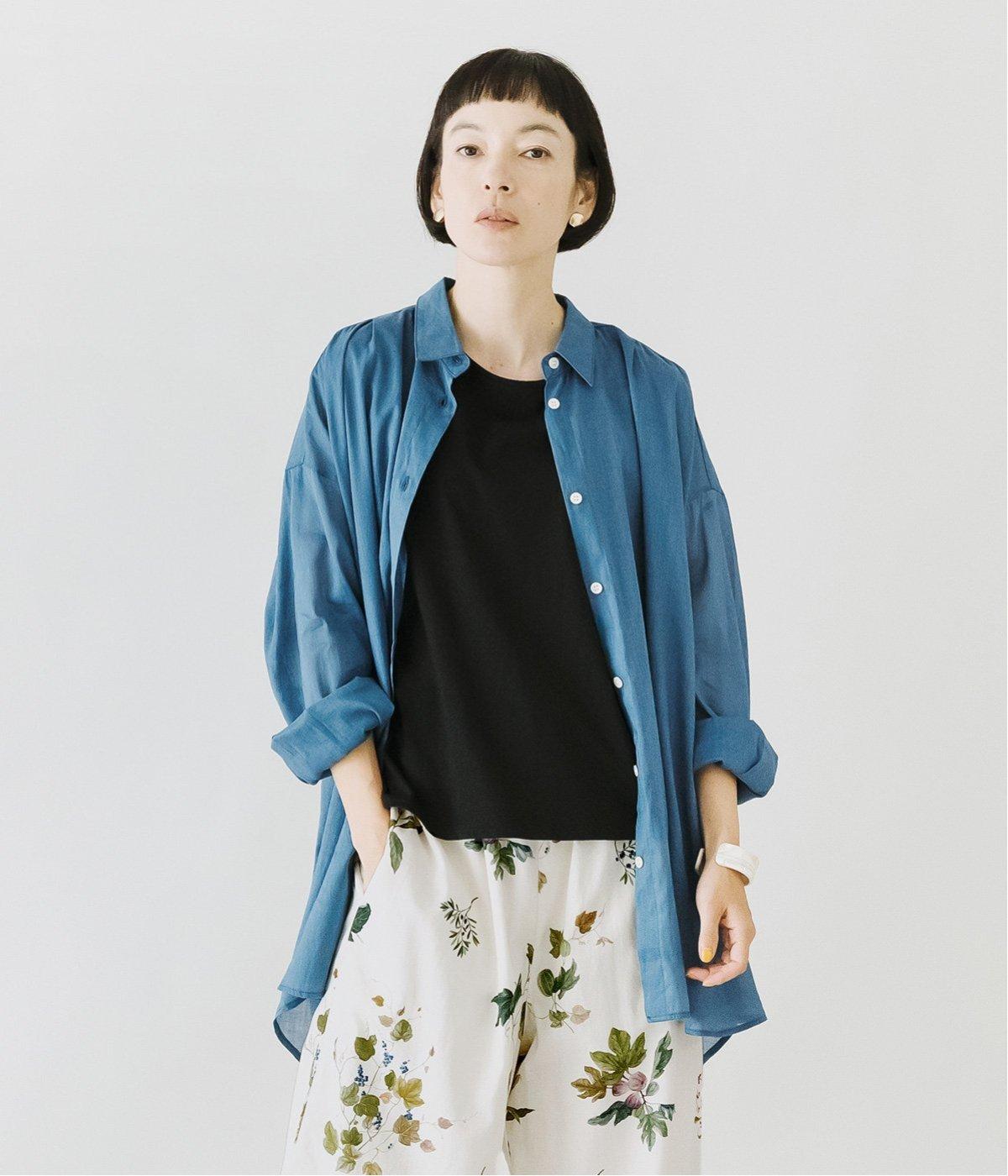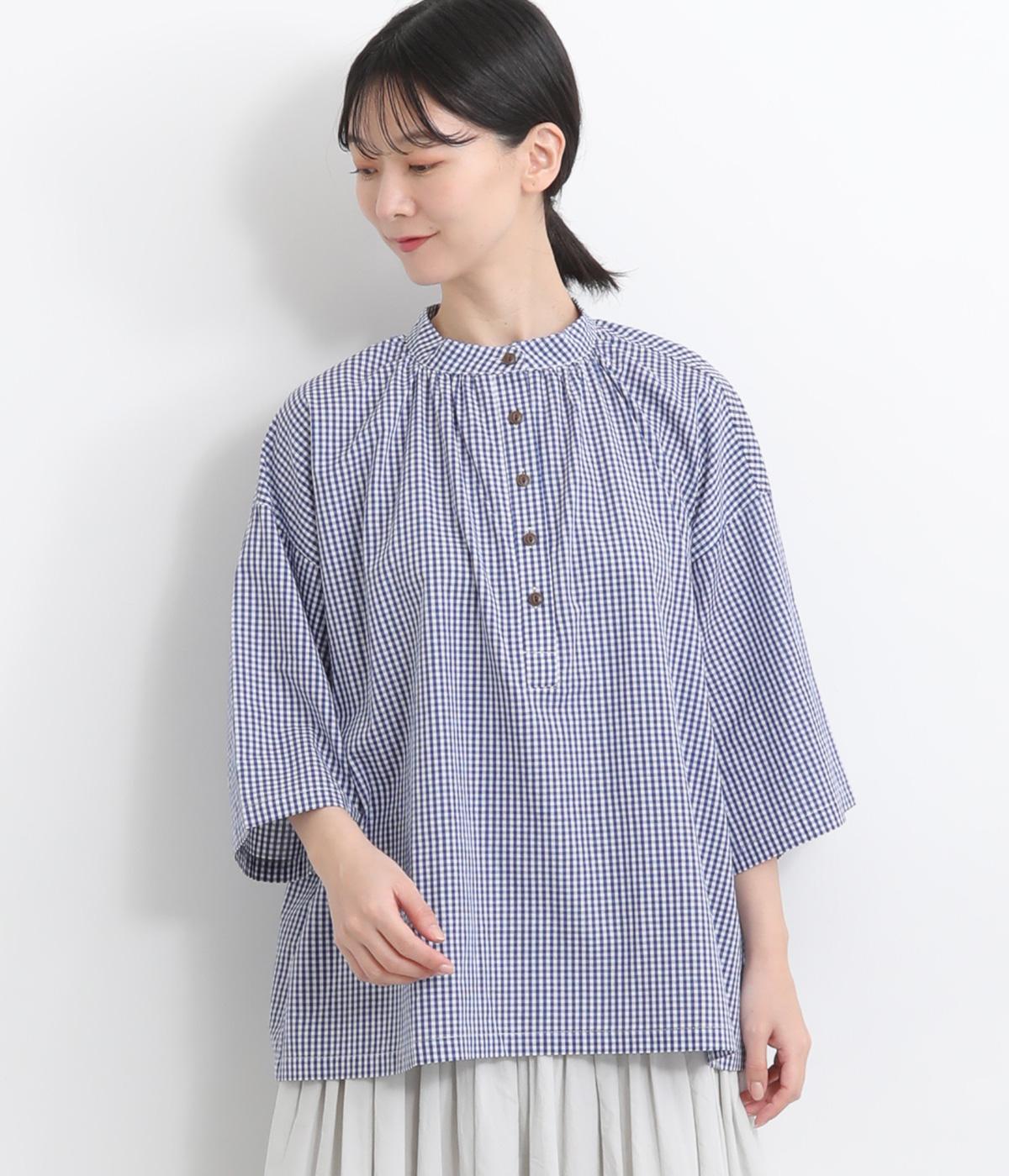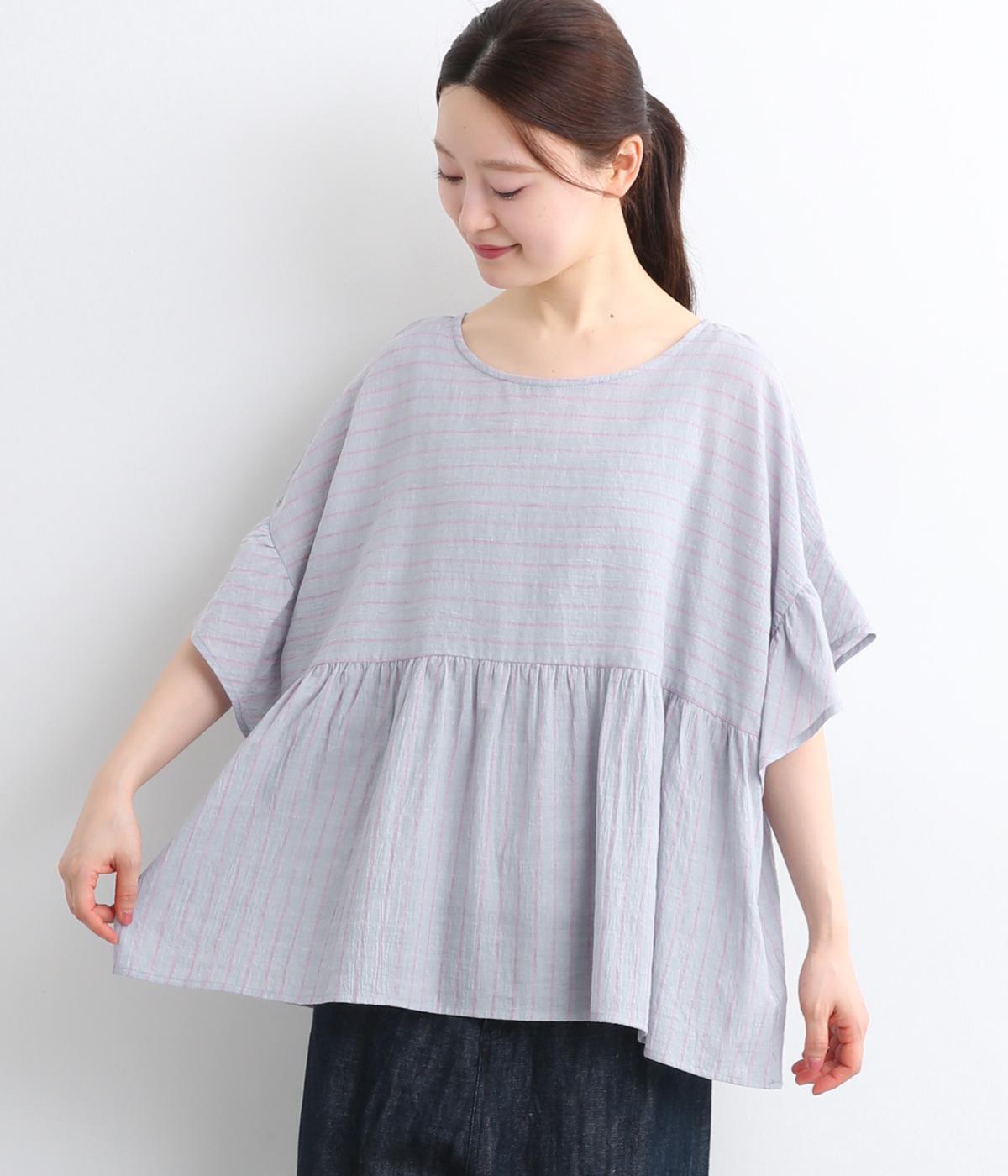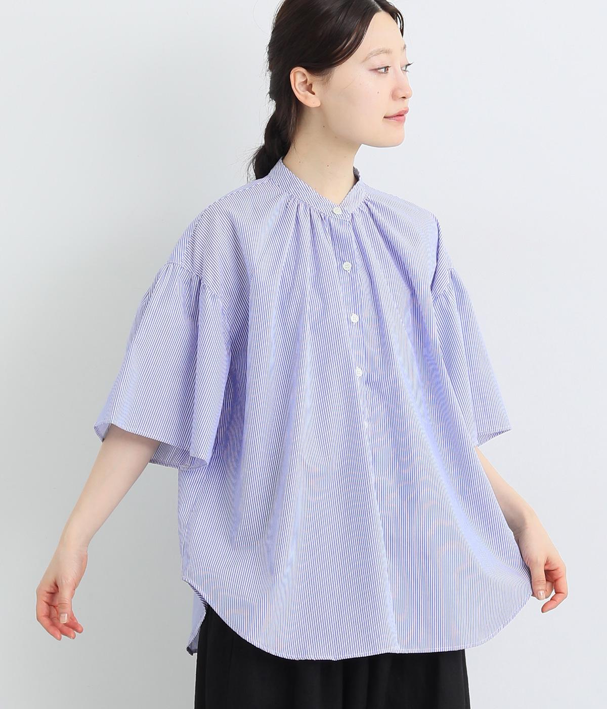 コットンワッシャーストライプクレリックブラウスブルー