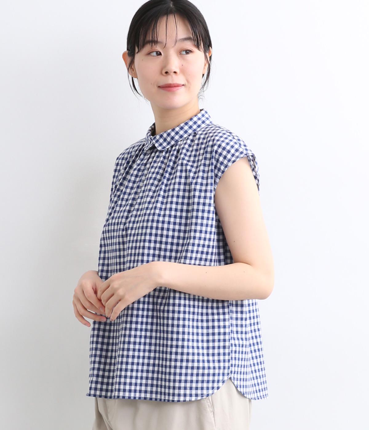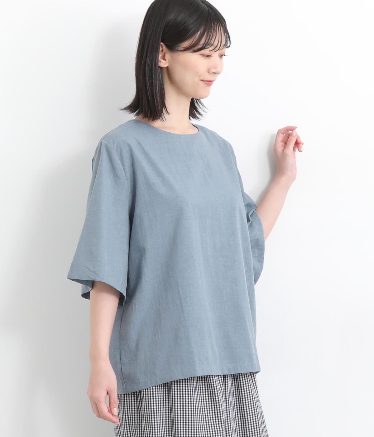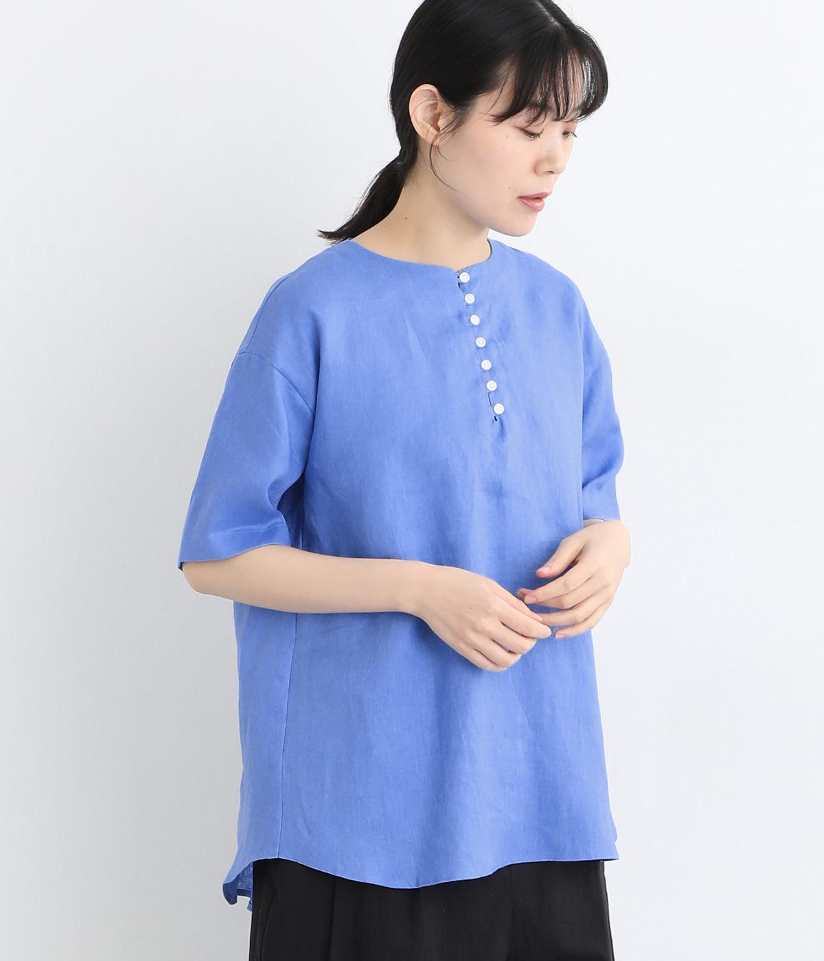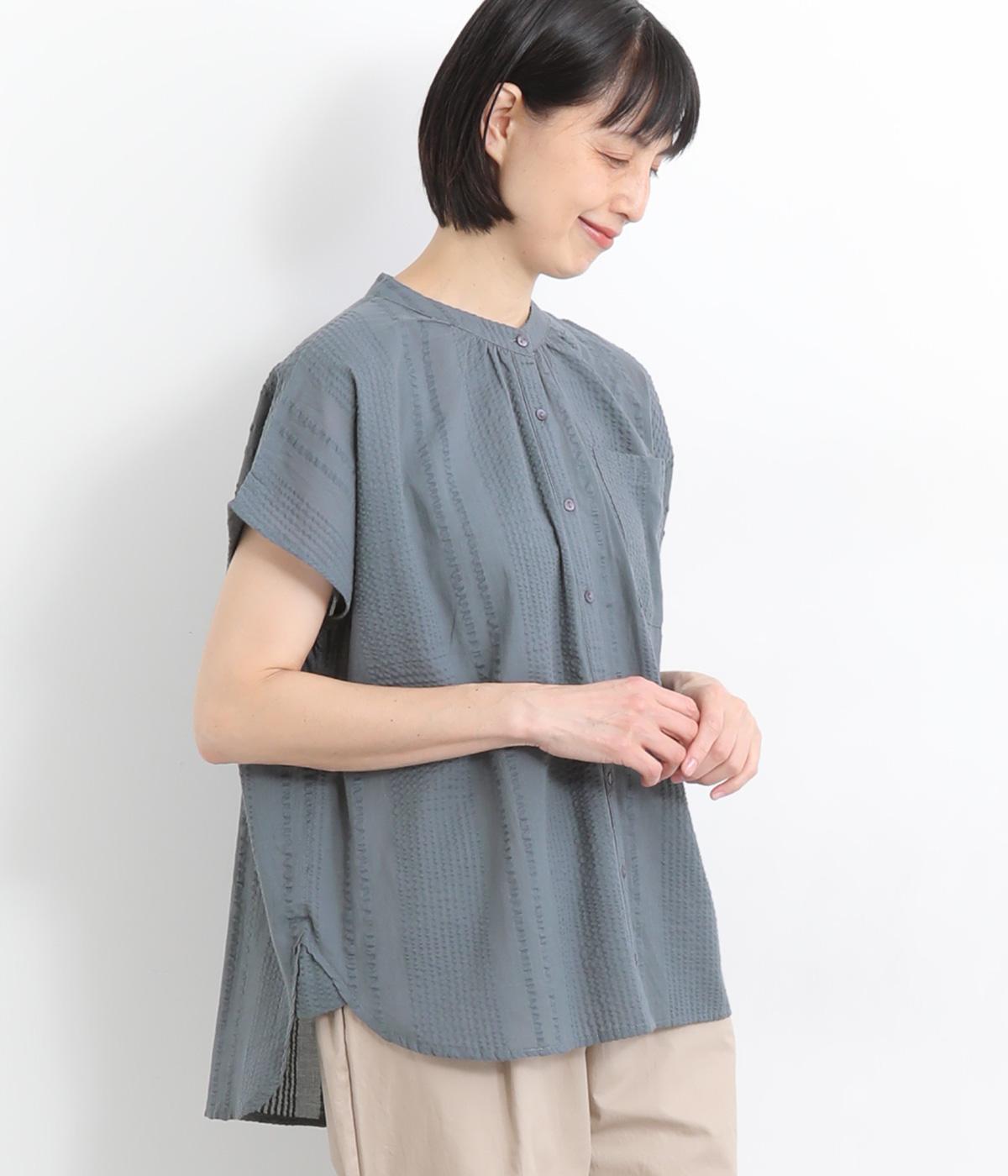コットンワッシャーストライプクレリックブラウスブルー
