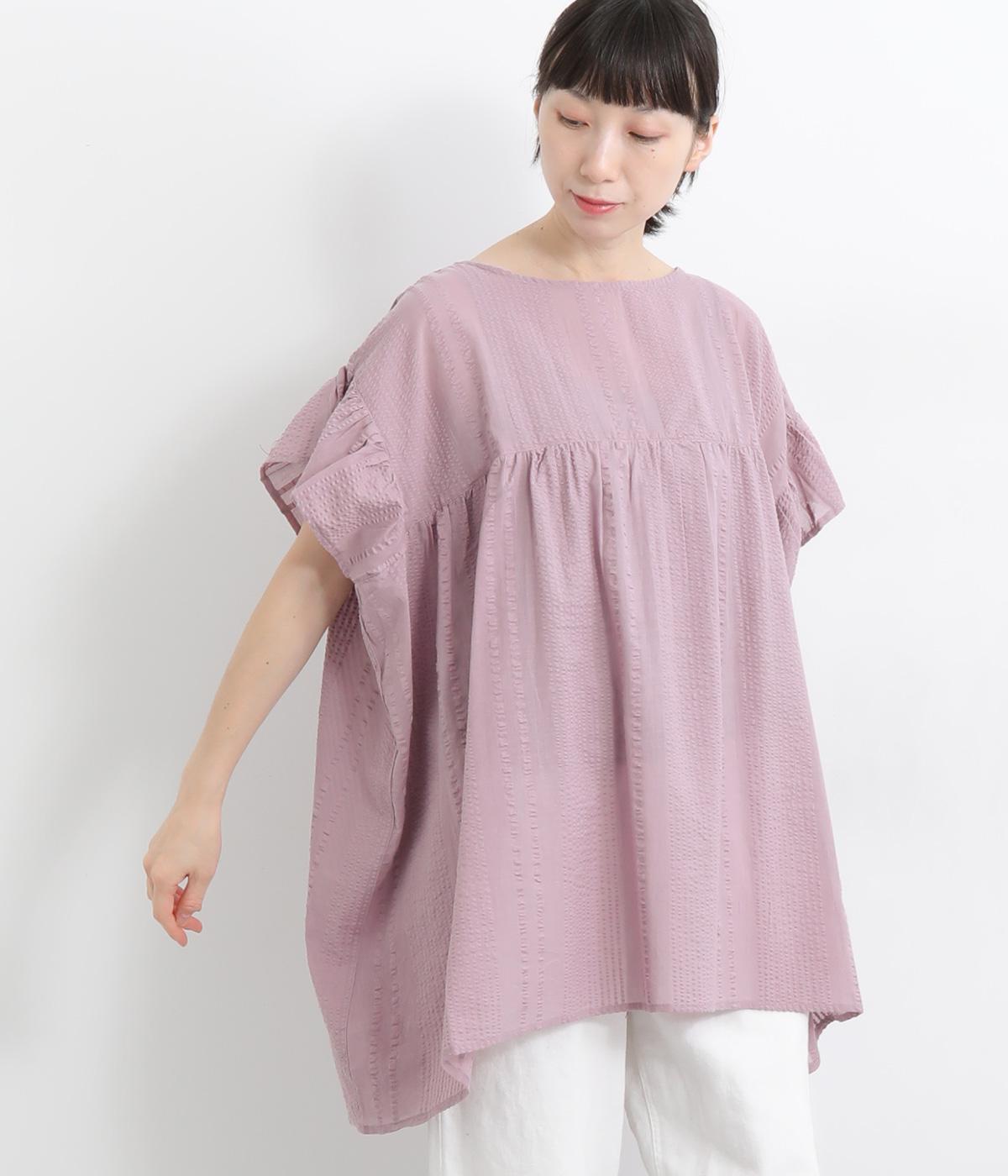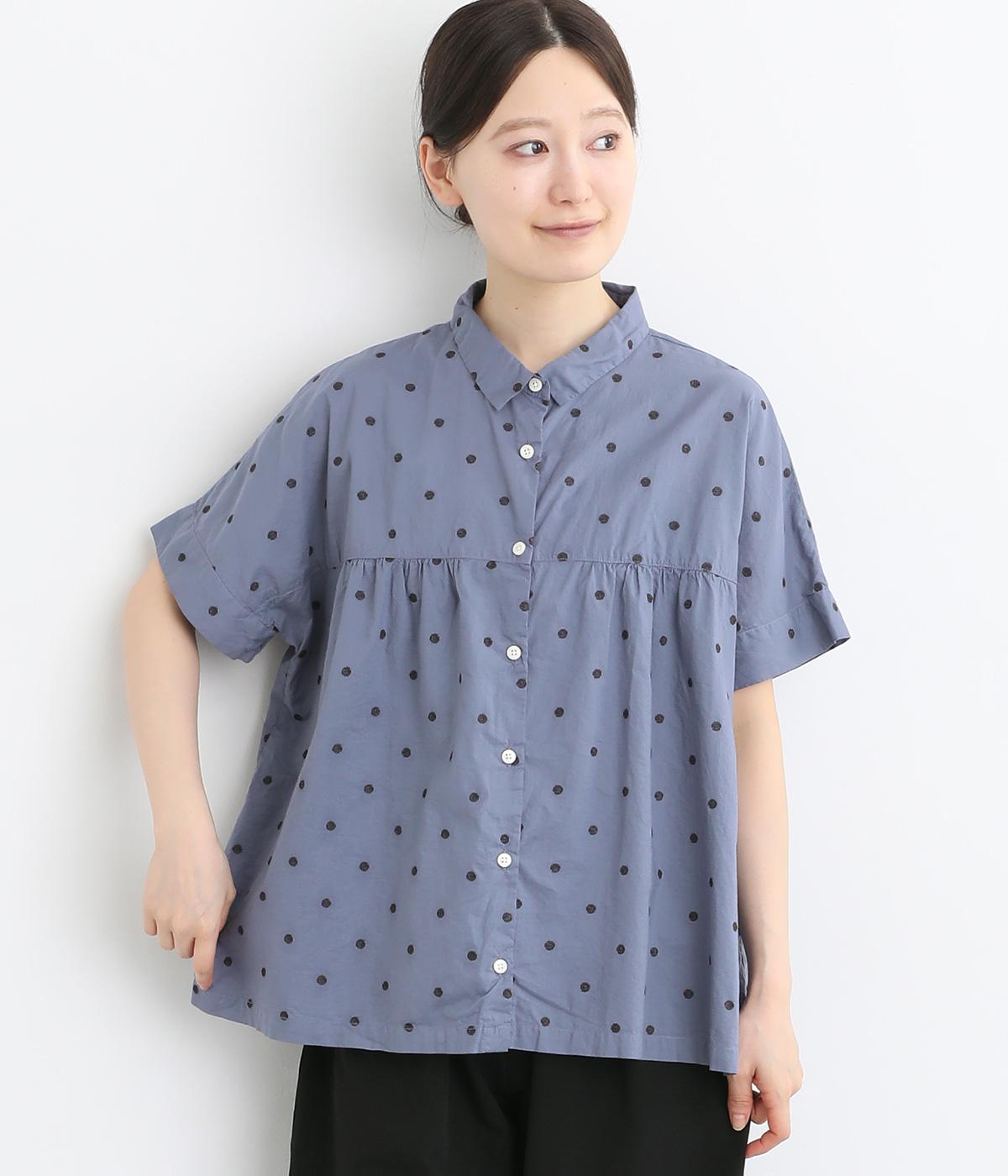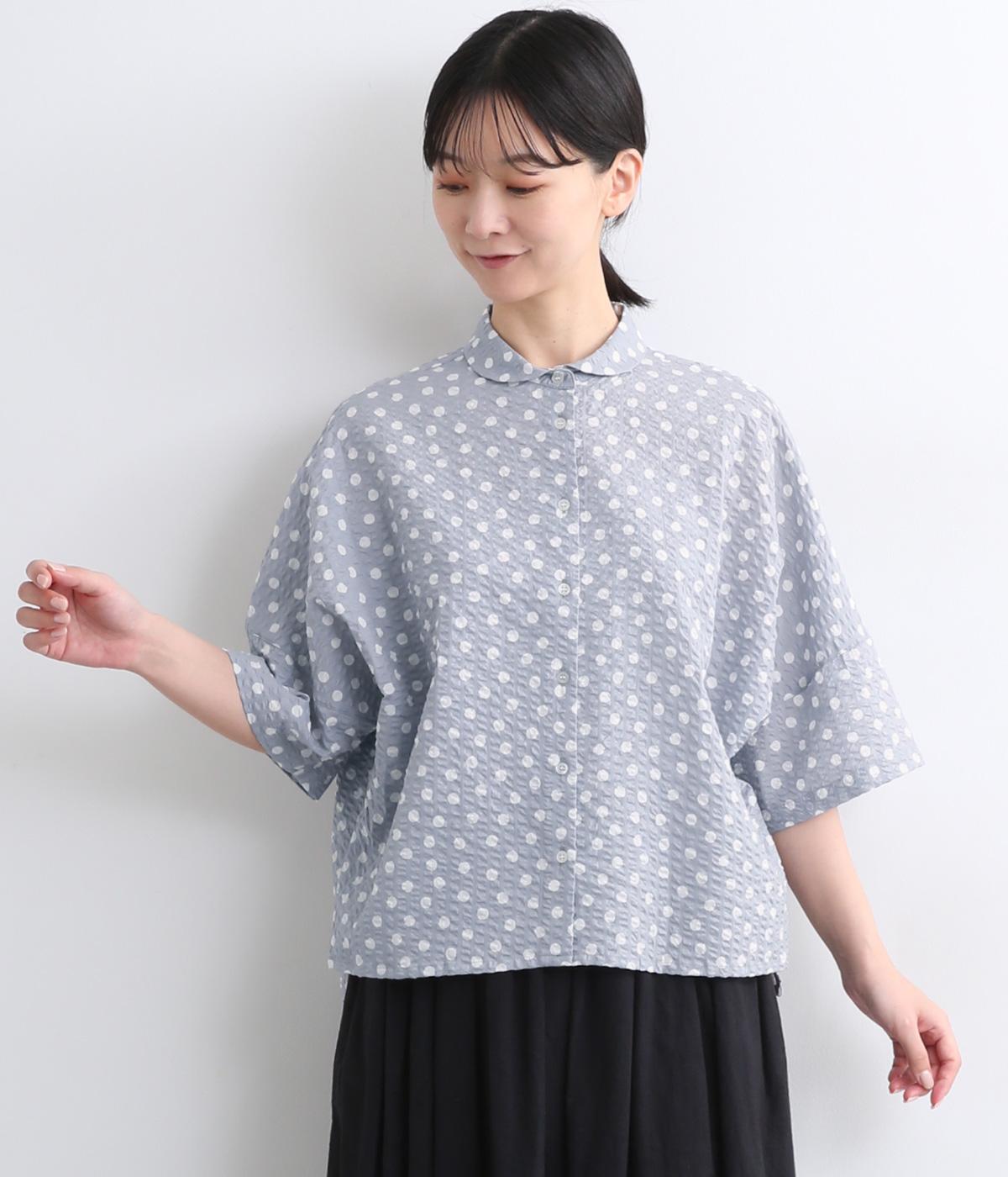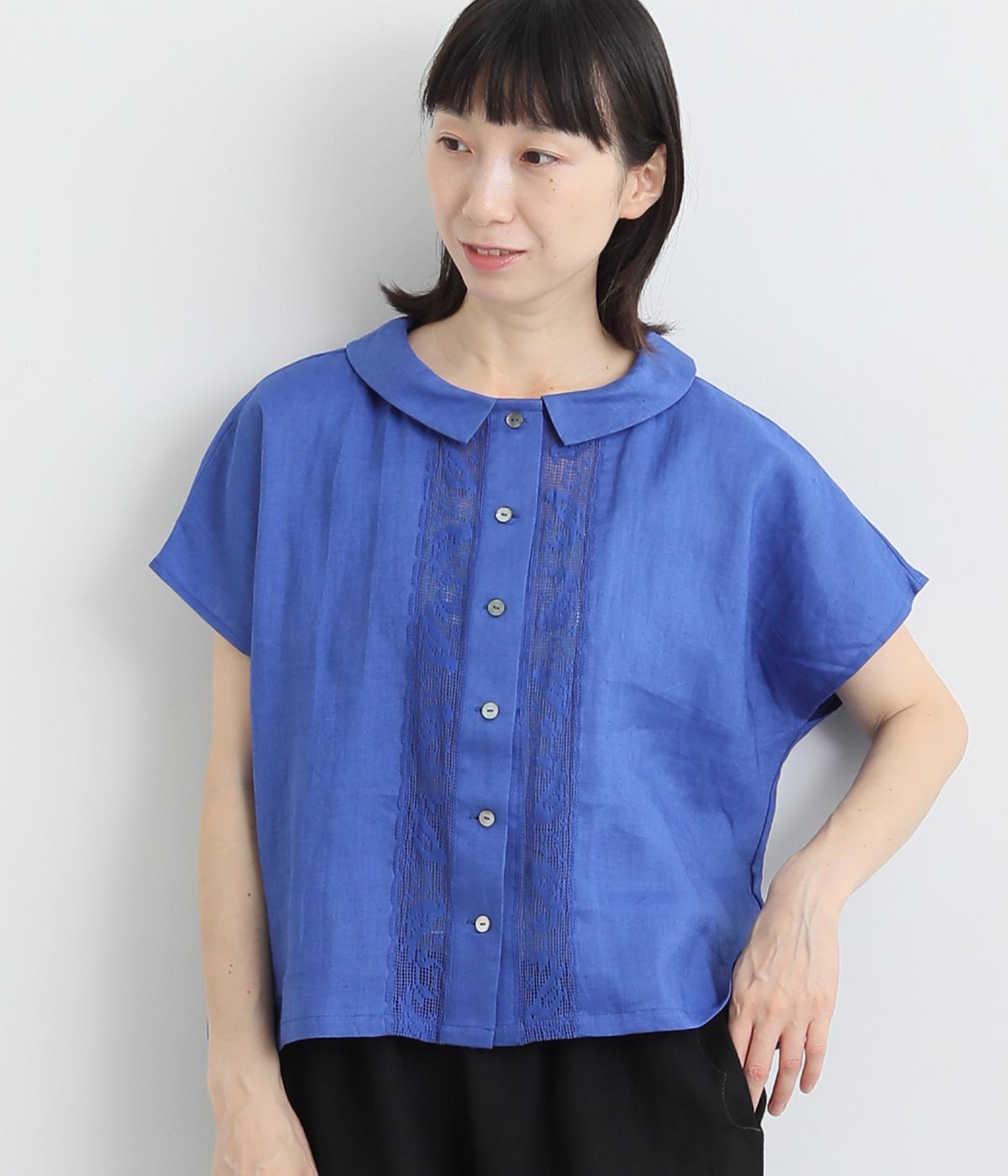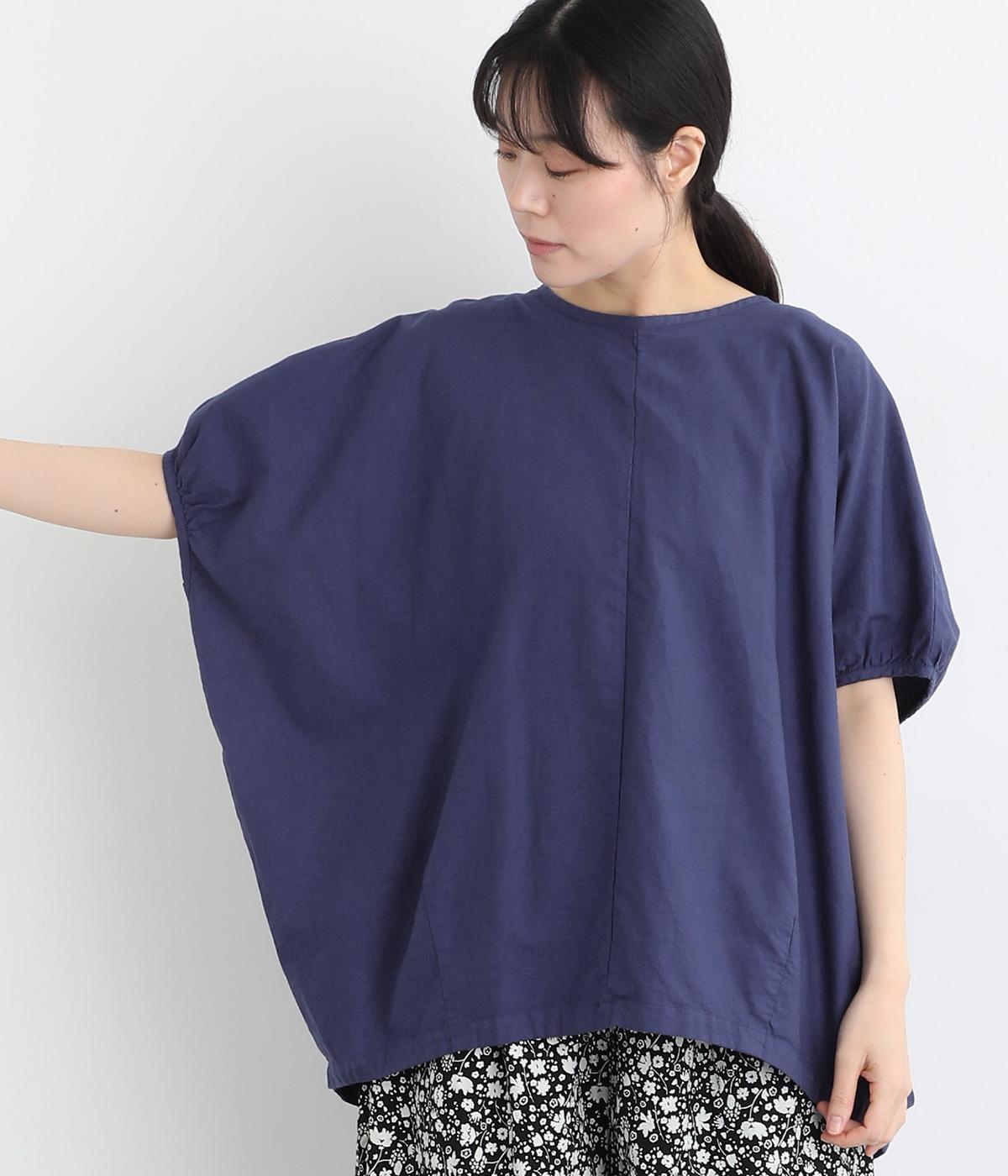コットンワッシャーストライプクレリックブラウスブルー