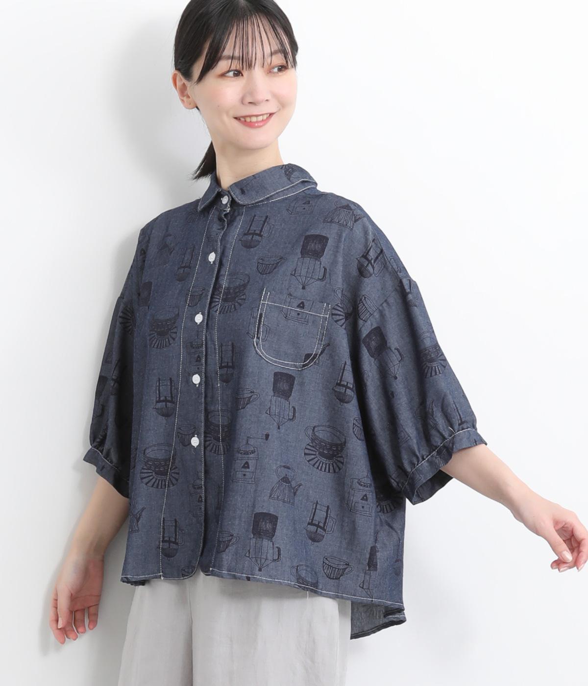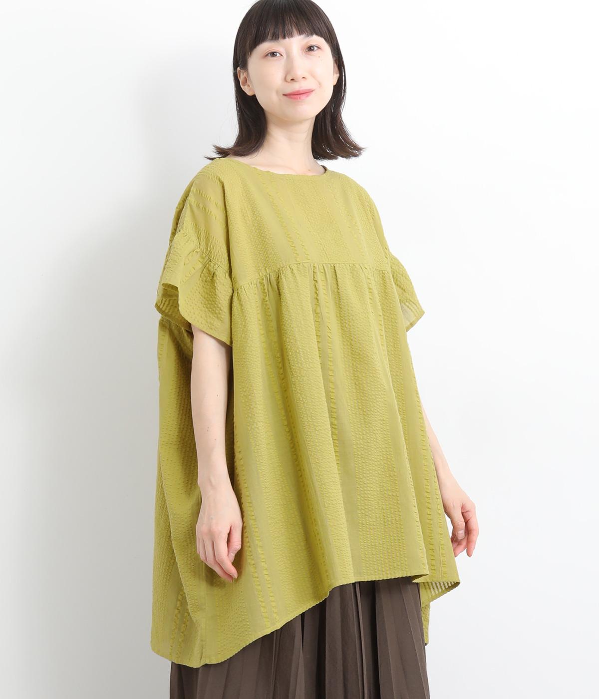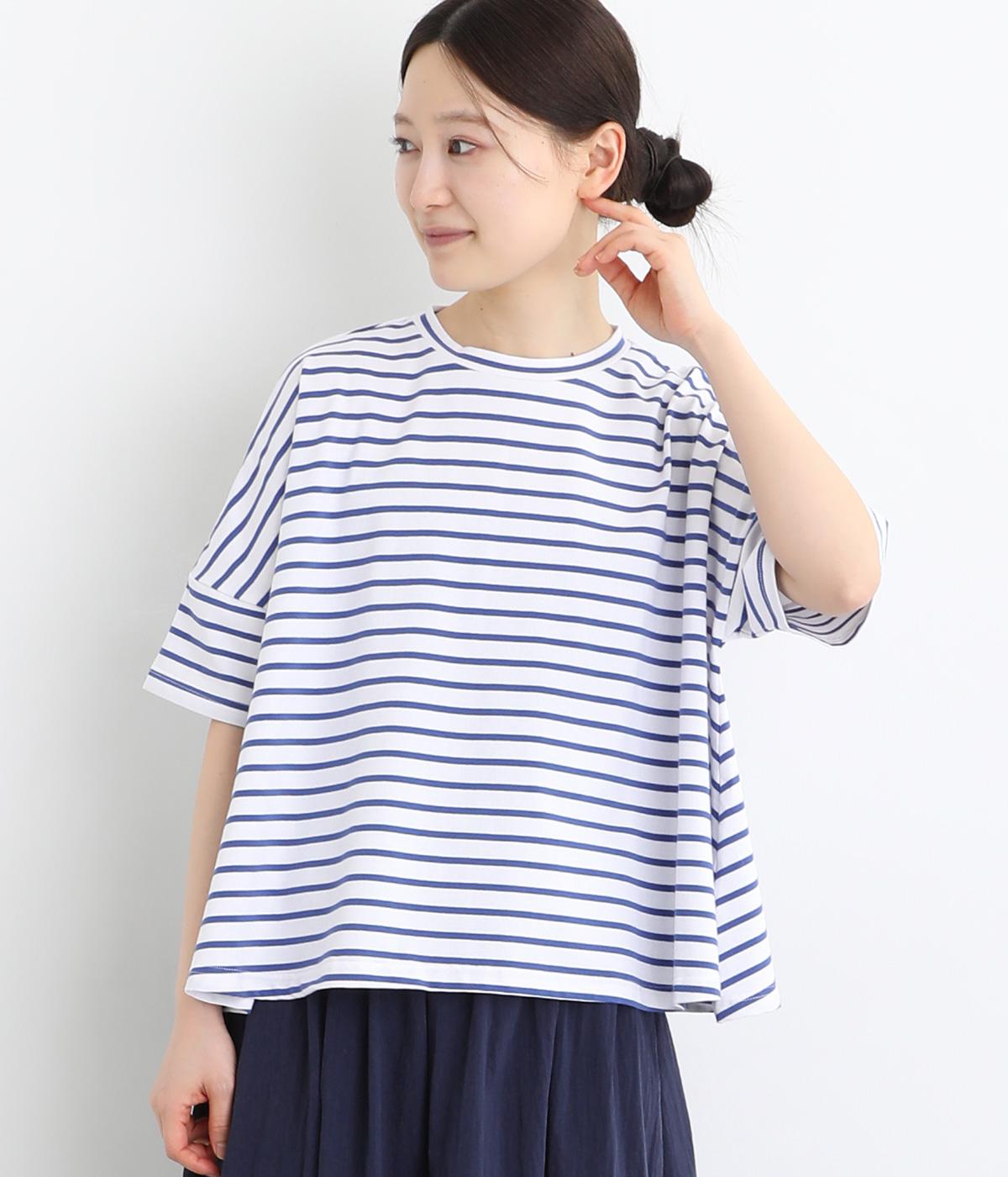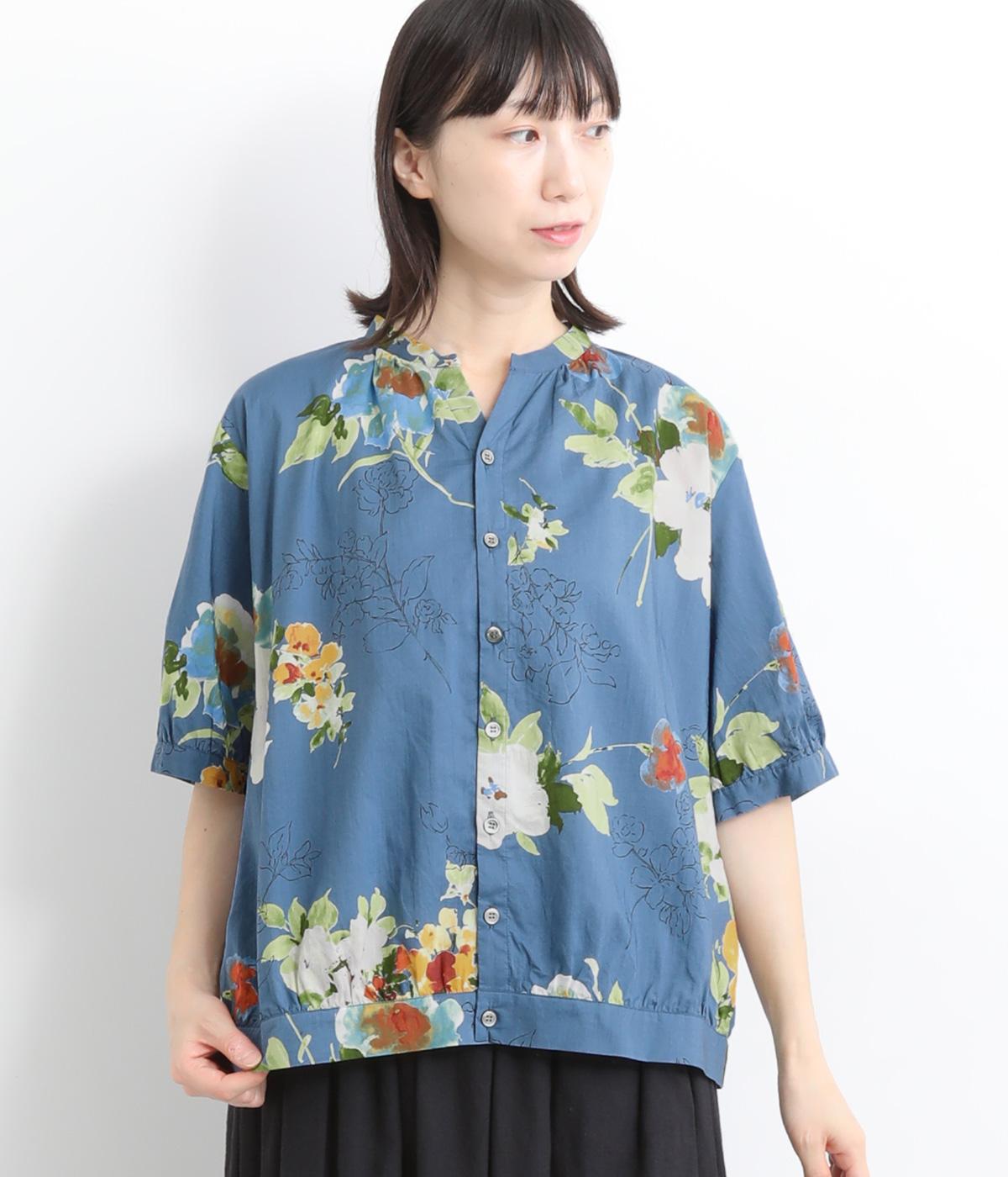 コットンワッシャーストライプクレリックブラウスブルー