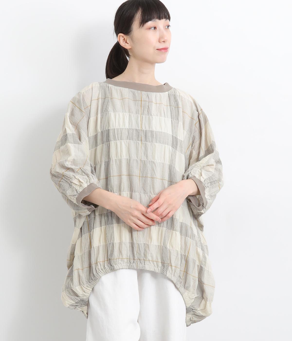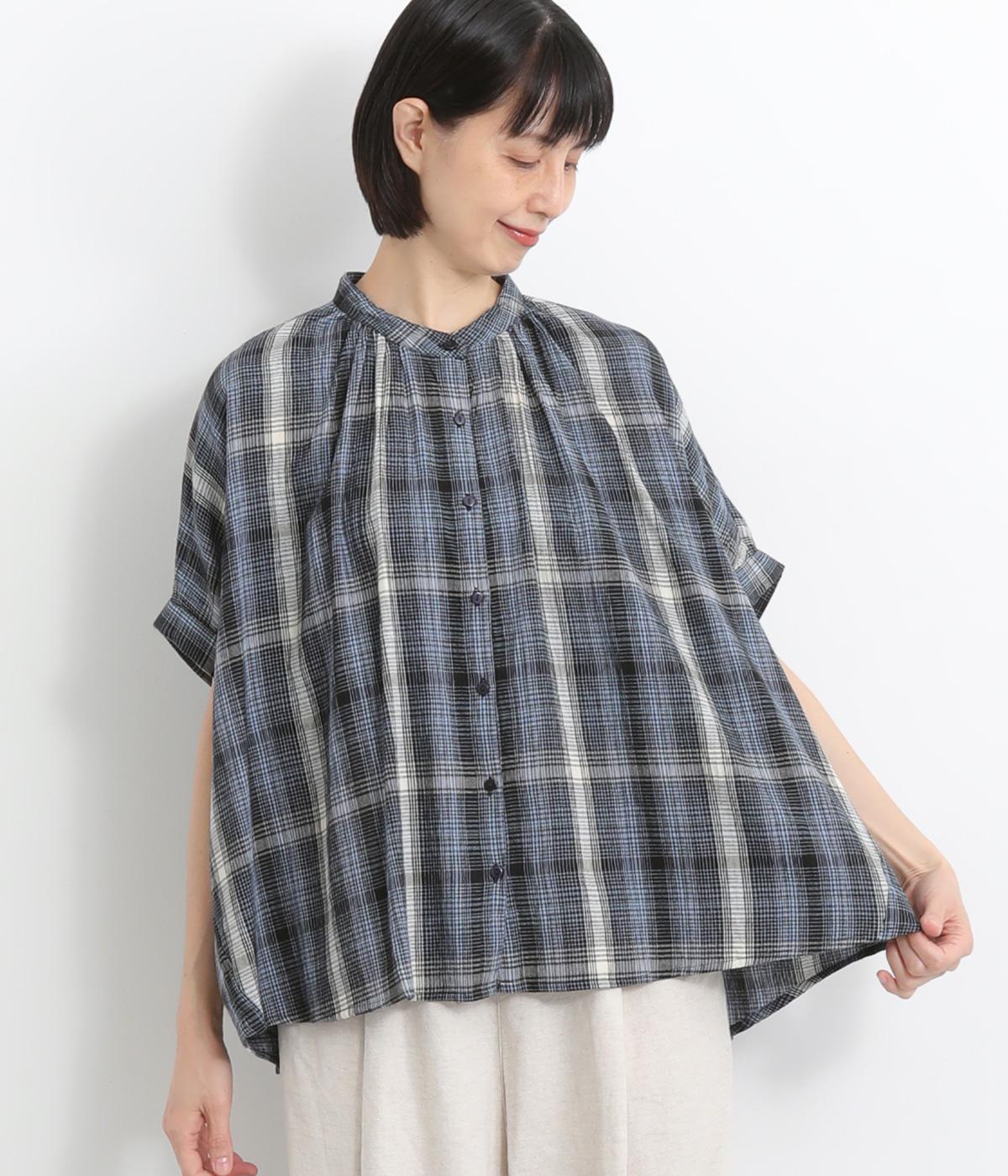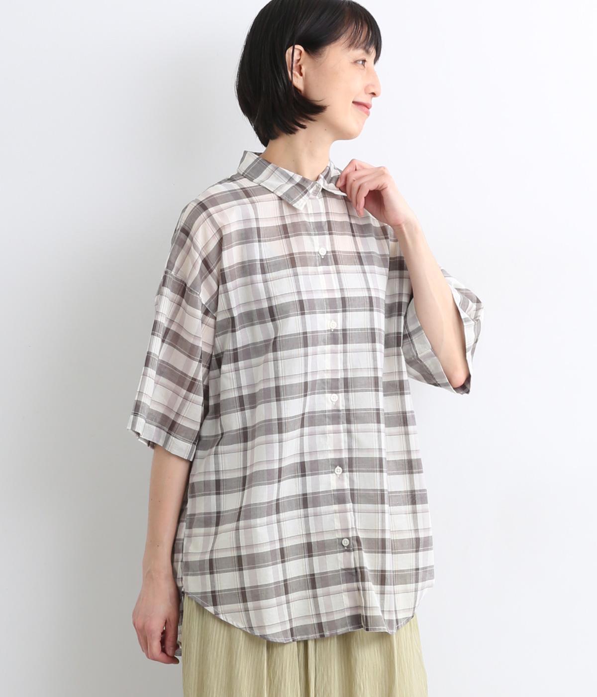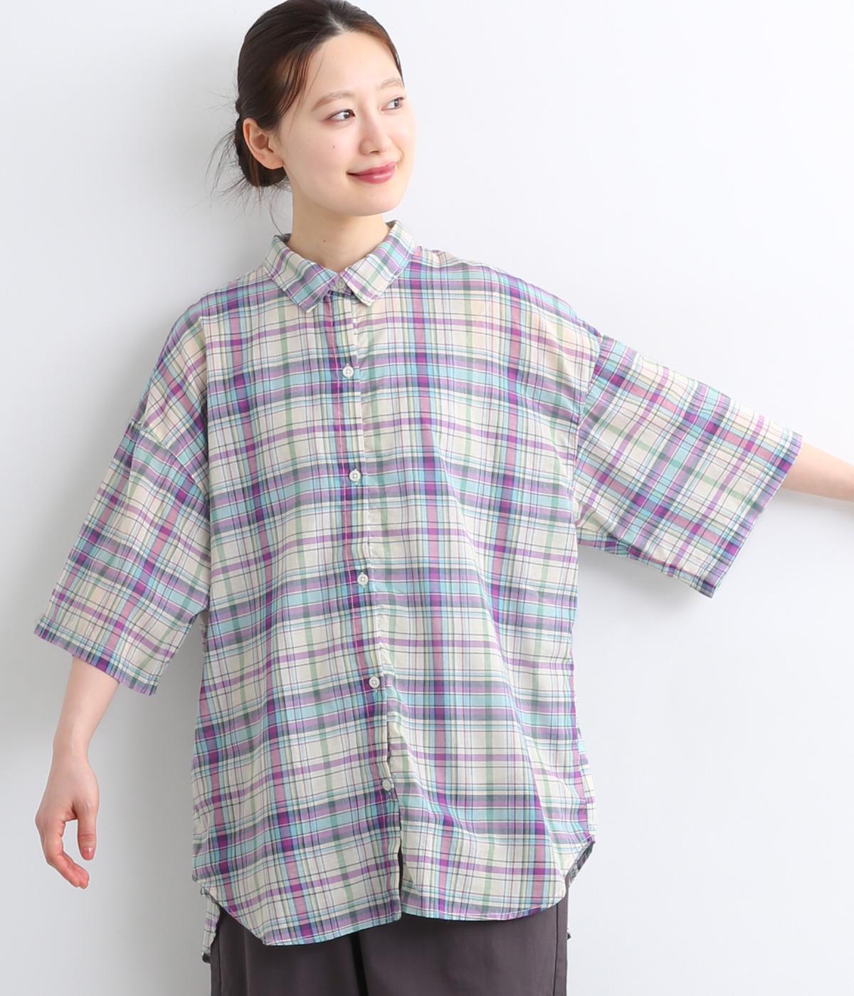 コットンリネンチェックAラインシャツチェック