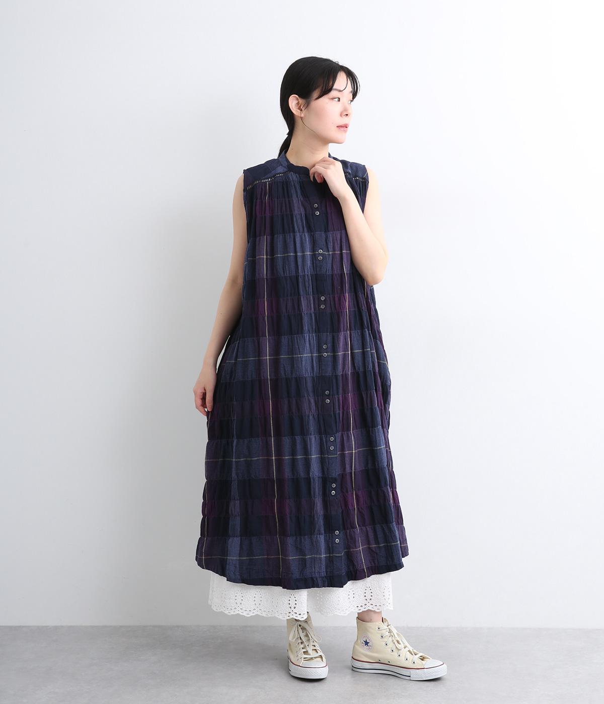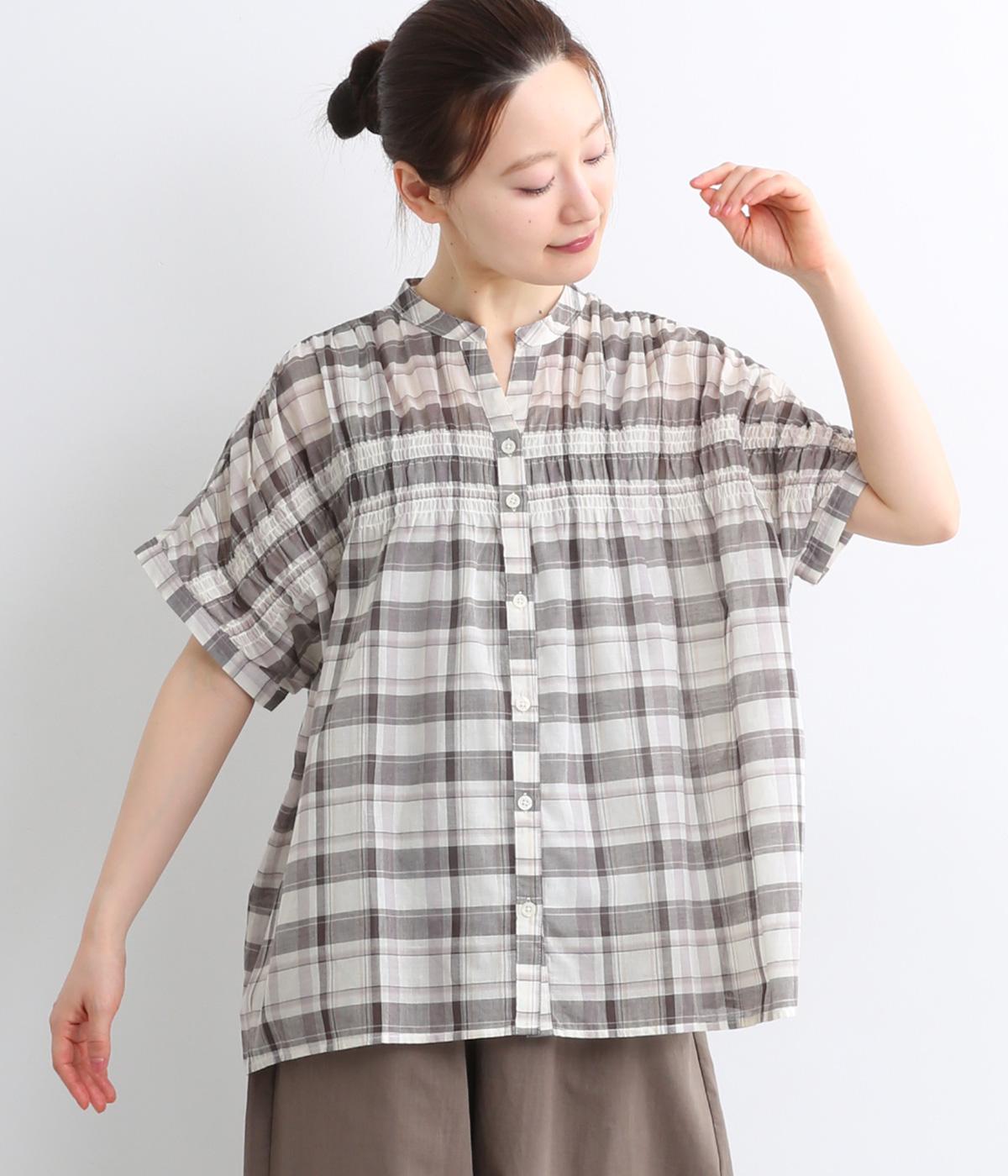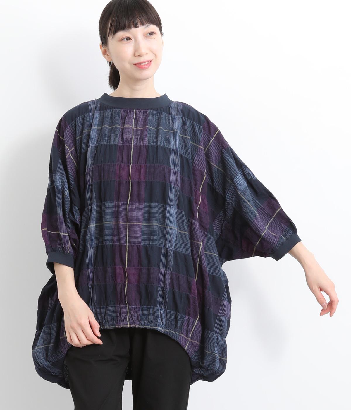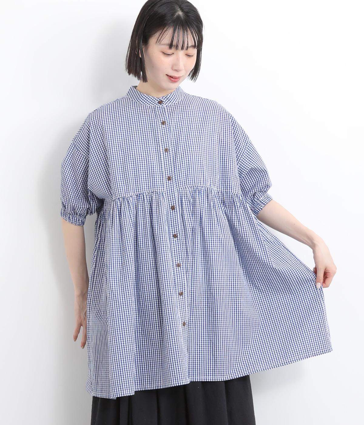 コットンリネンチェックAラインシャツチェック