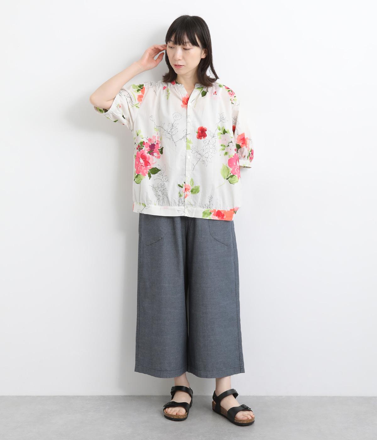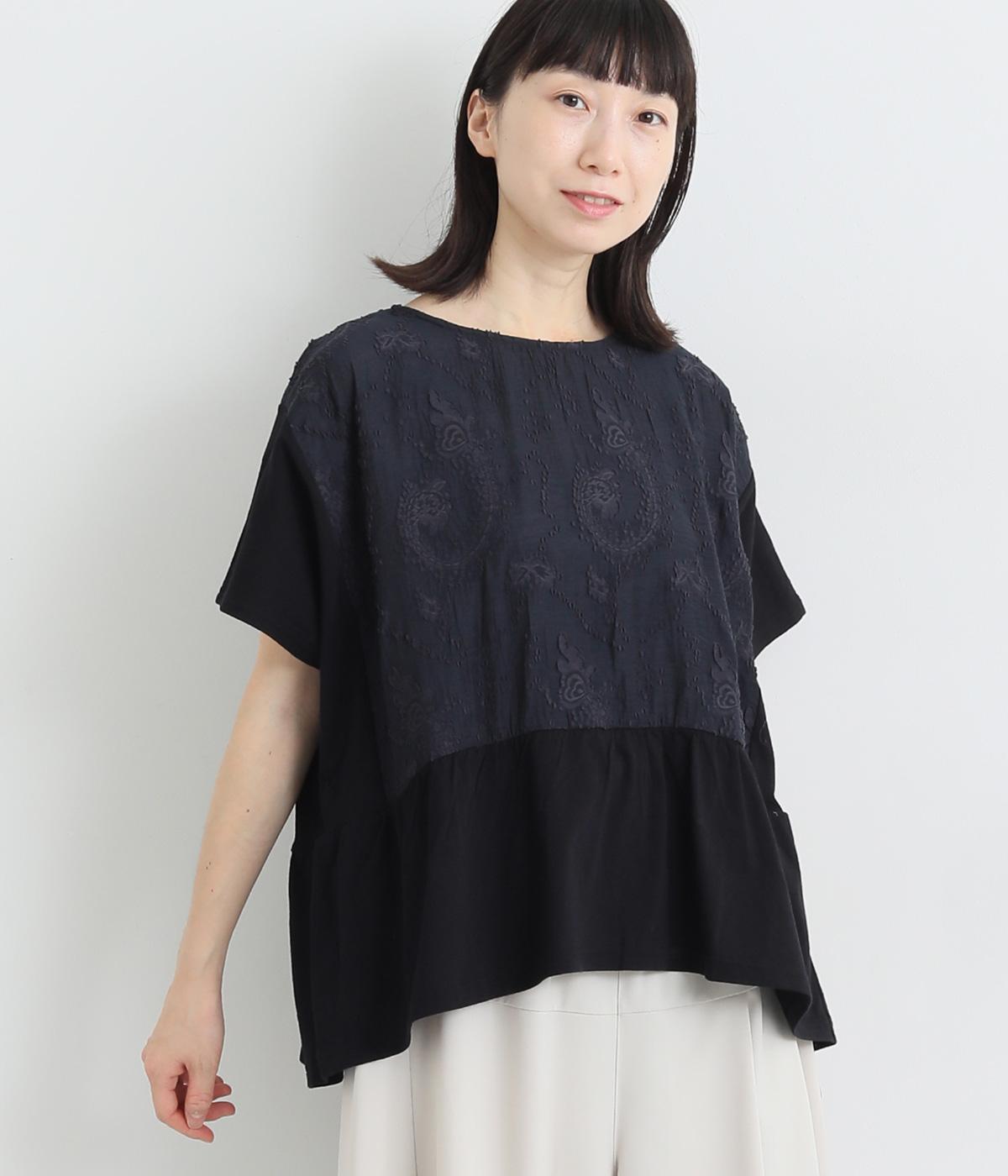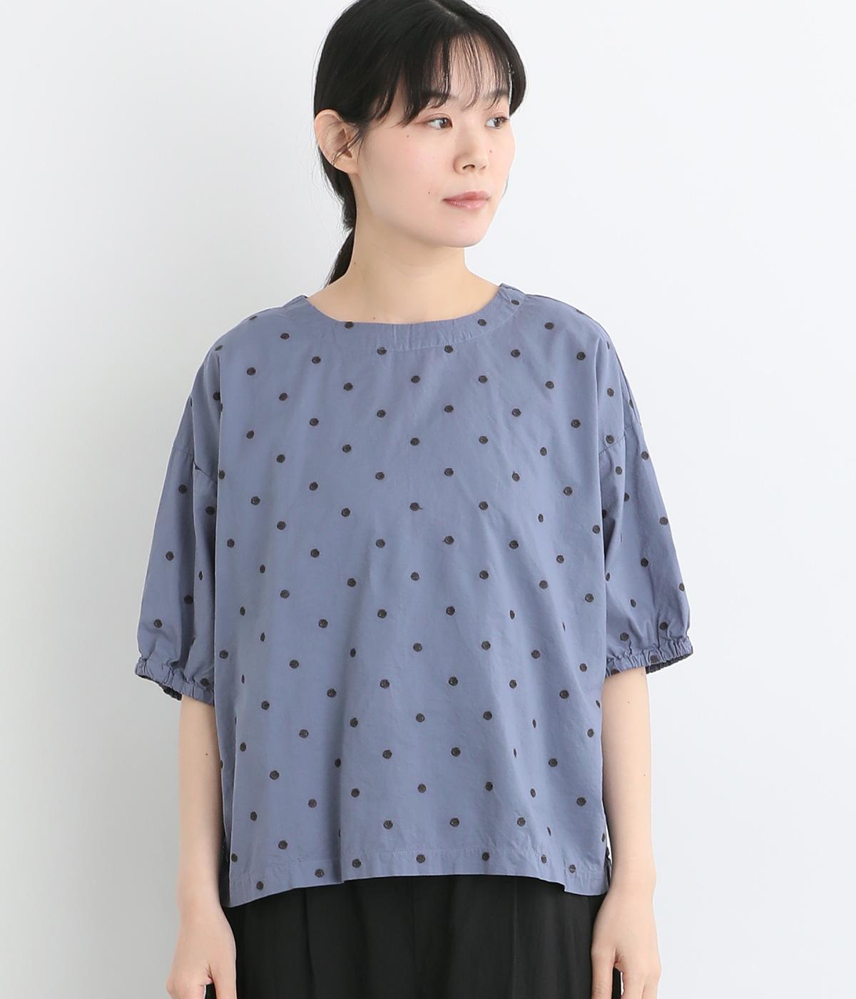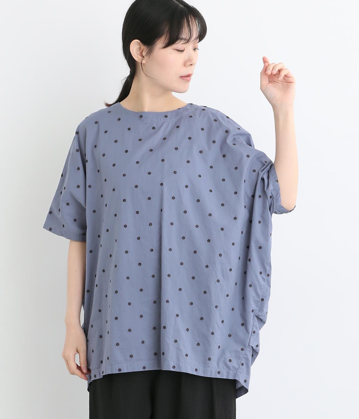 コットンビエラ先染めシャンブレービッグポピーブーケ刺繍チュニックブラウス杢グレー