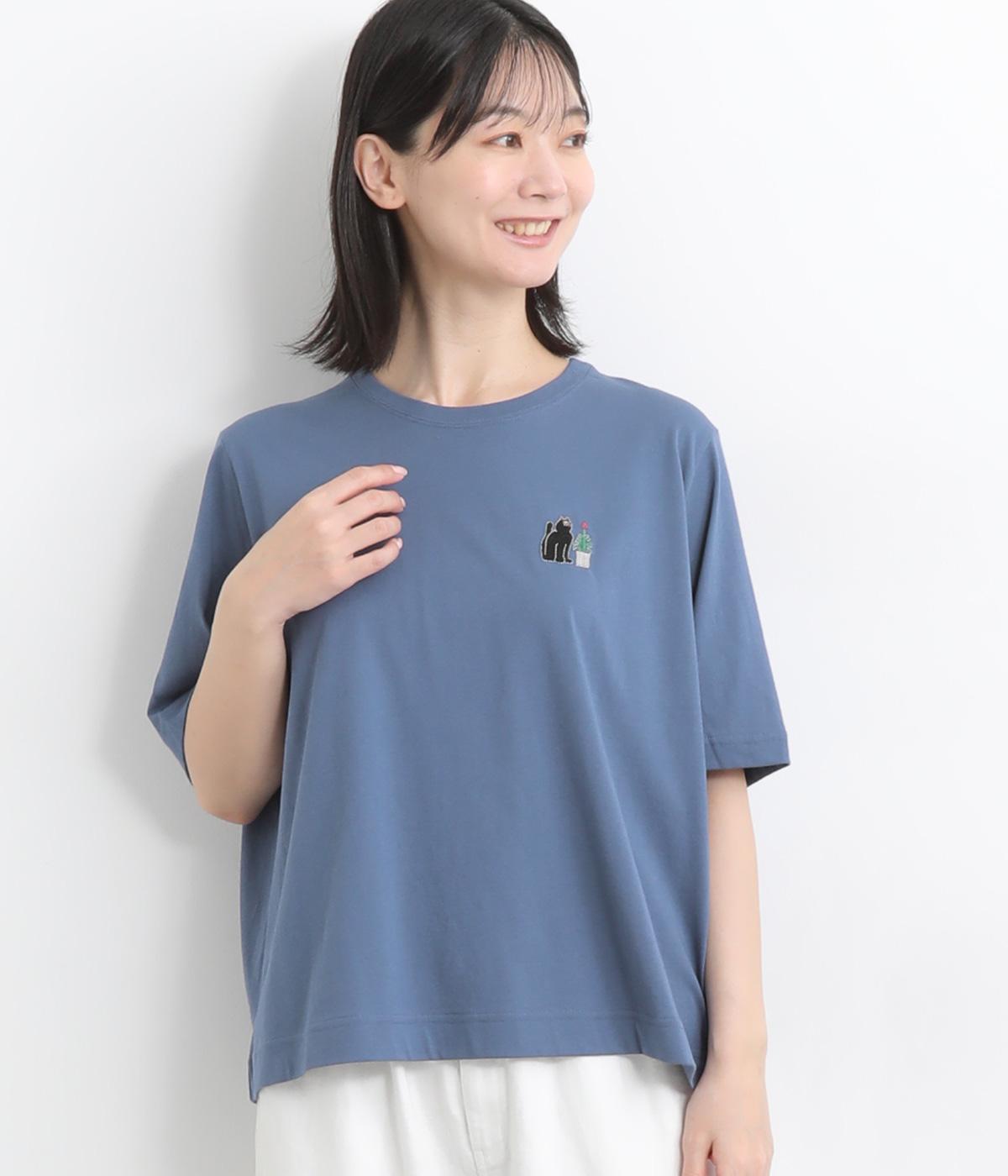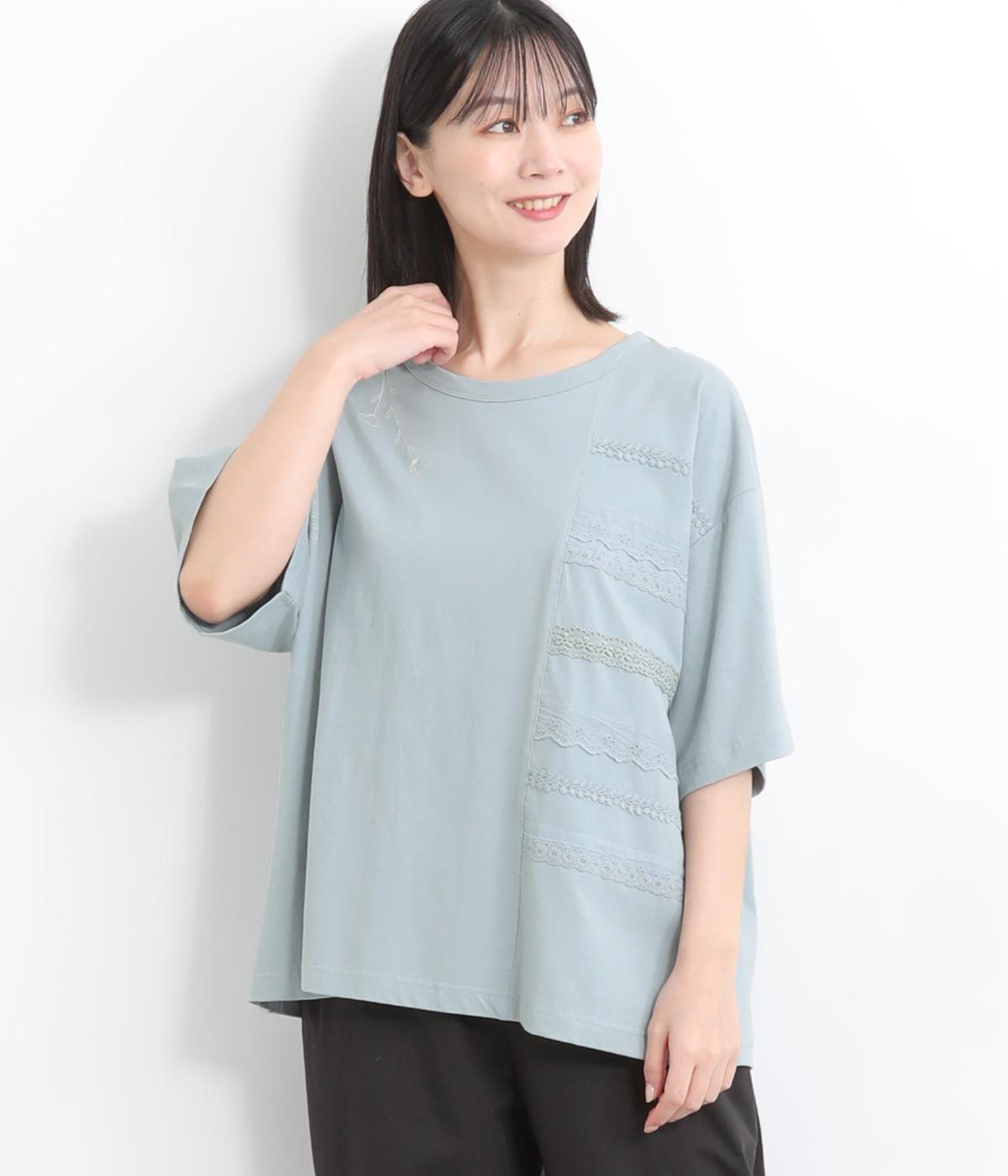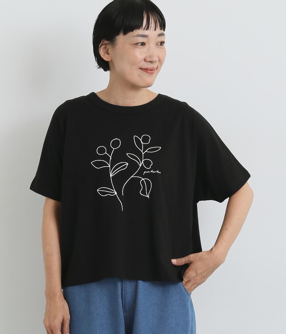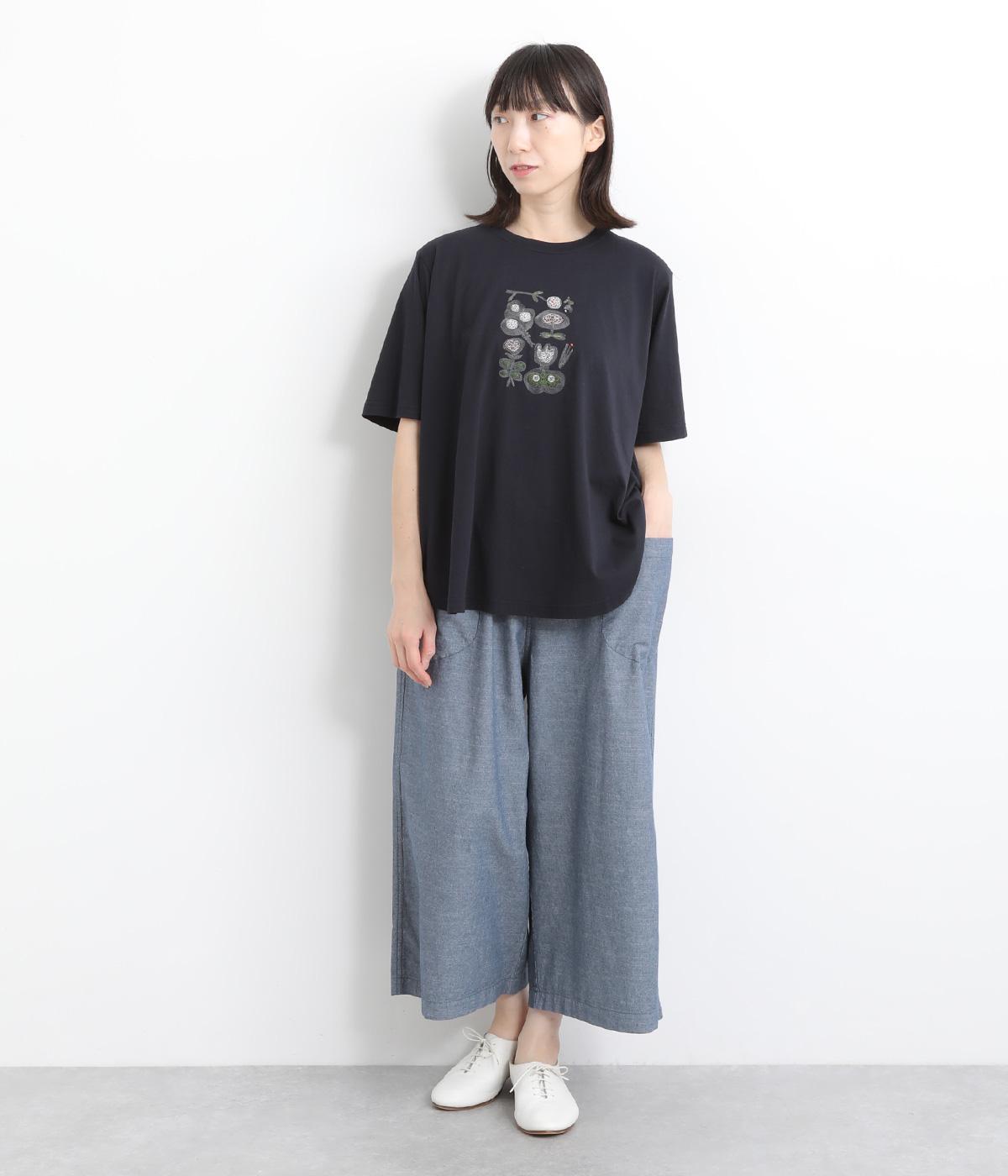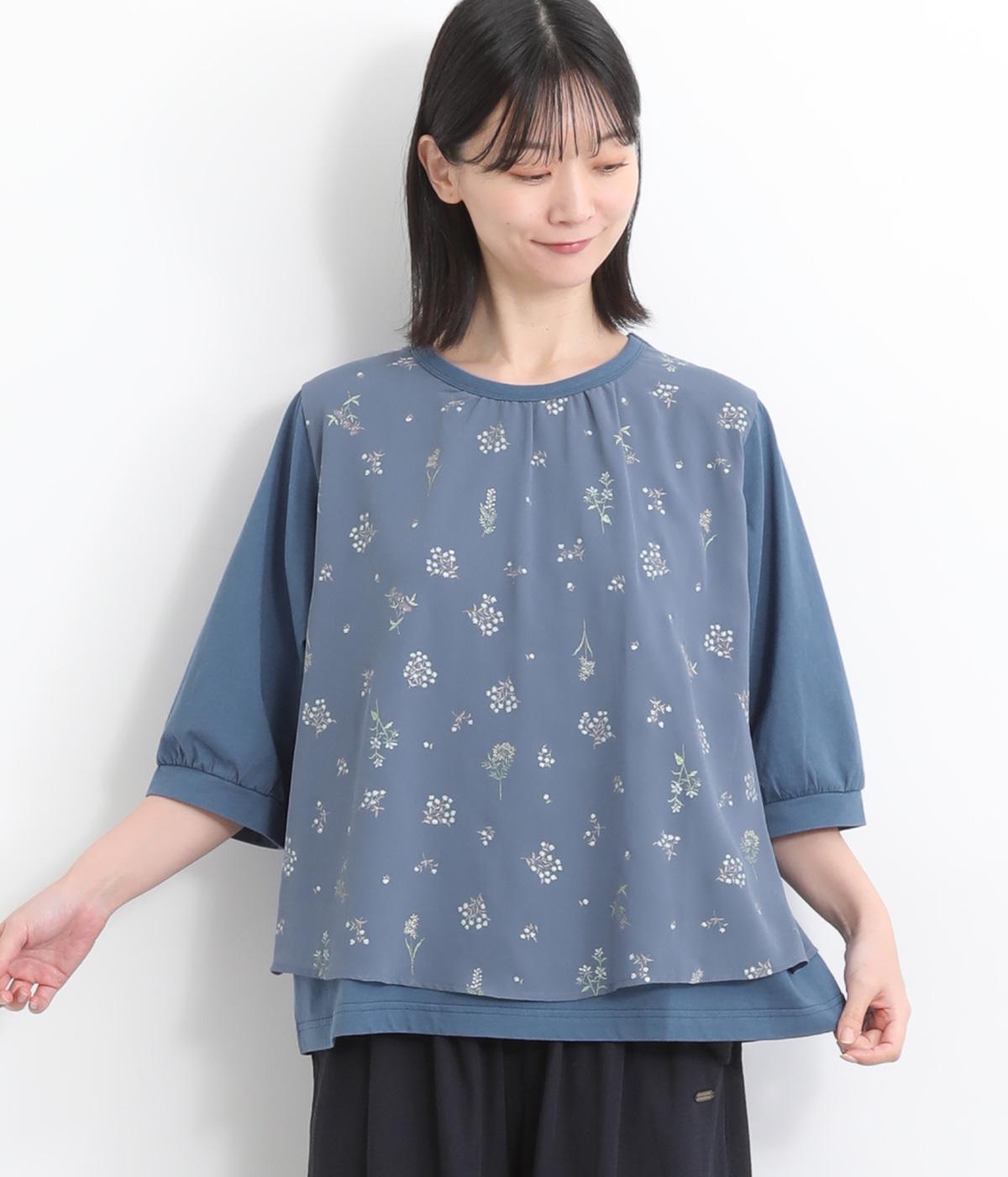 コットンビエラ先染めシャンブレービッグポピーブーケ刺繍チュニックブラウス杢グレー