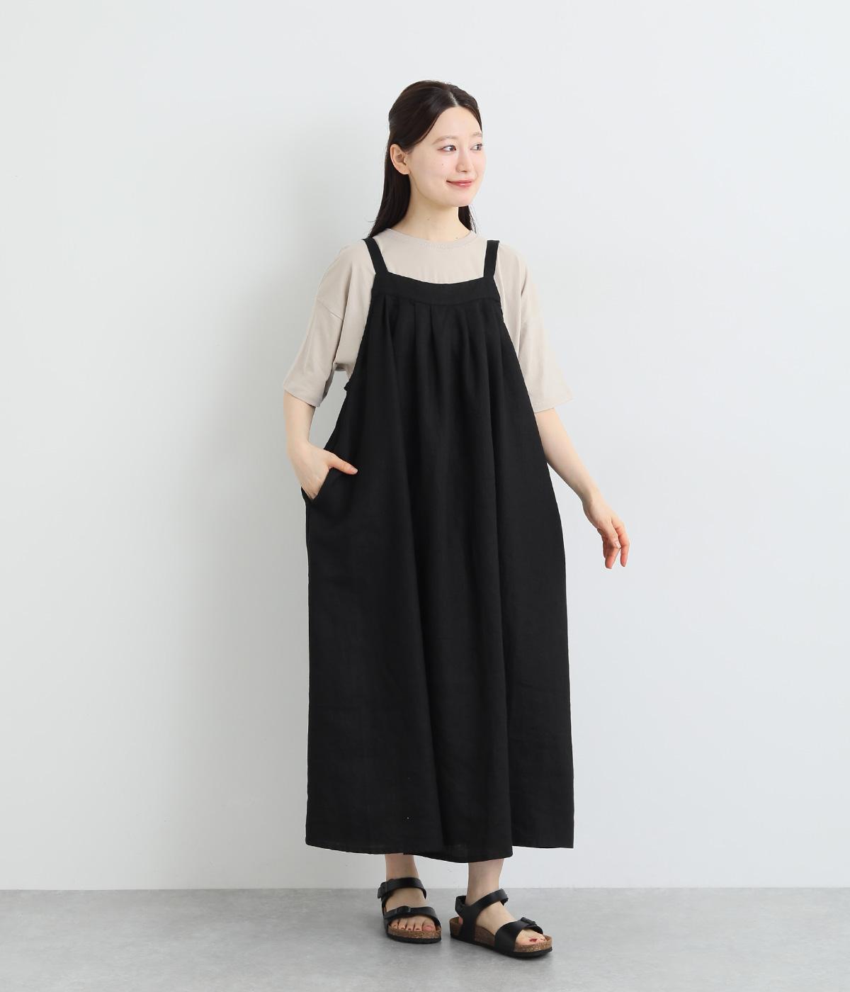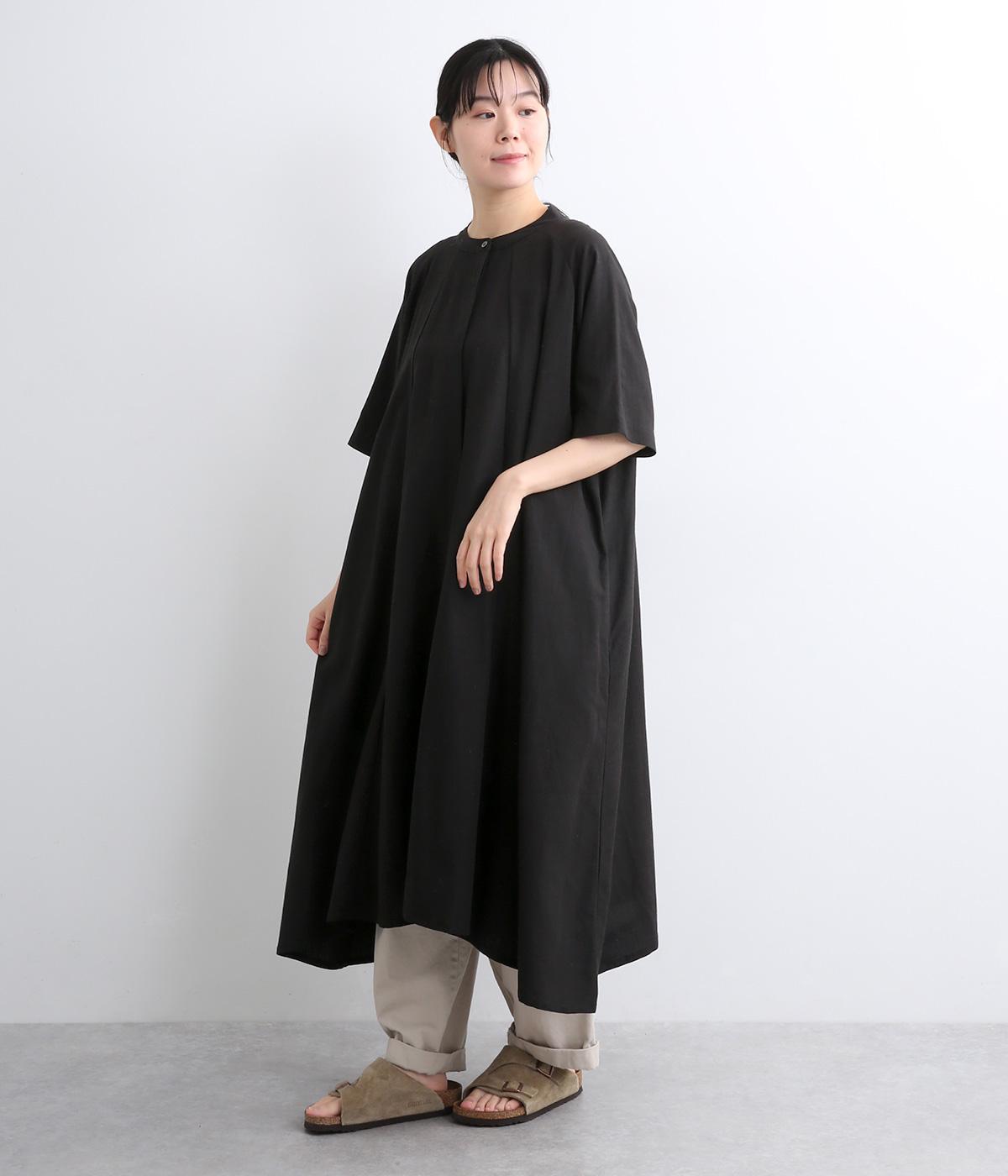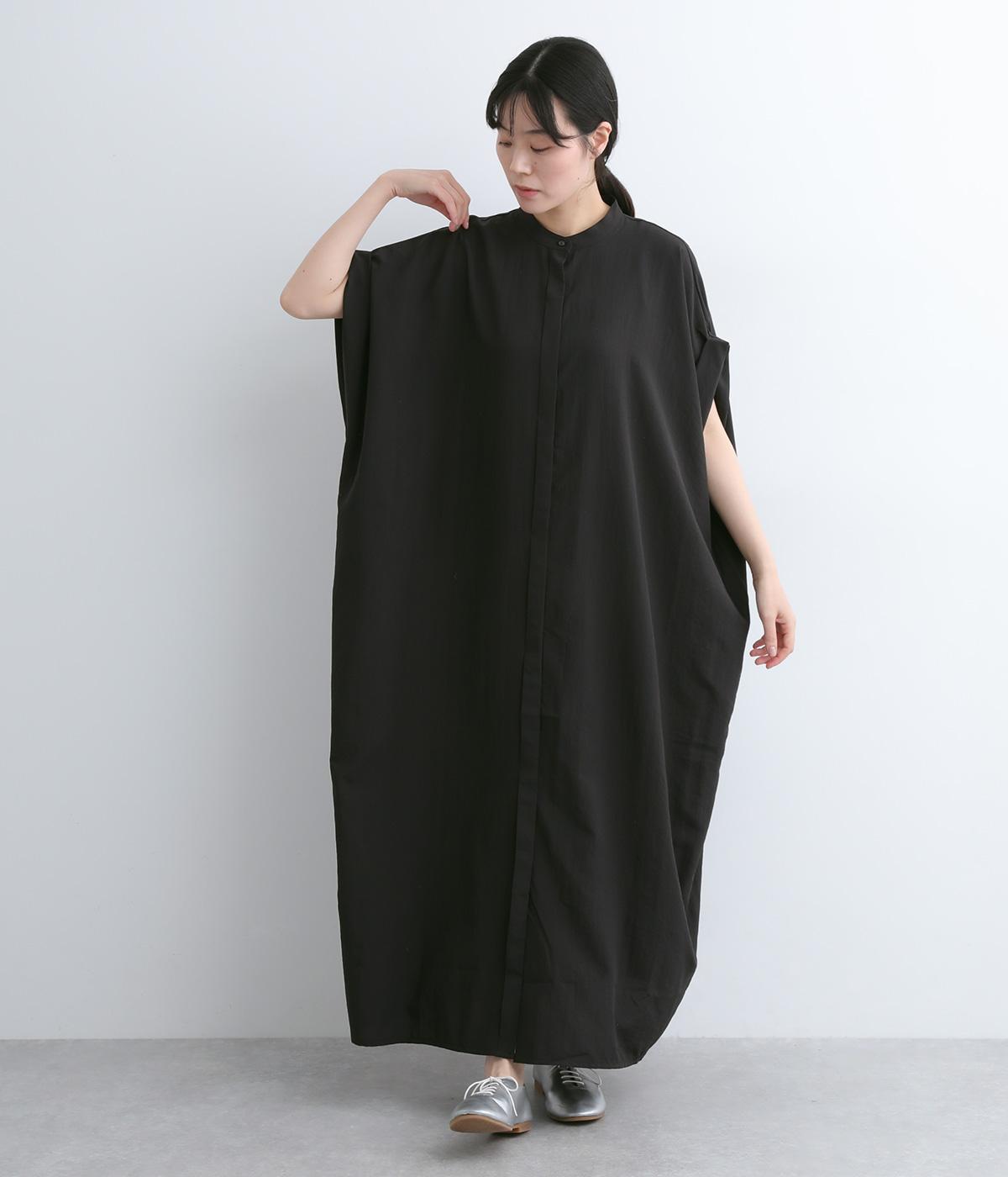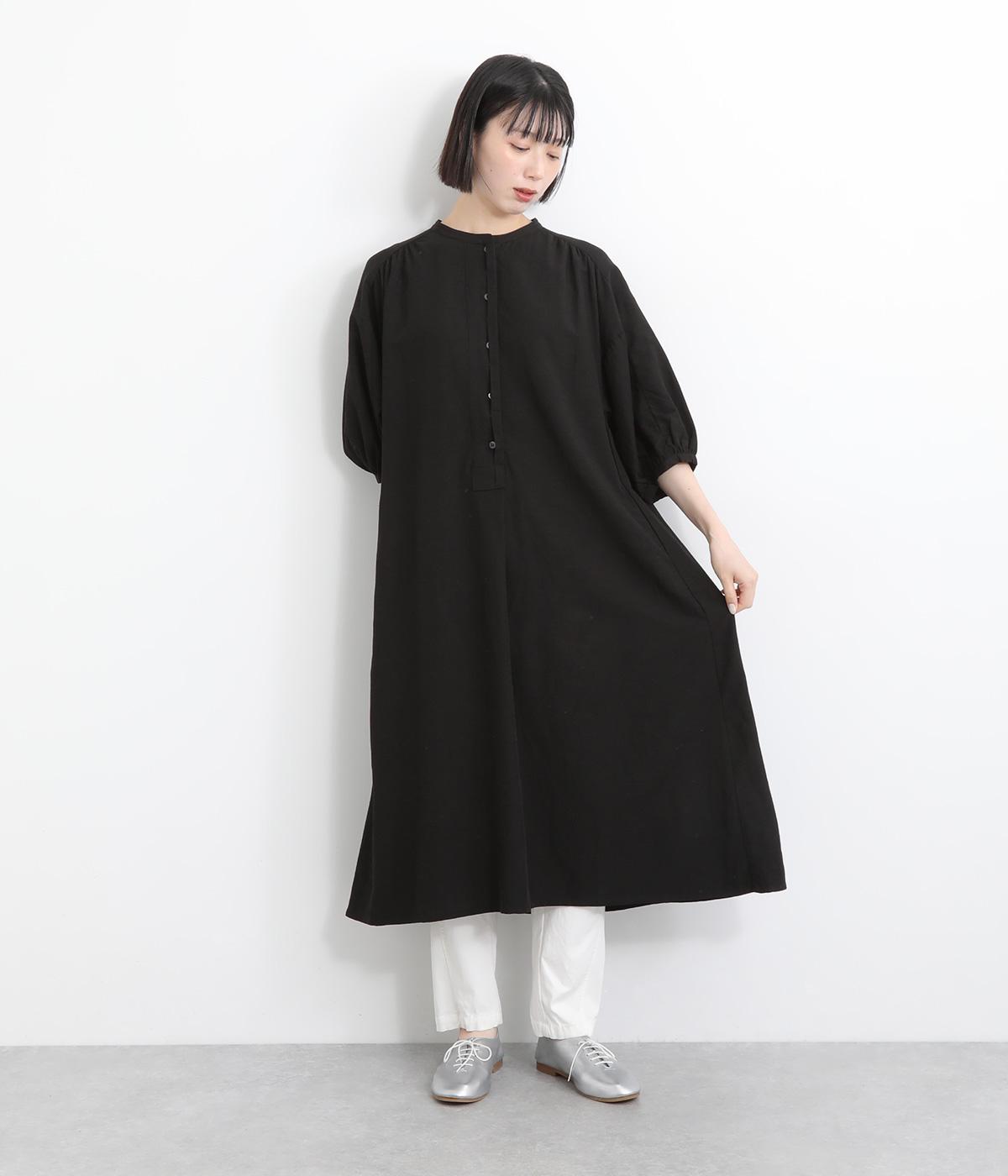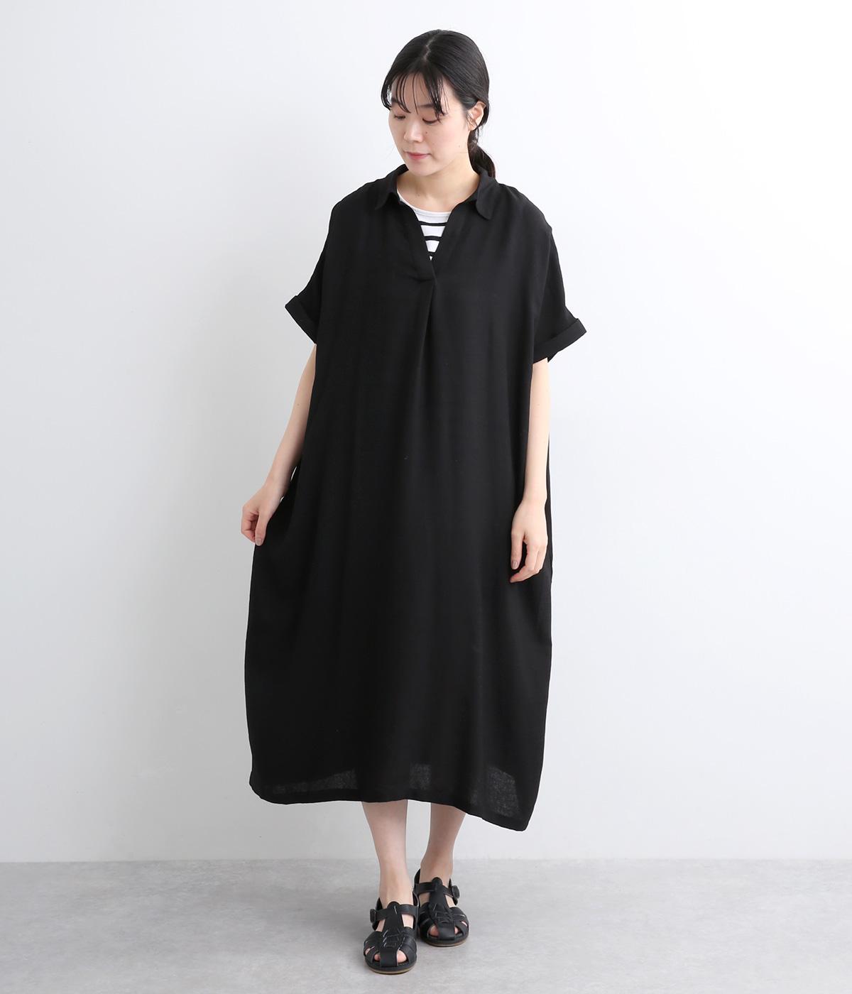コットンリネンバンドカラープルオーバーワンピースブラック