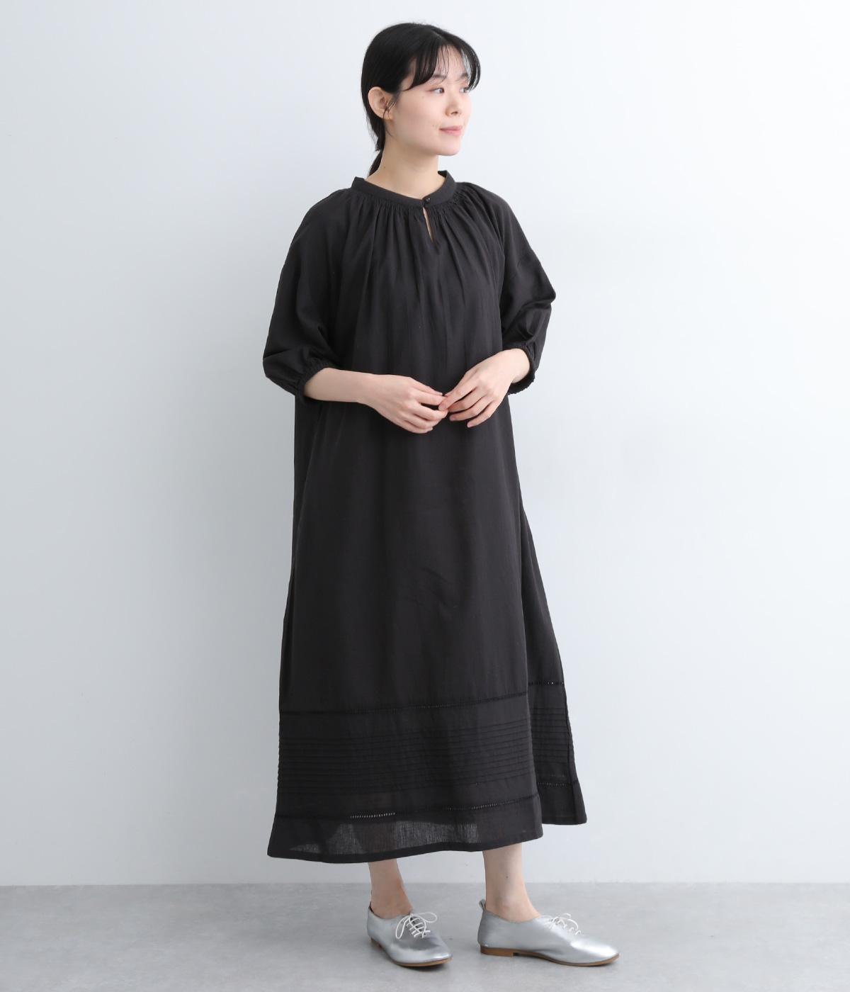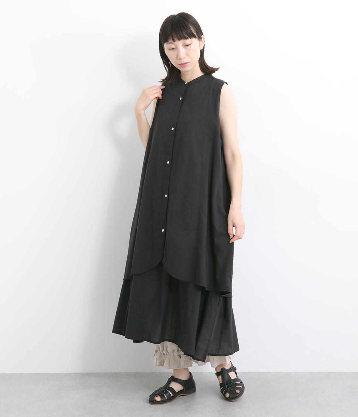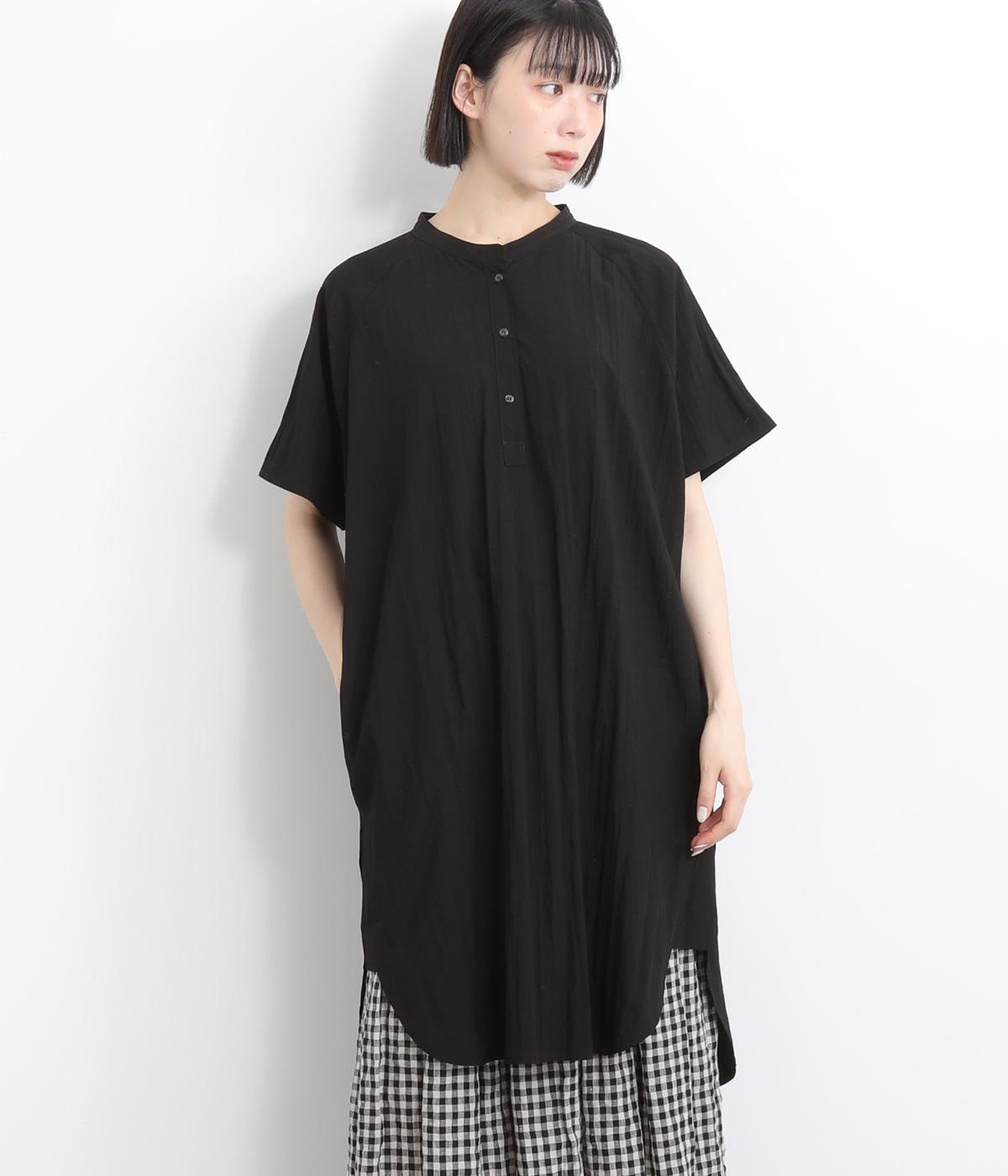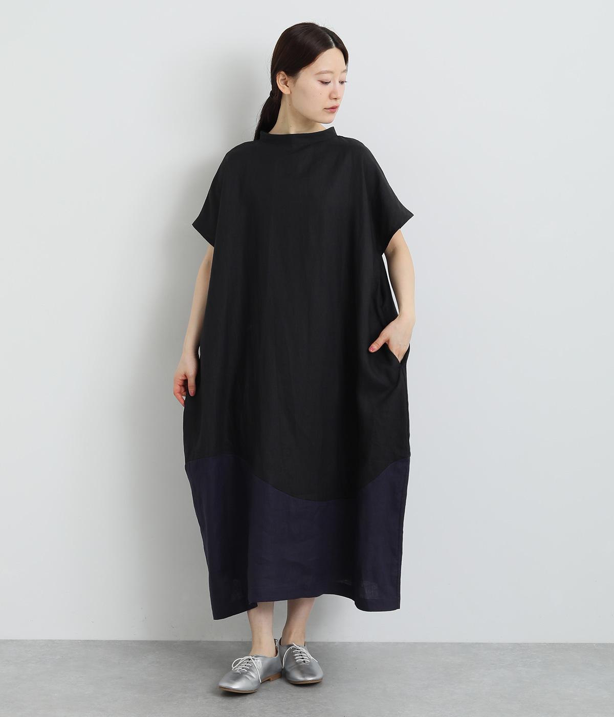 コットンリネンバンドカラープルオーバーワンピースブラック