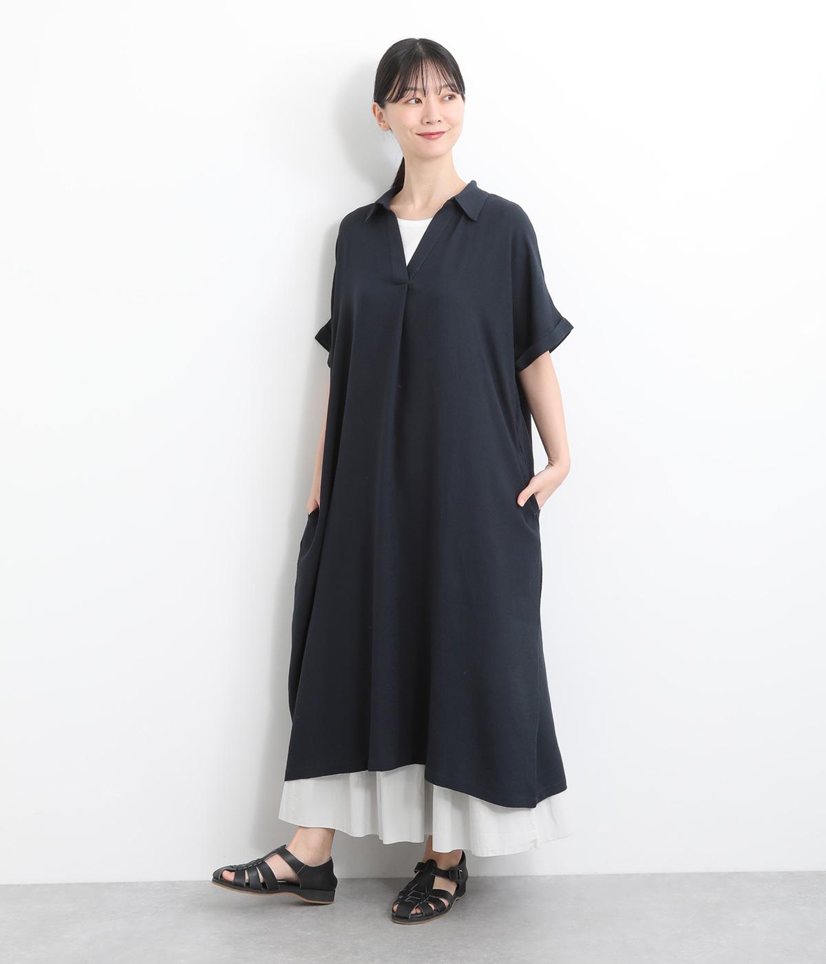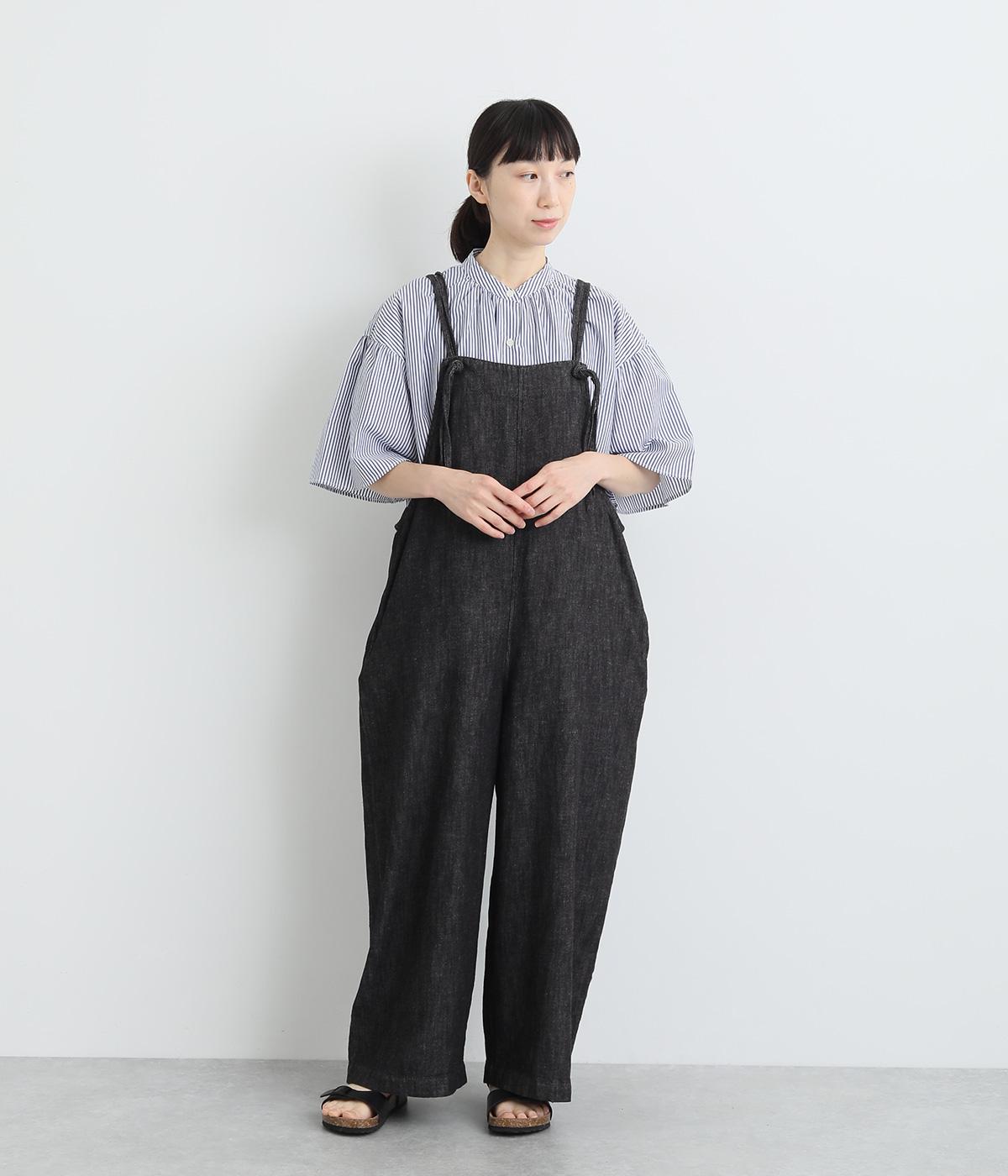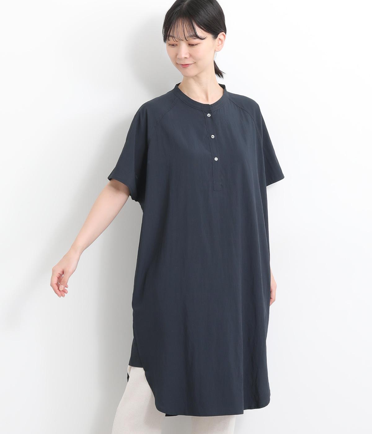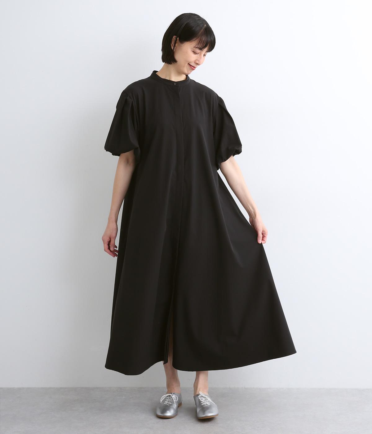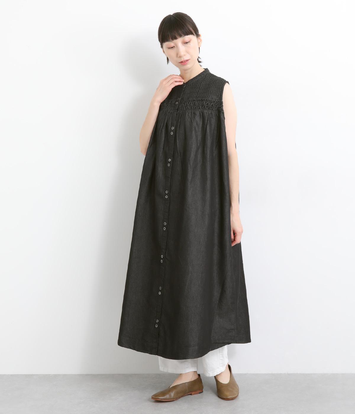コットンリネンバンドカラープルオーバーワンピースブラック