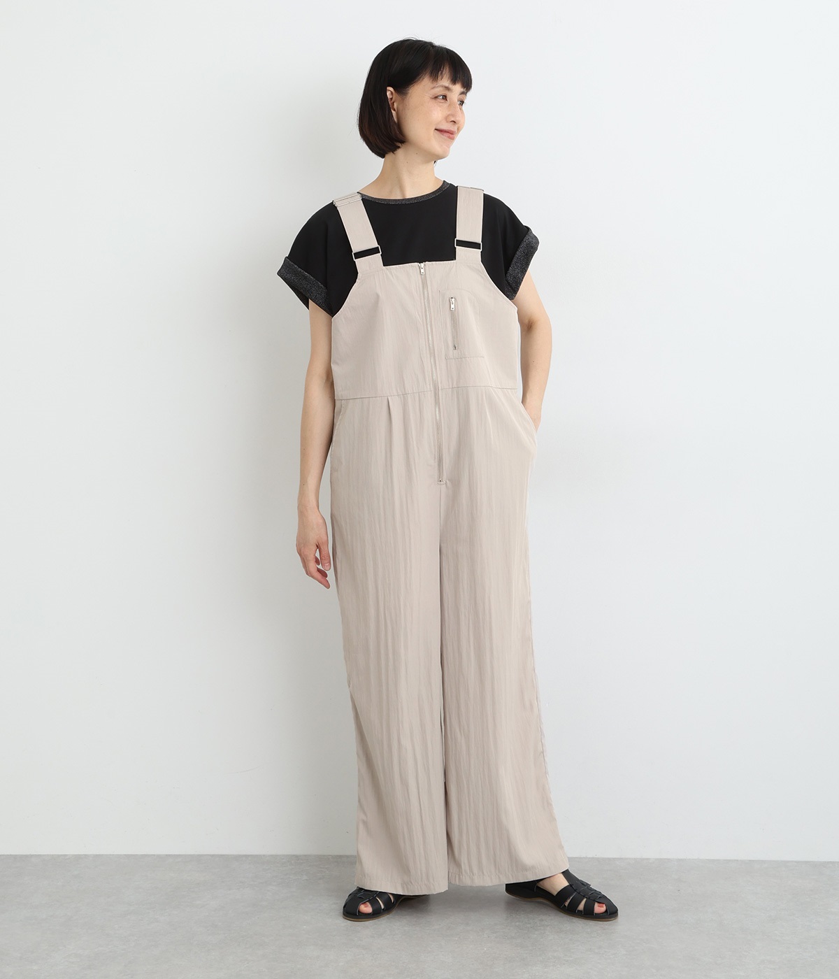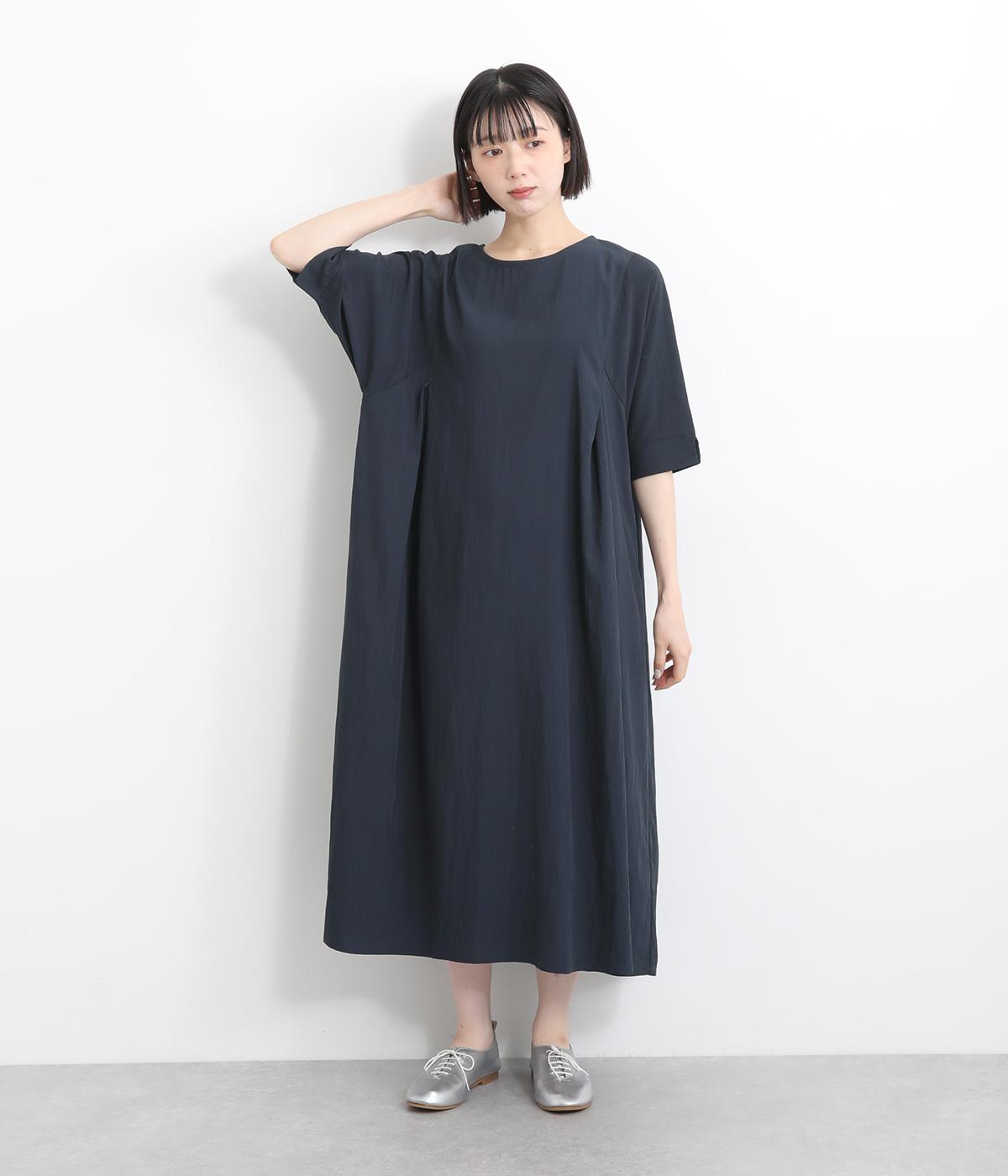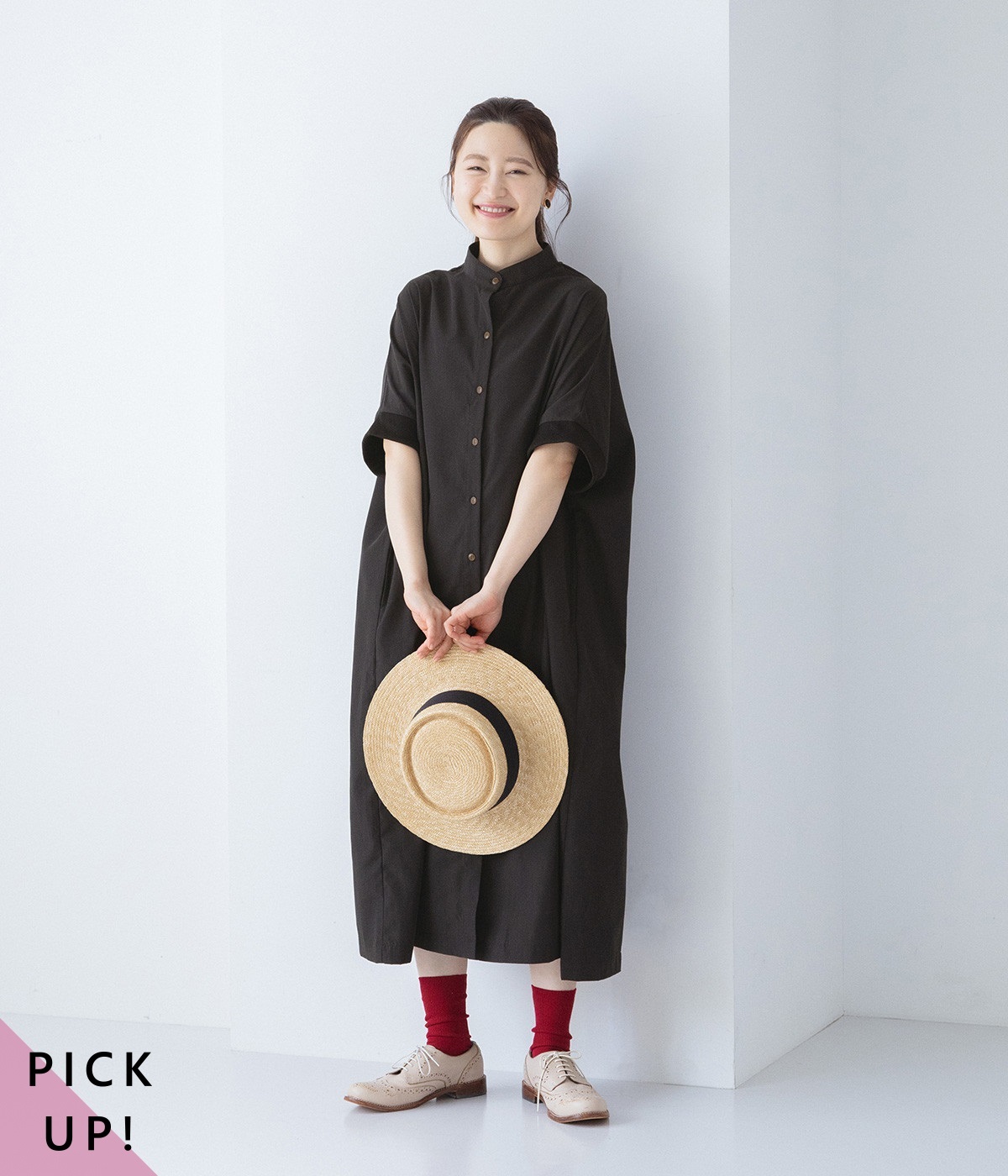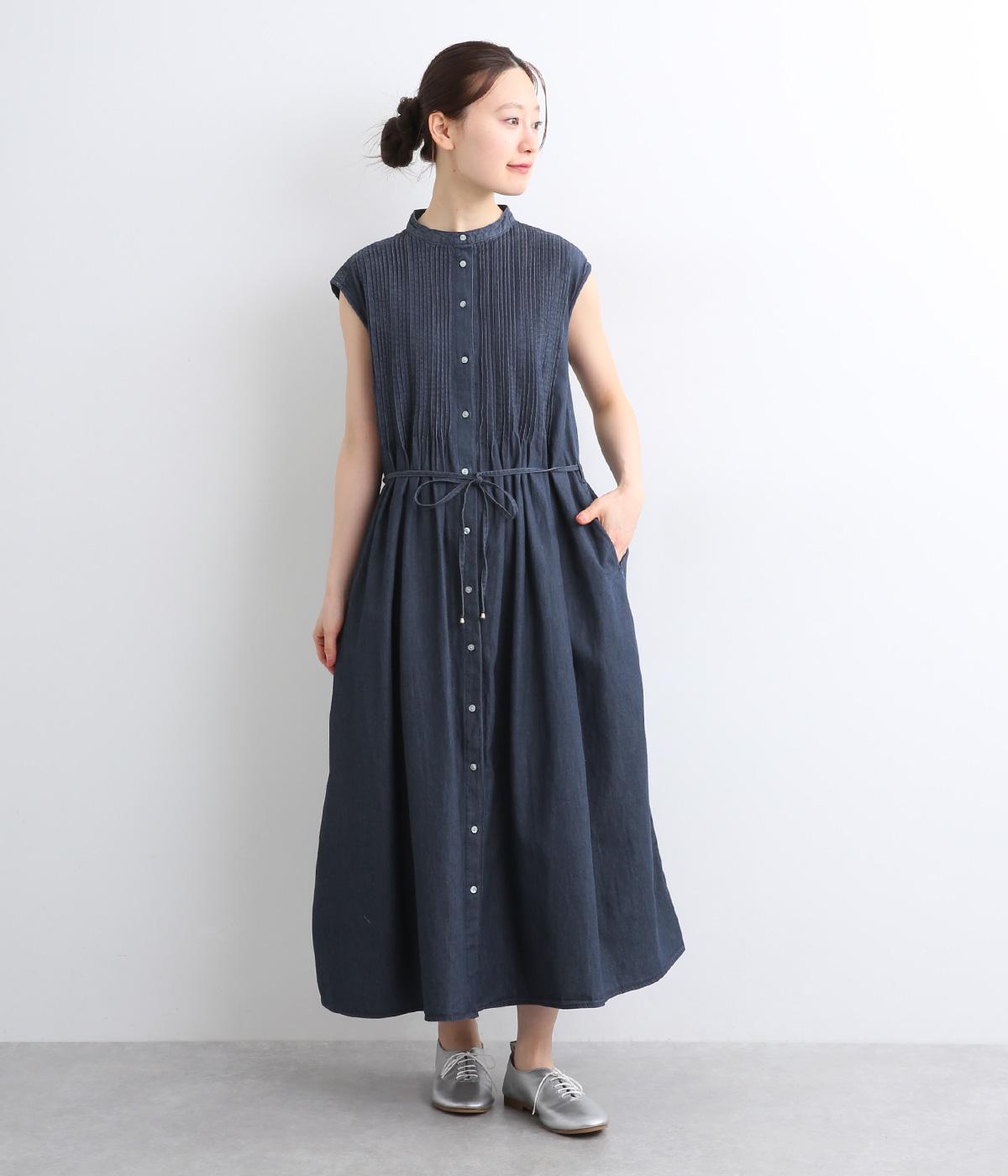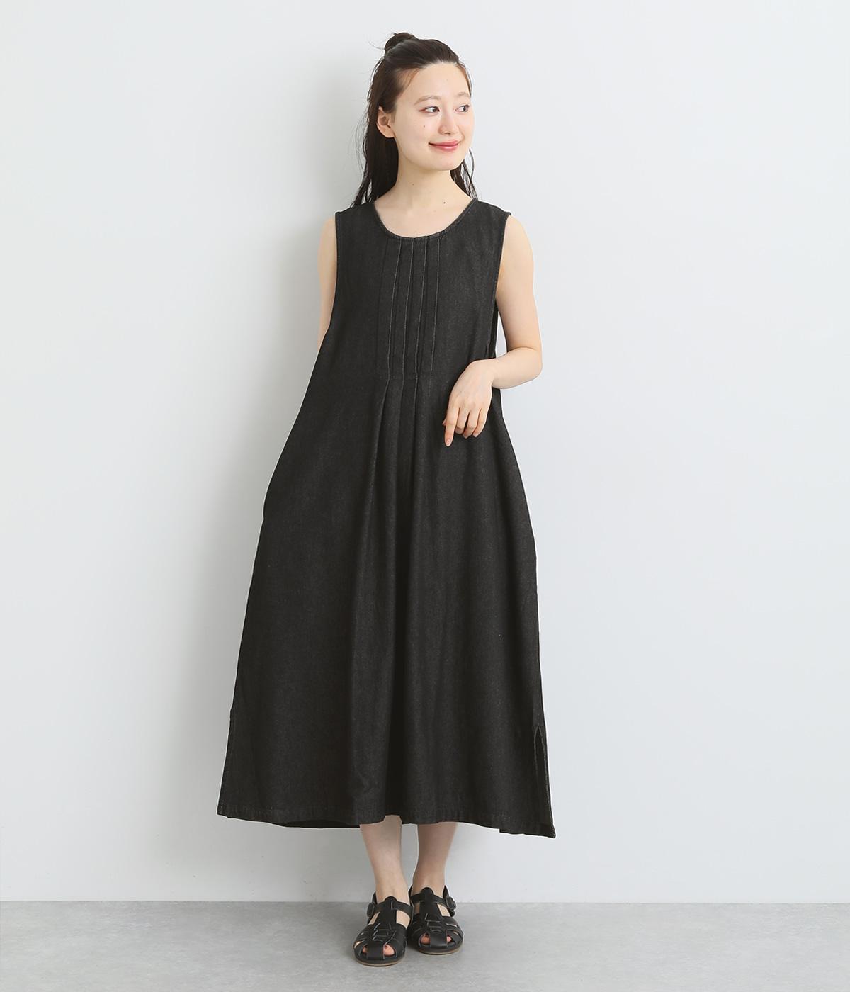 コットンリネンバンドカラープルオーバーワンピースブラック