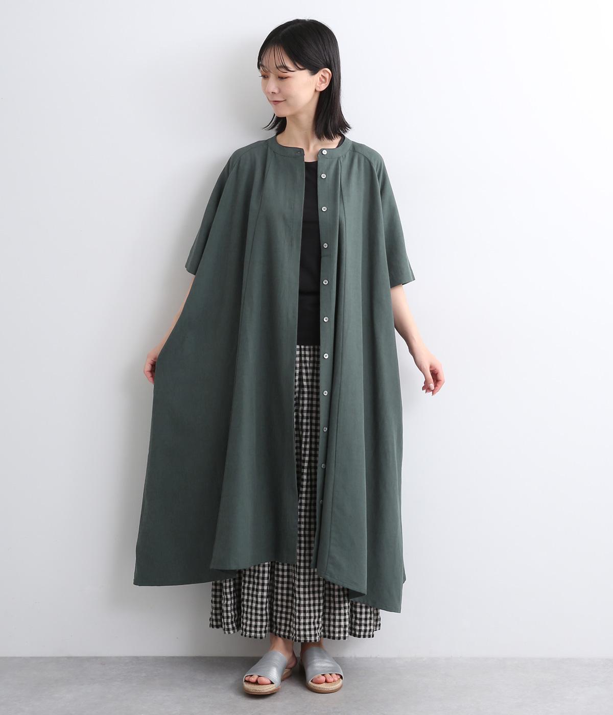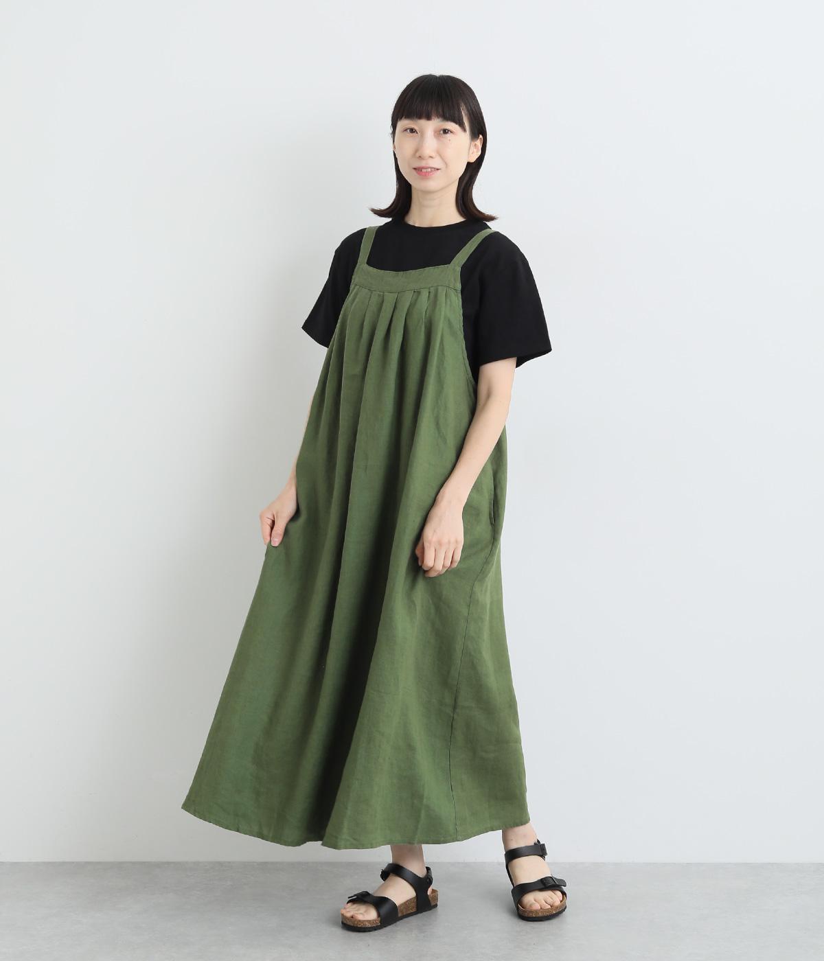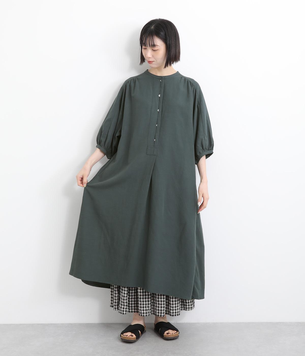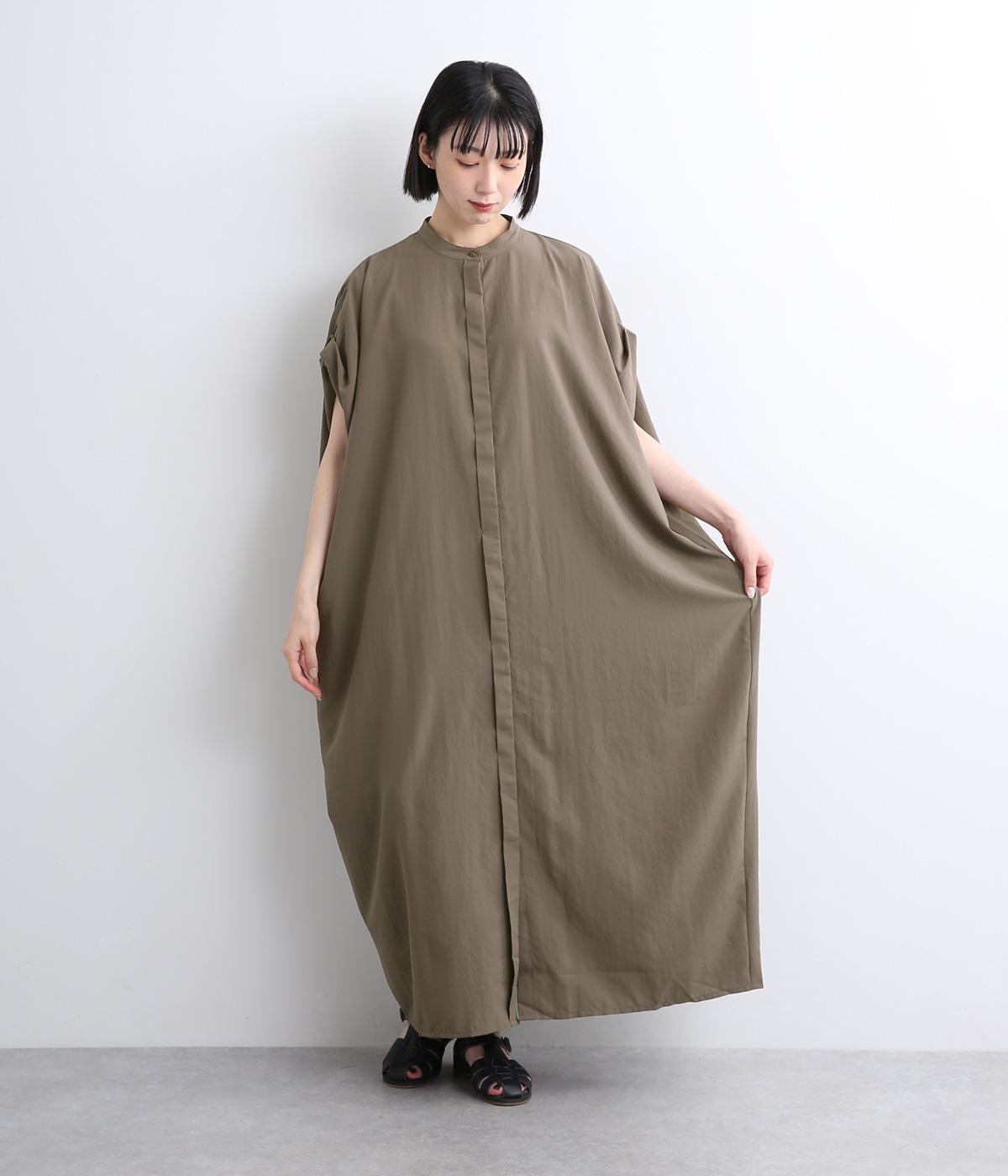 コットンリネンバンドカラープルオーバーワンピースカーキ