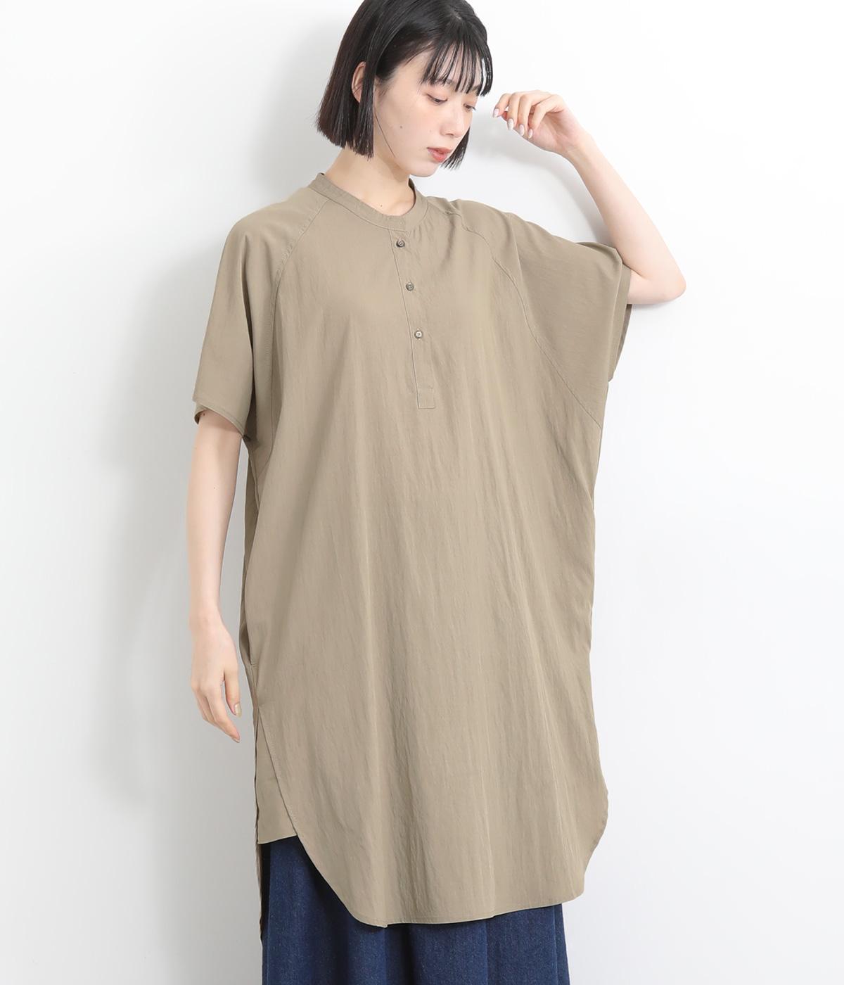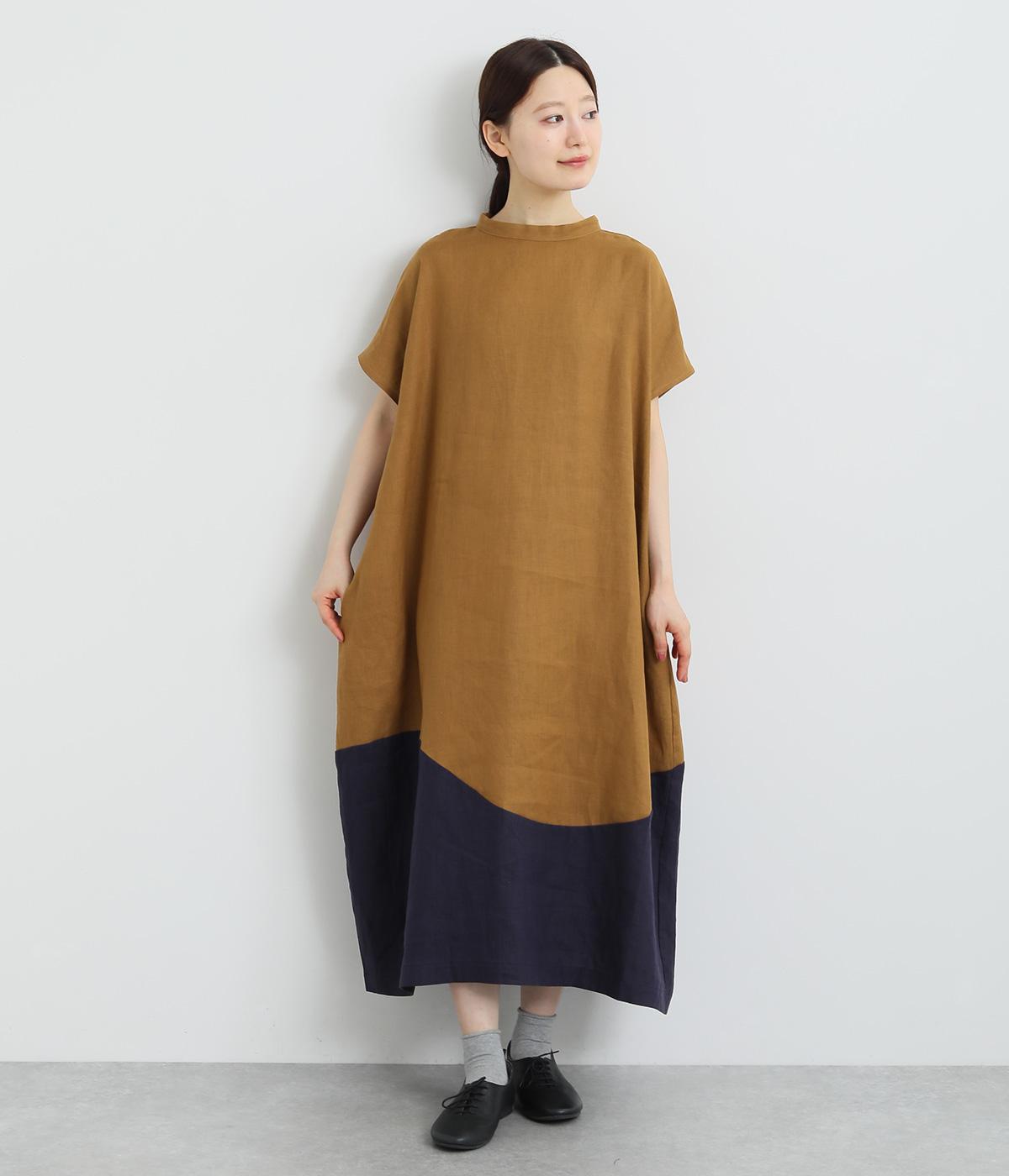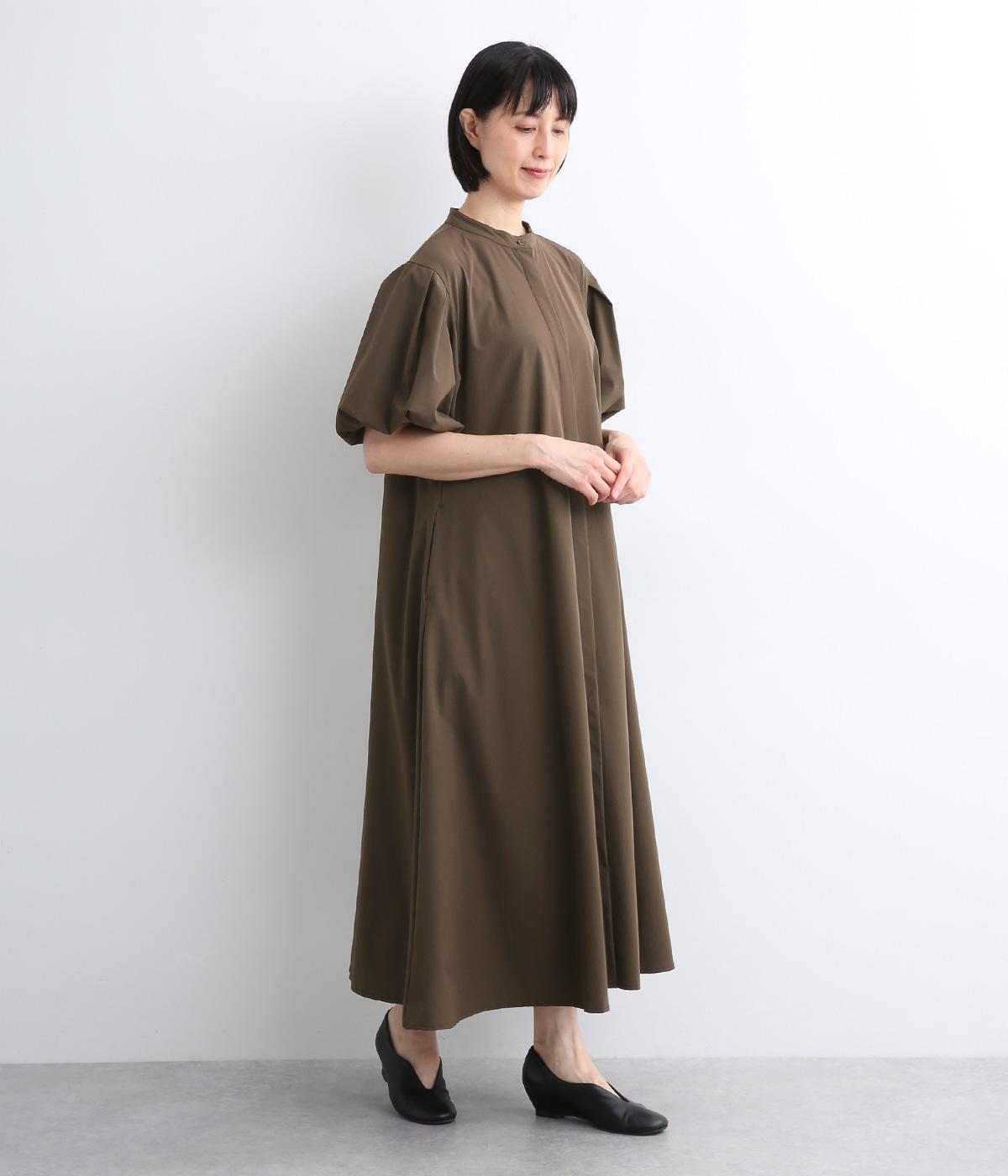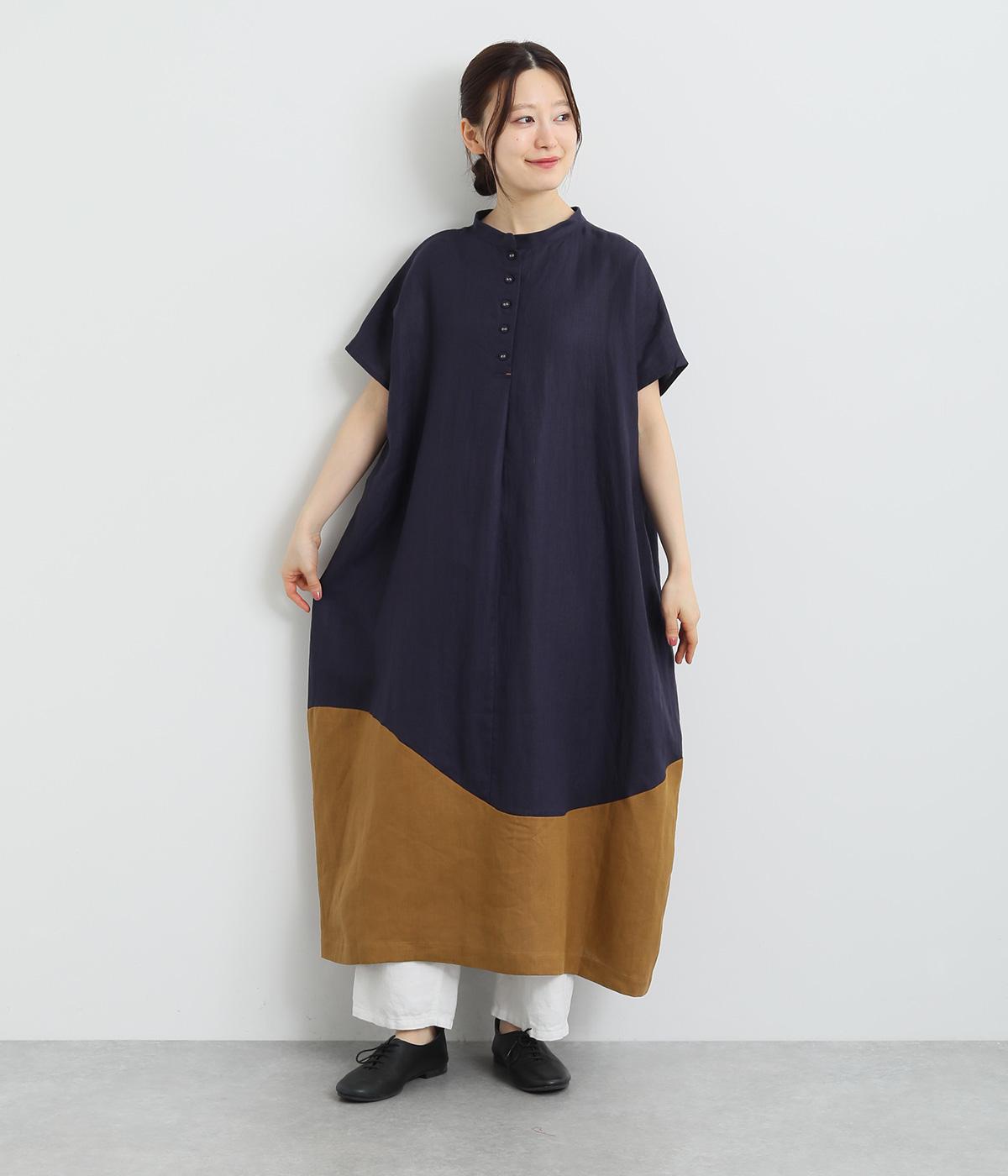コットンリネンバンドカラープルオーバーワンピースカーキ