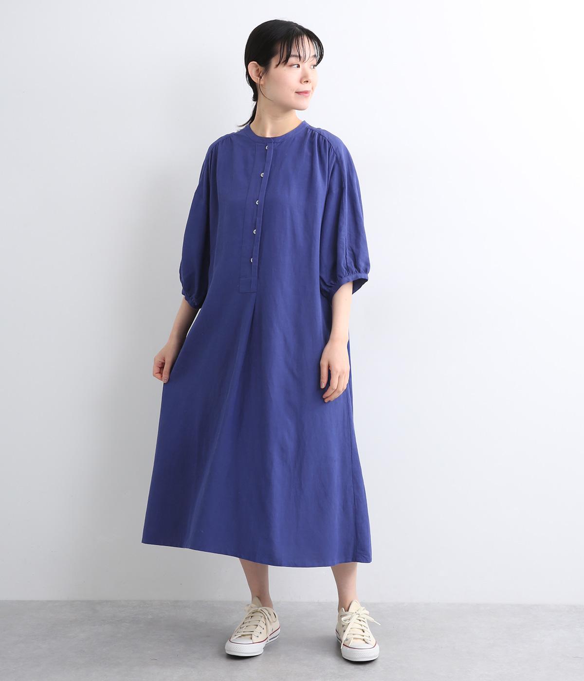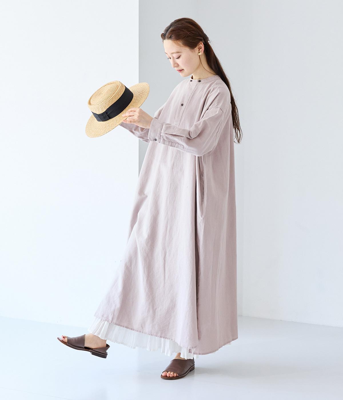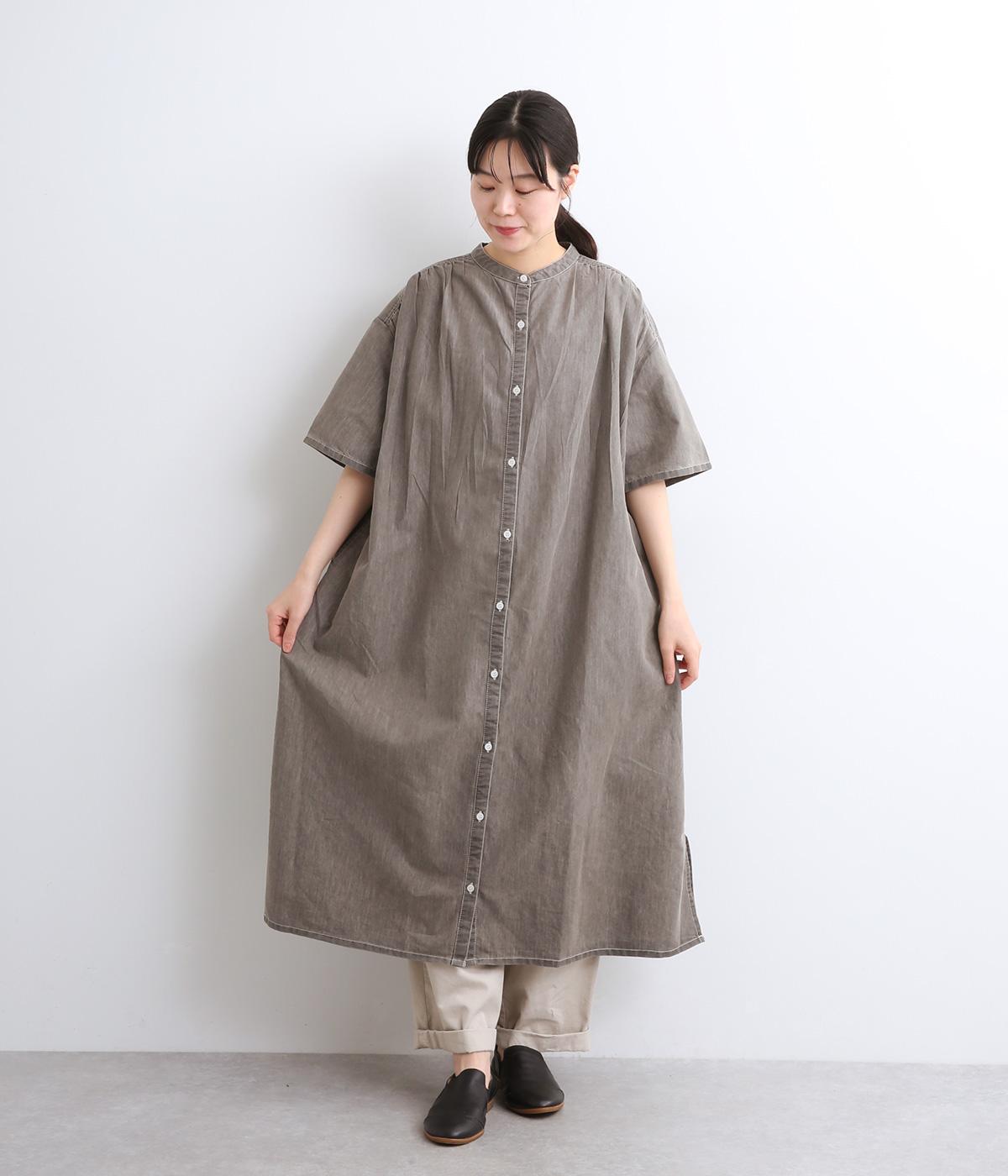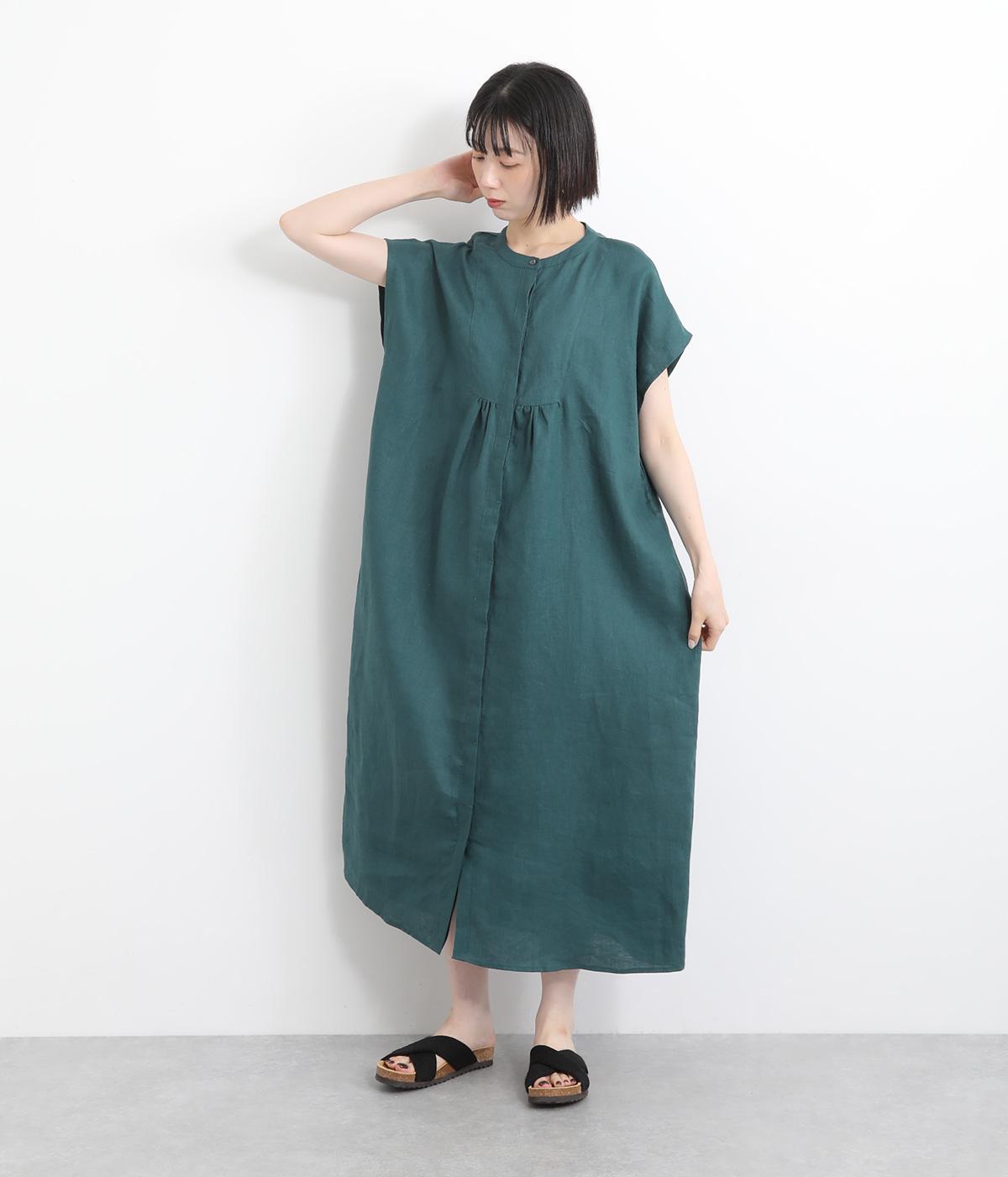 コットンリネンバンドカラープルオーバーワンピースカーキ