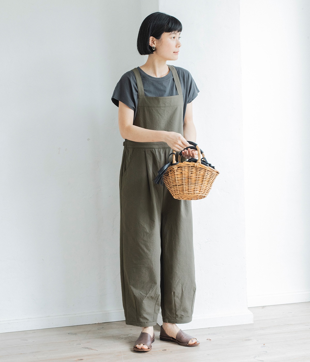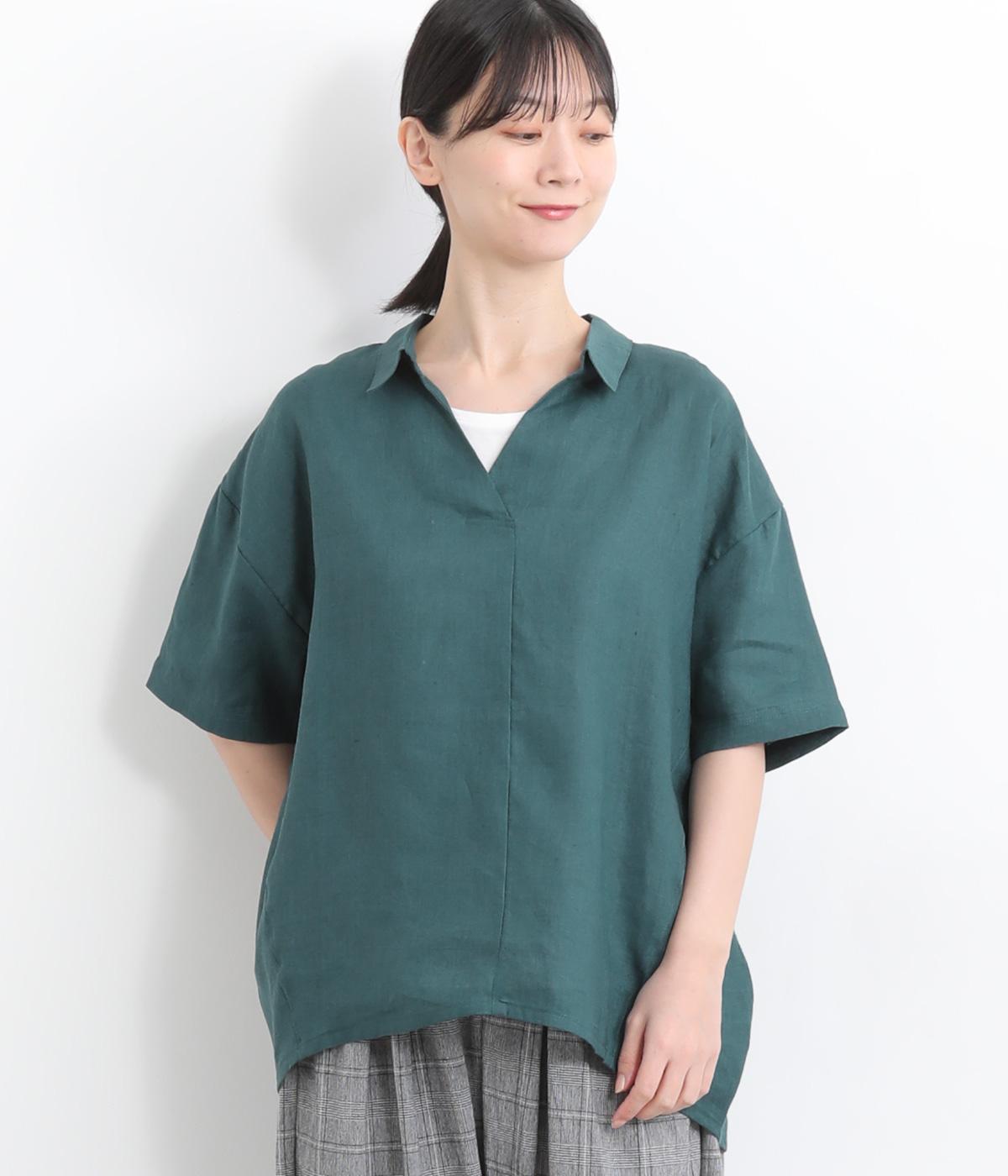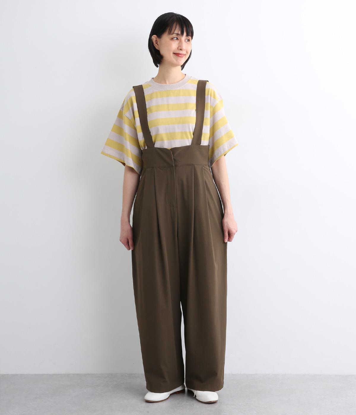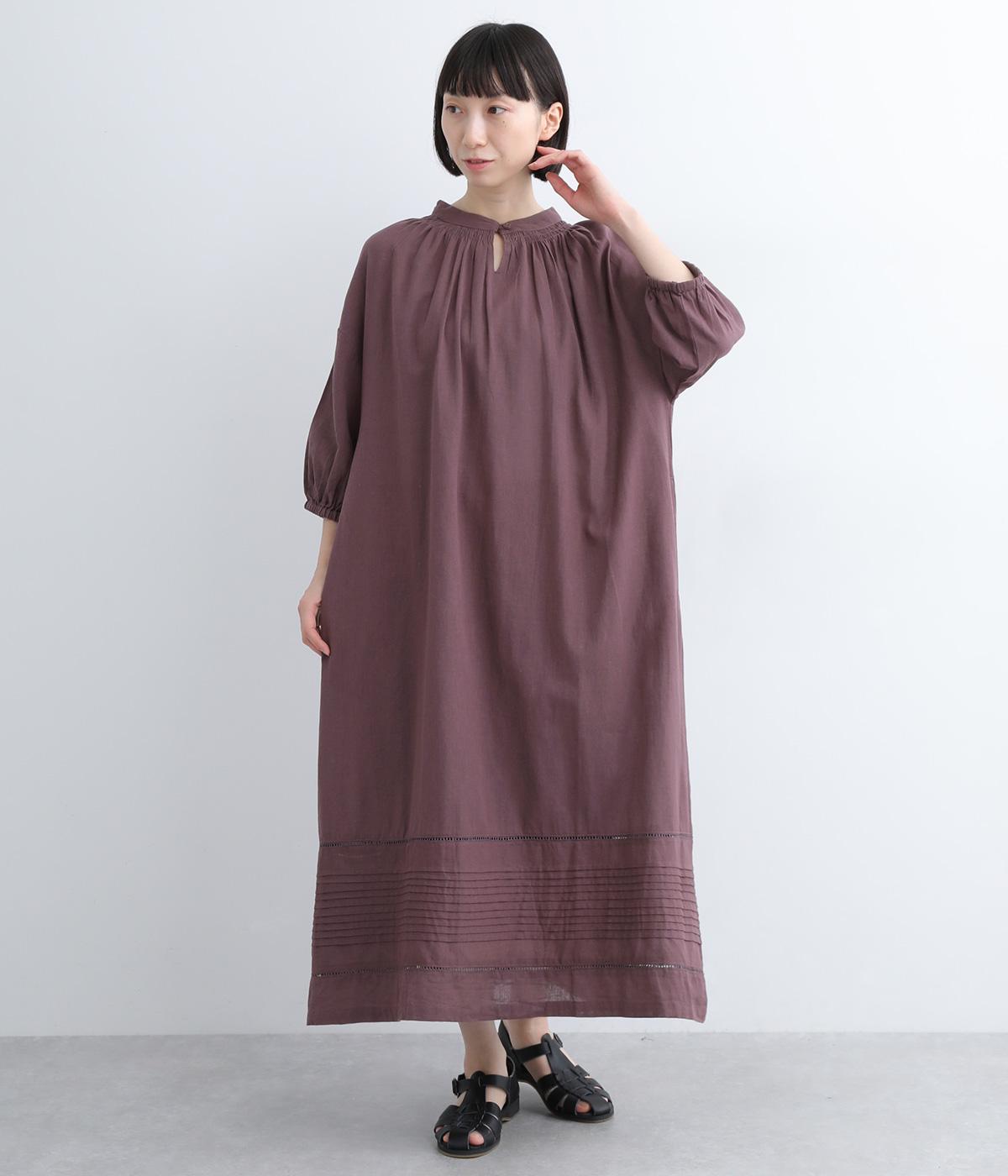 コットンリネンバンドカラープルオーバーワンピースカーキ
