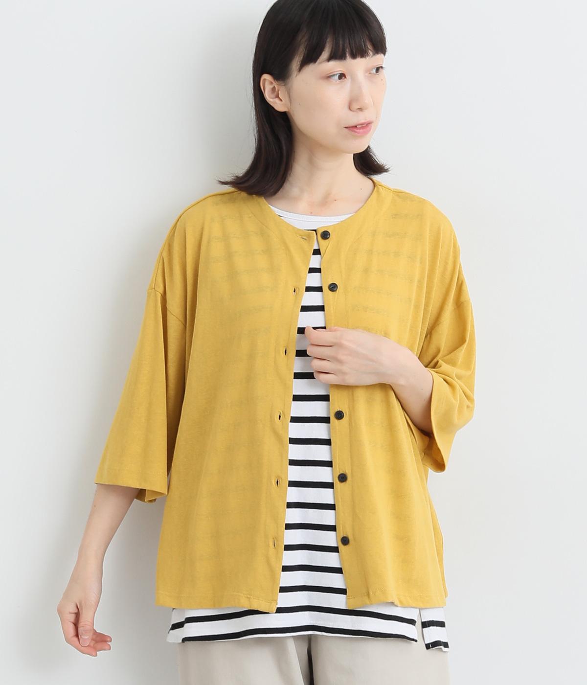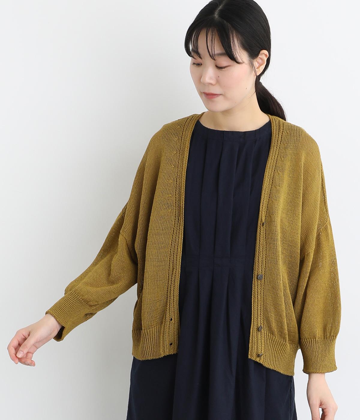 ウォッシャブル ウールミックススムースニットカーディガンイエロー