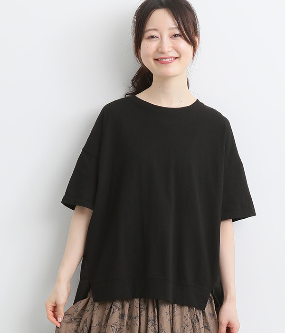 ツリウラケワイドタートルプルオーバーブラック