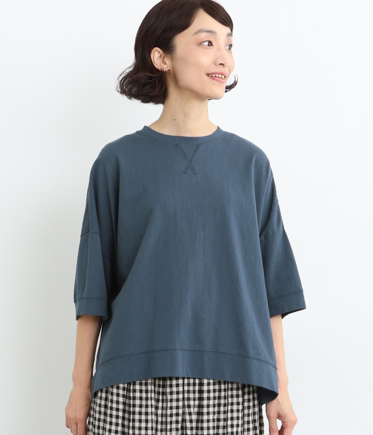 ピグメント裏毛シャーリングロゴプルオーバーネイビー
