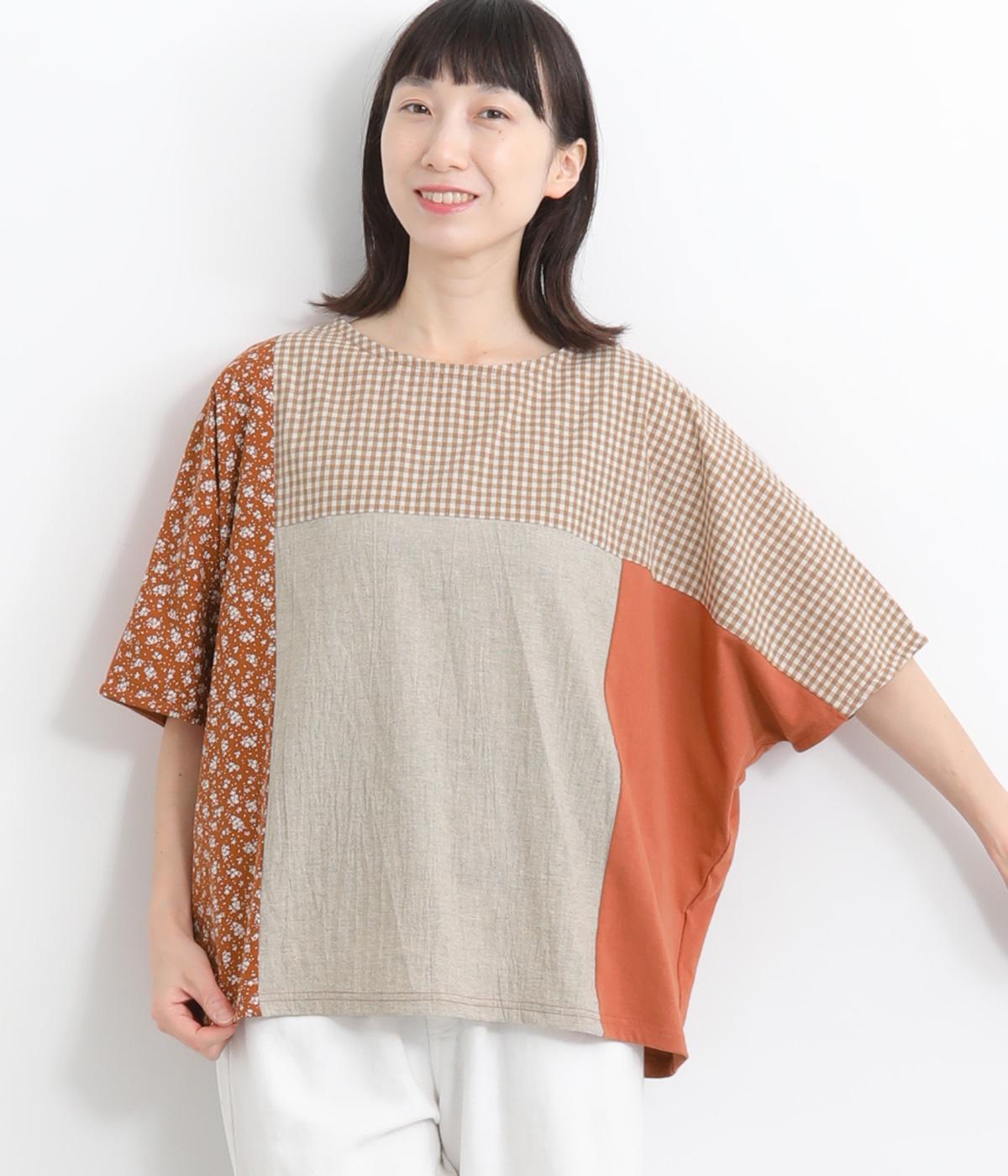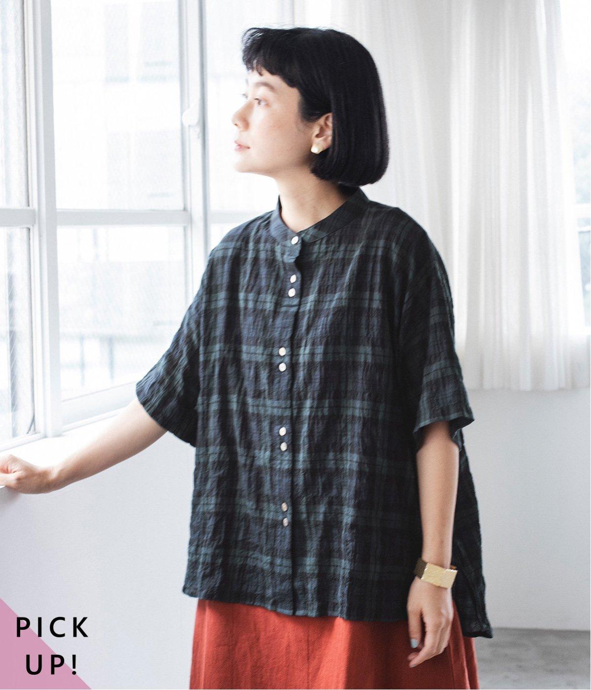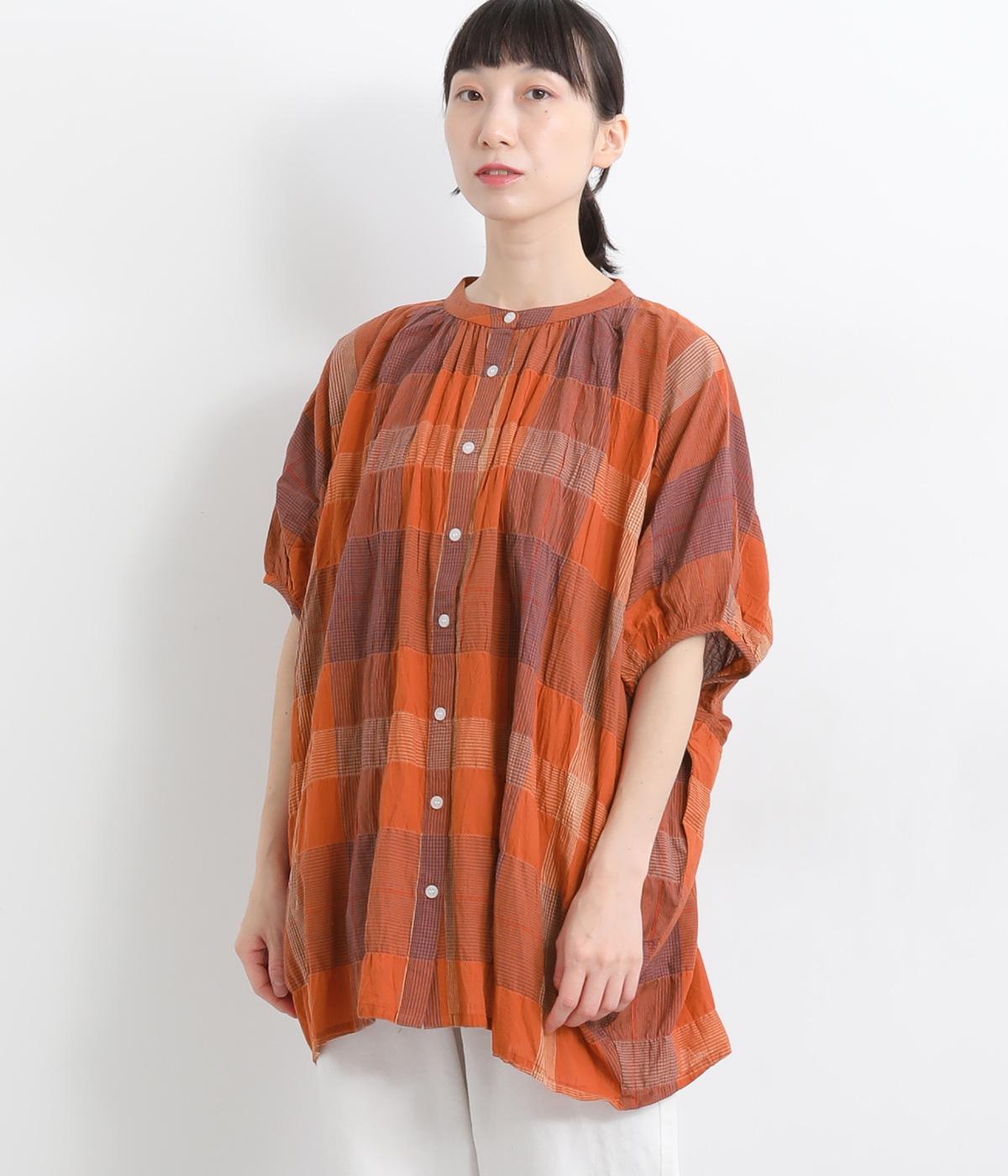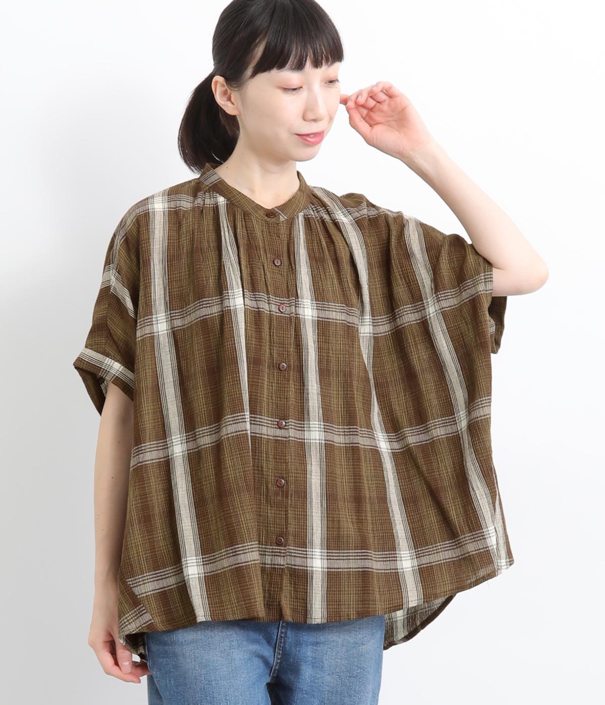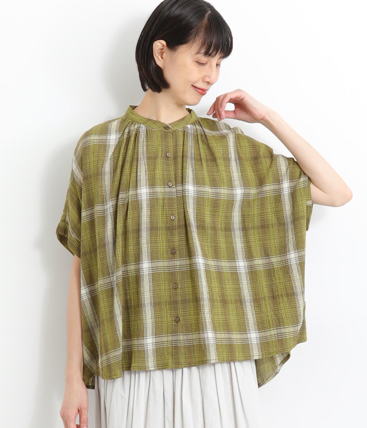 コットンリネンチェックAラインシャツチドリ