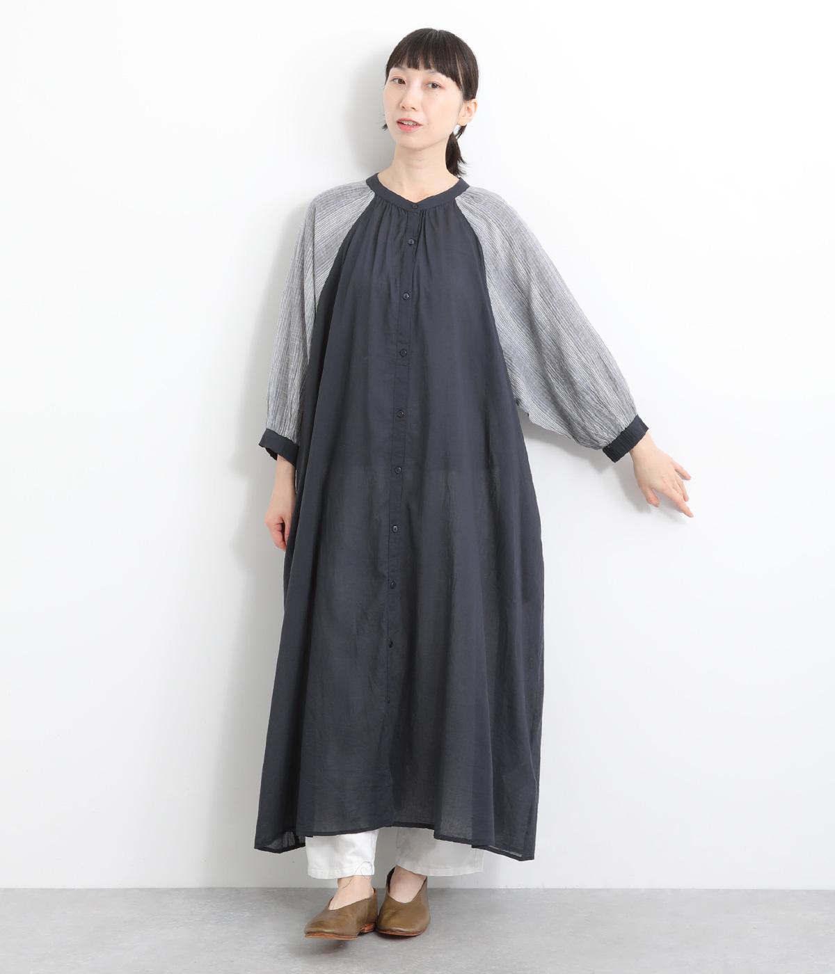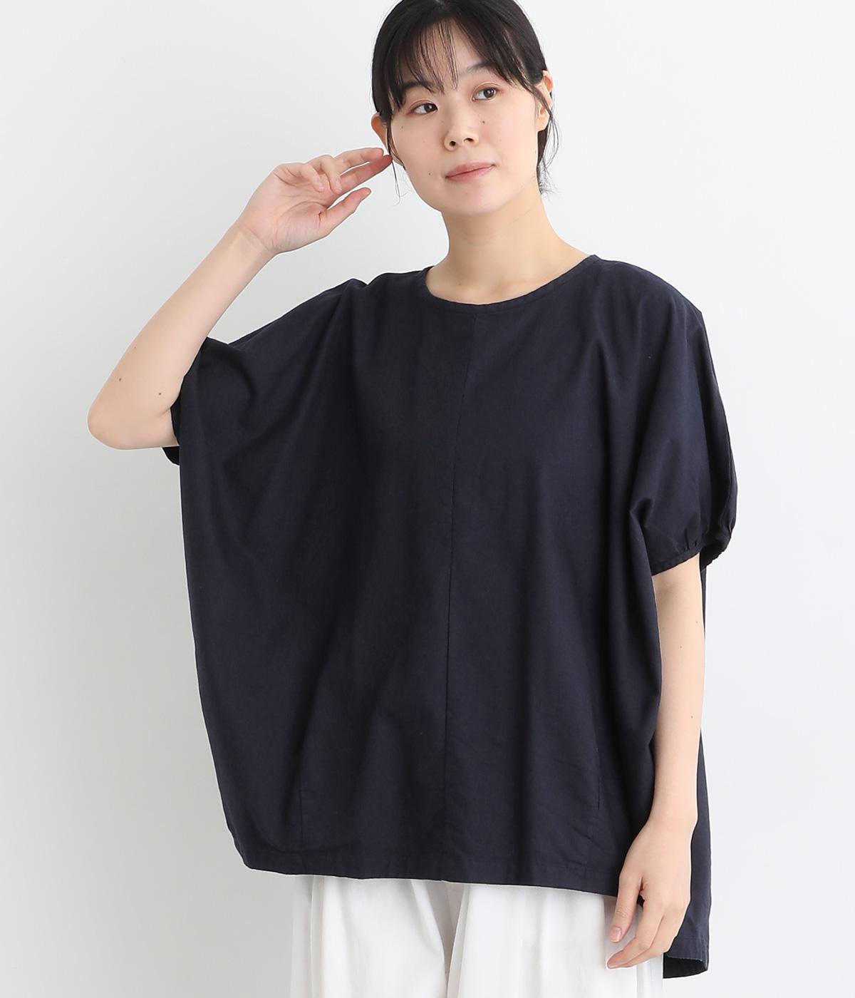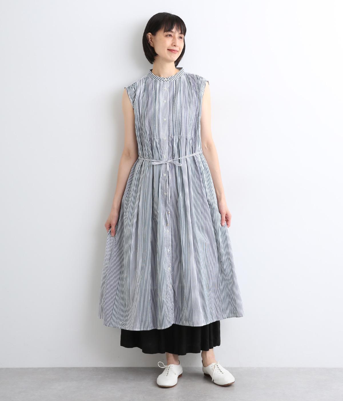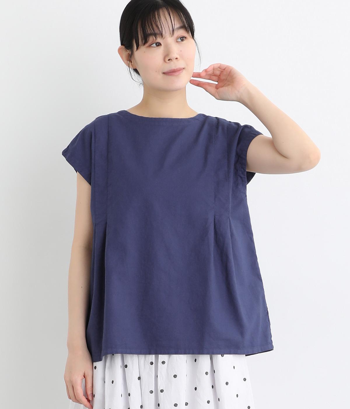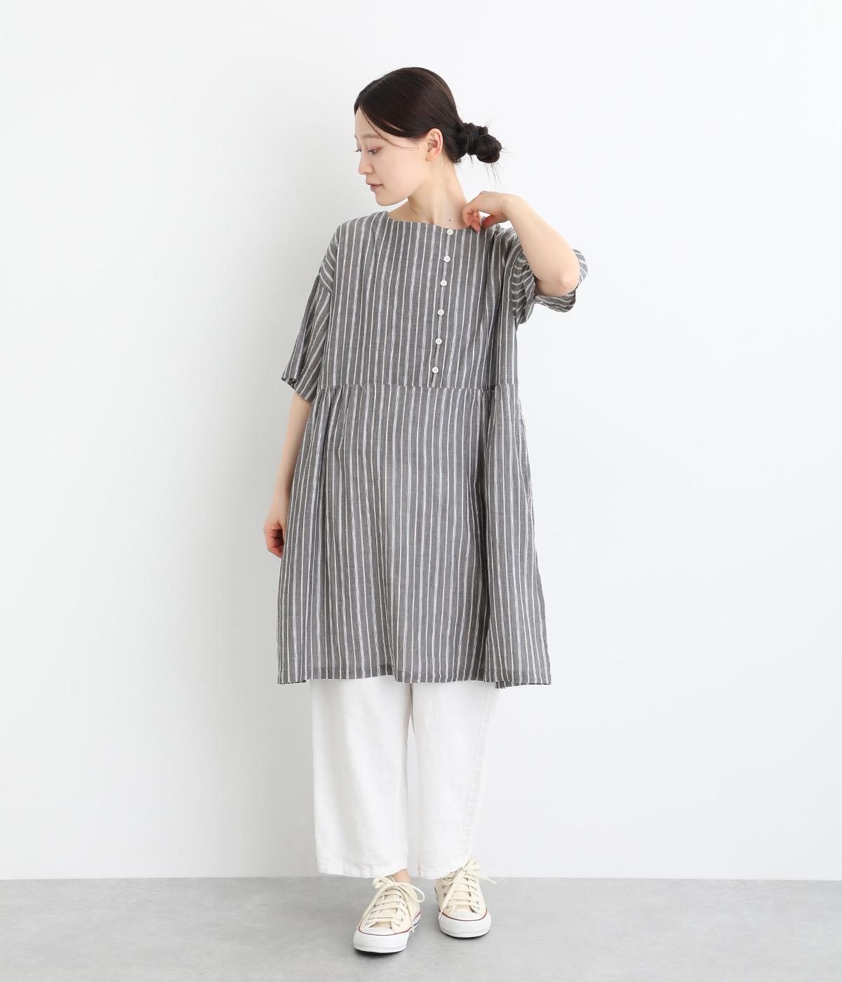 コットンワッシャーストライプクレリックブラウスネイビー