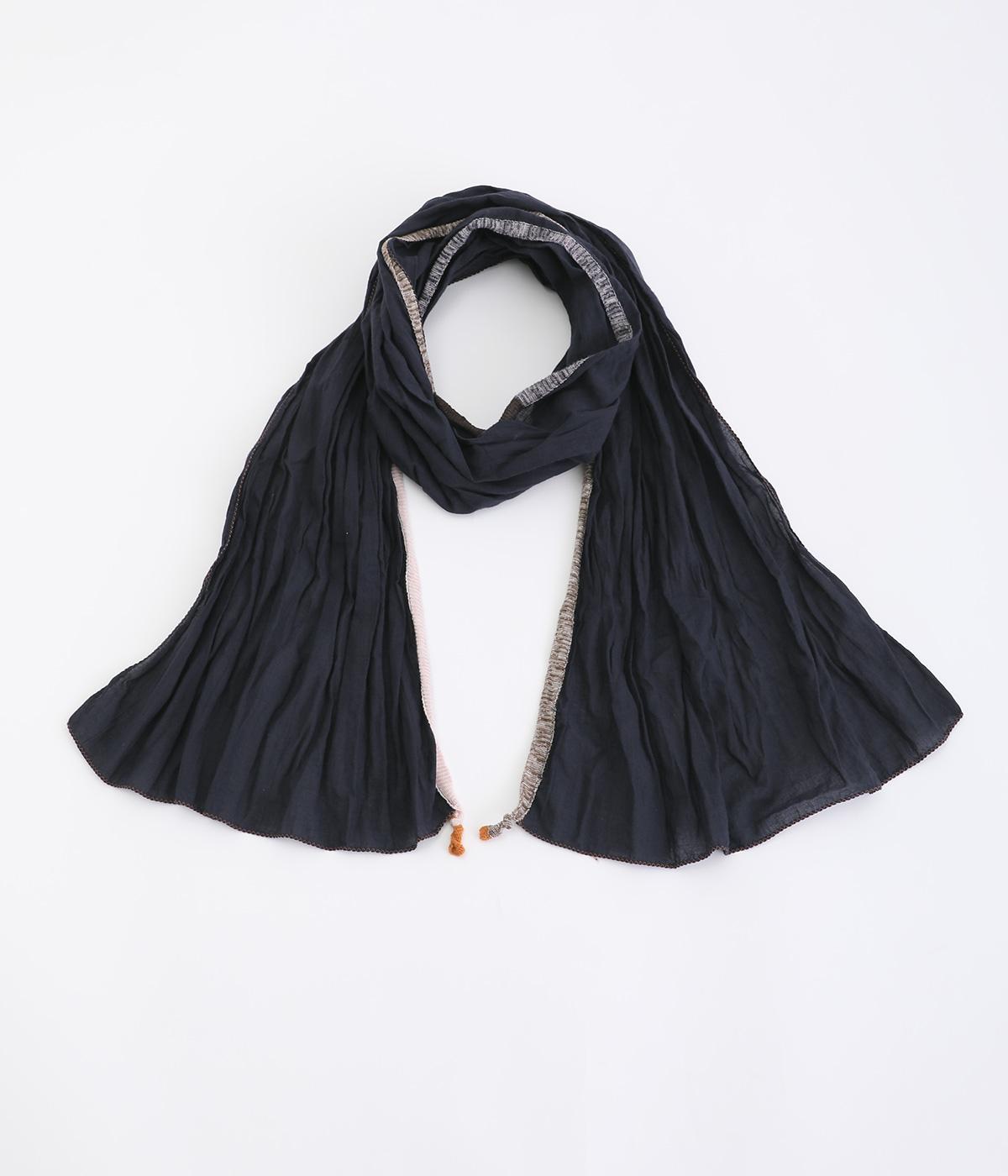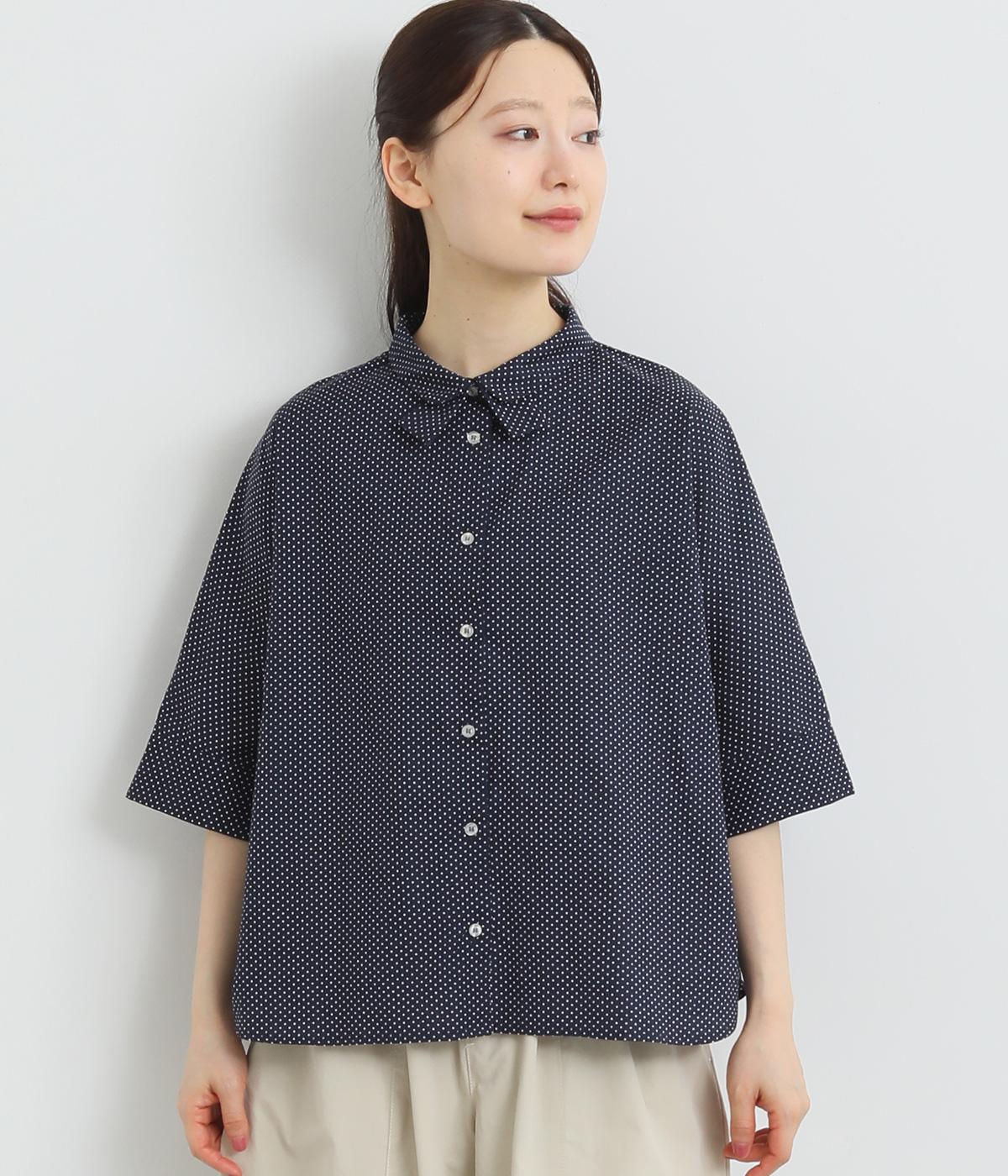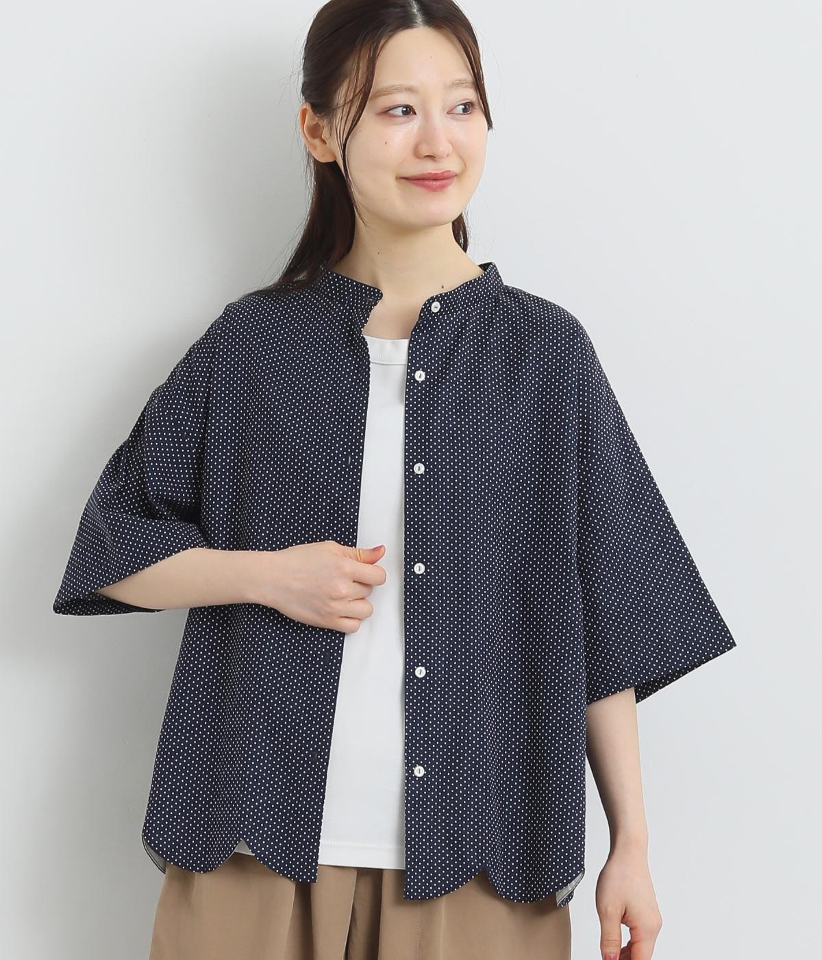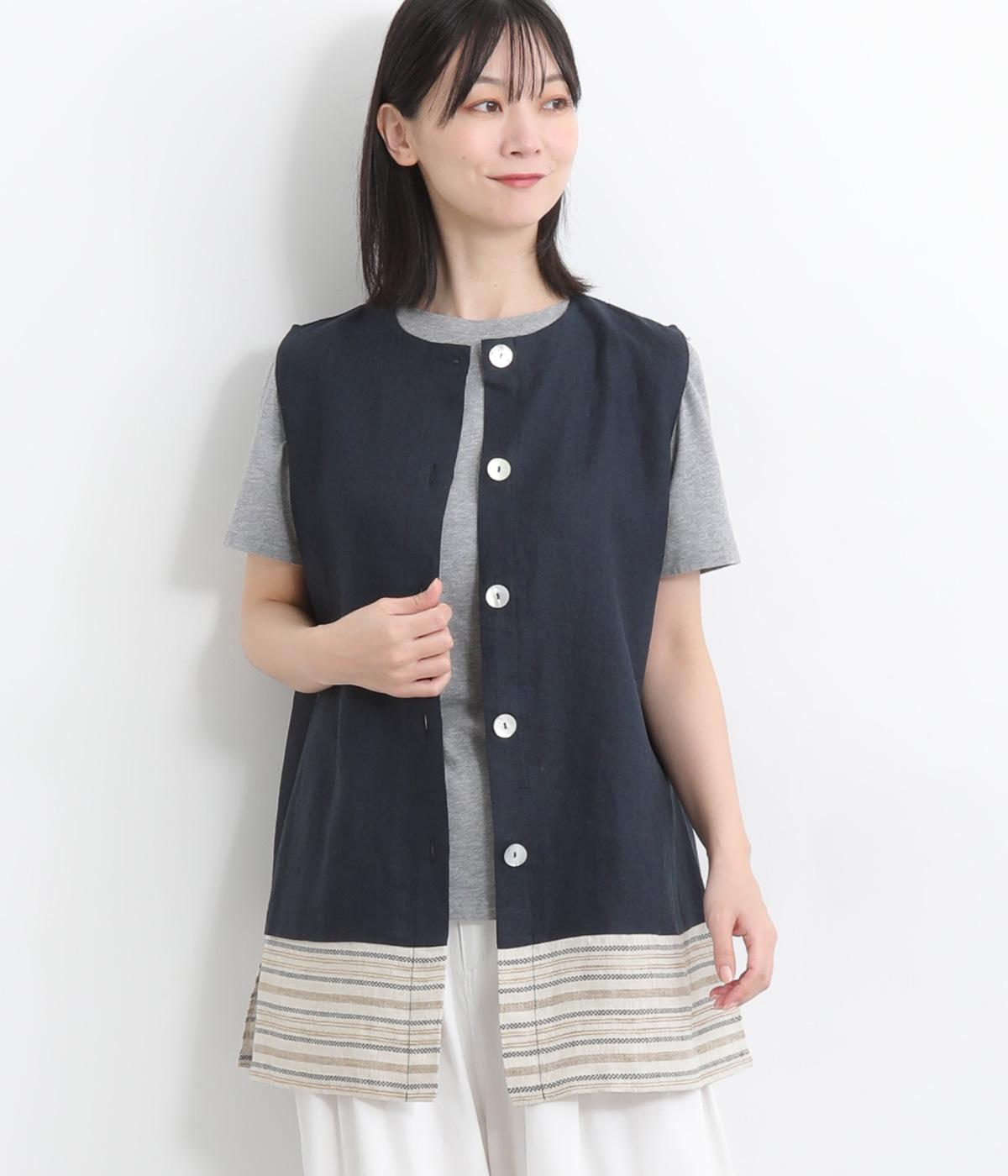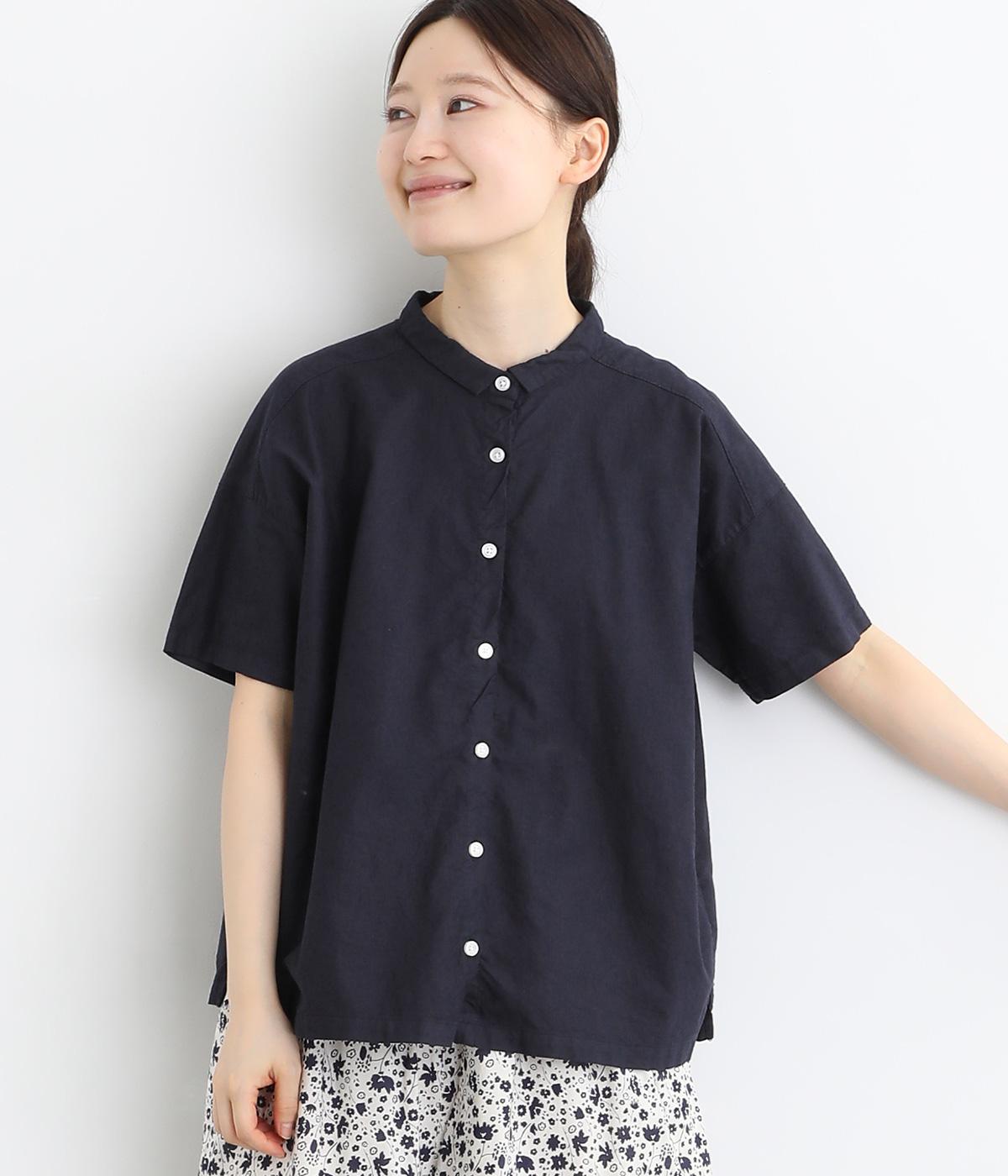 コットンワッシャーストライプクレリックブラウスネイビー