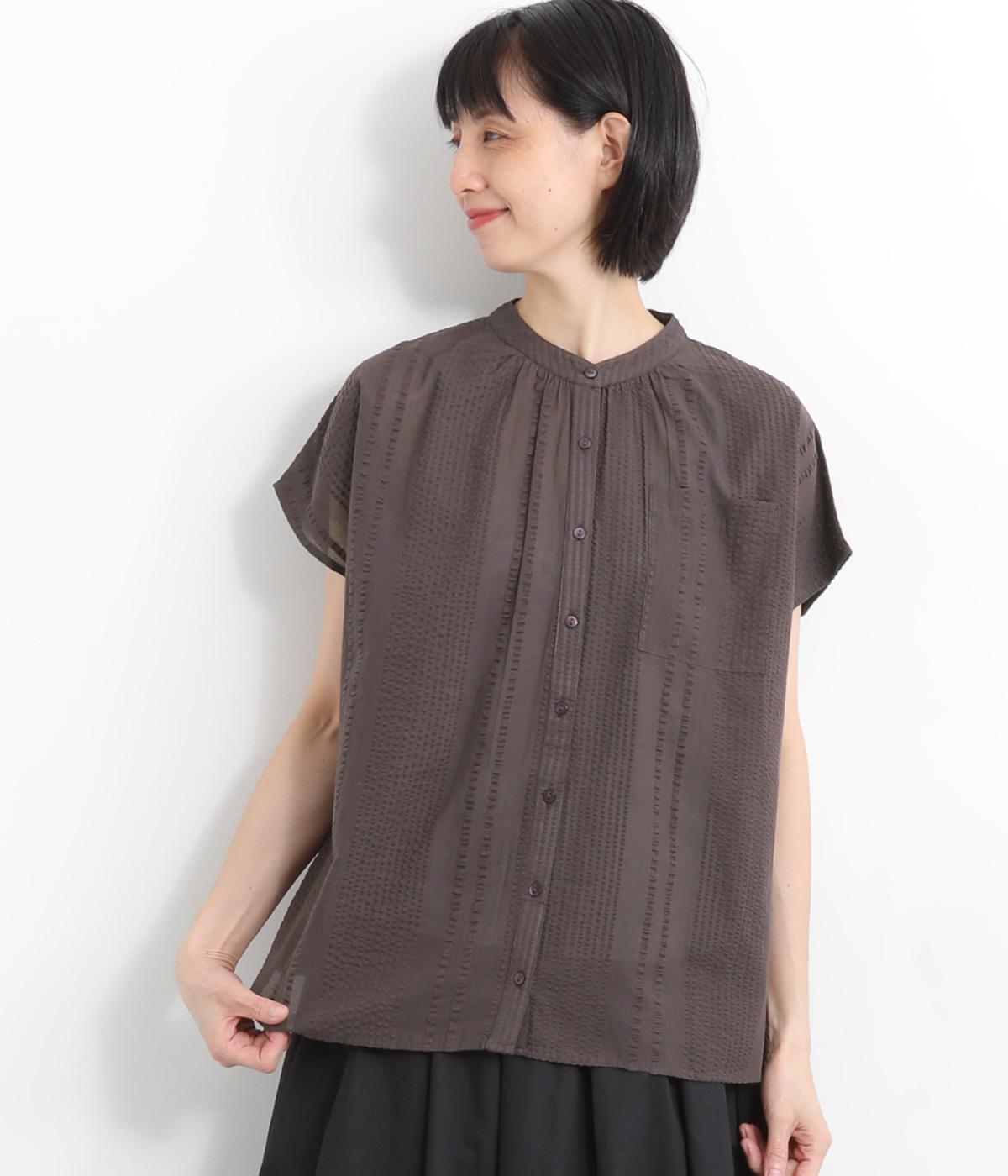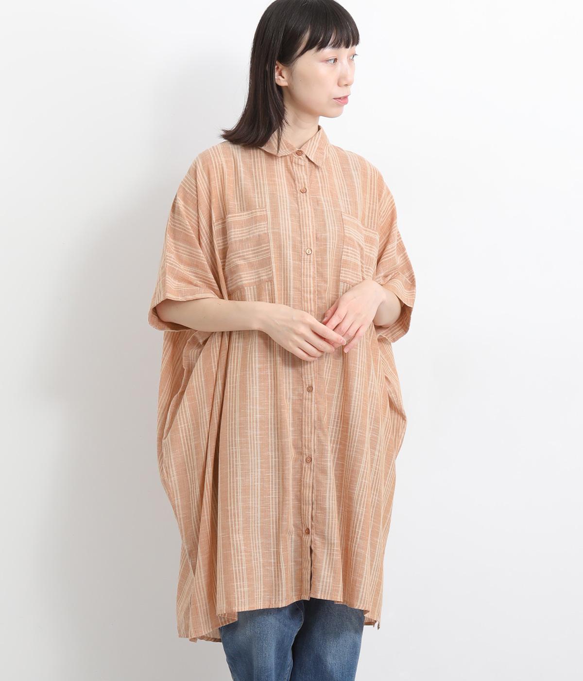 ネルストライプ シャツブラウン