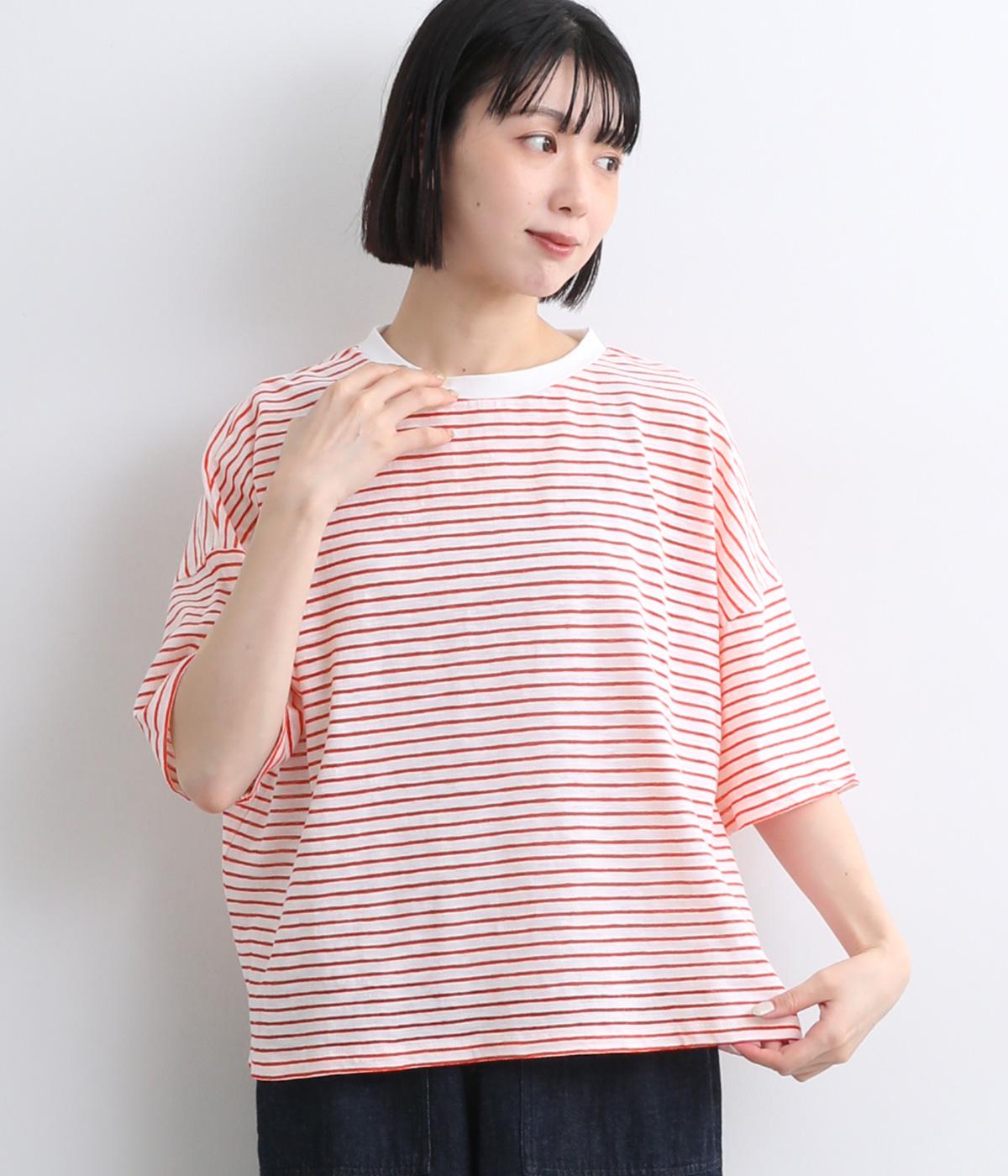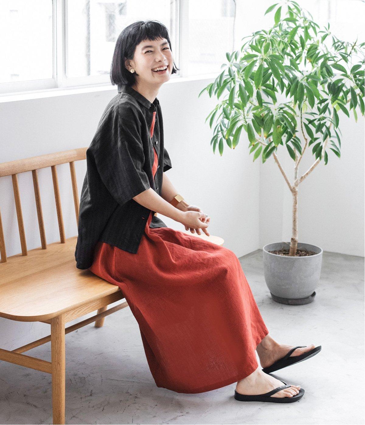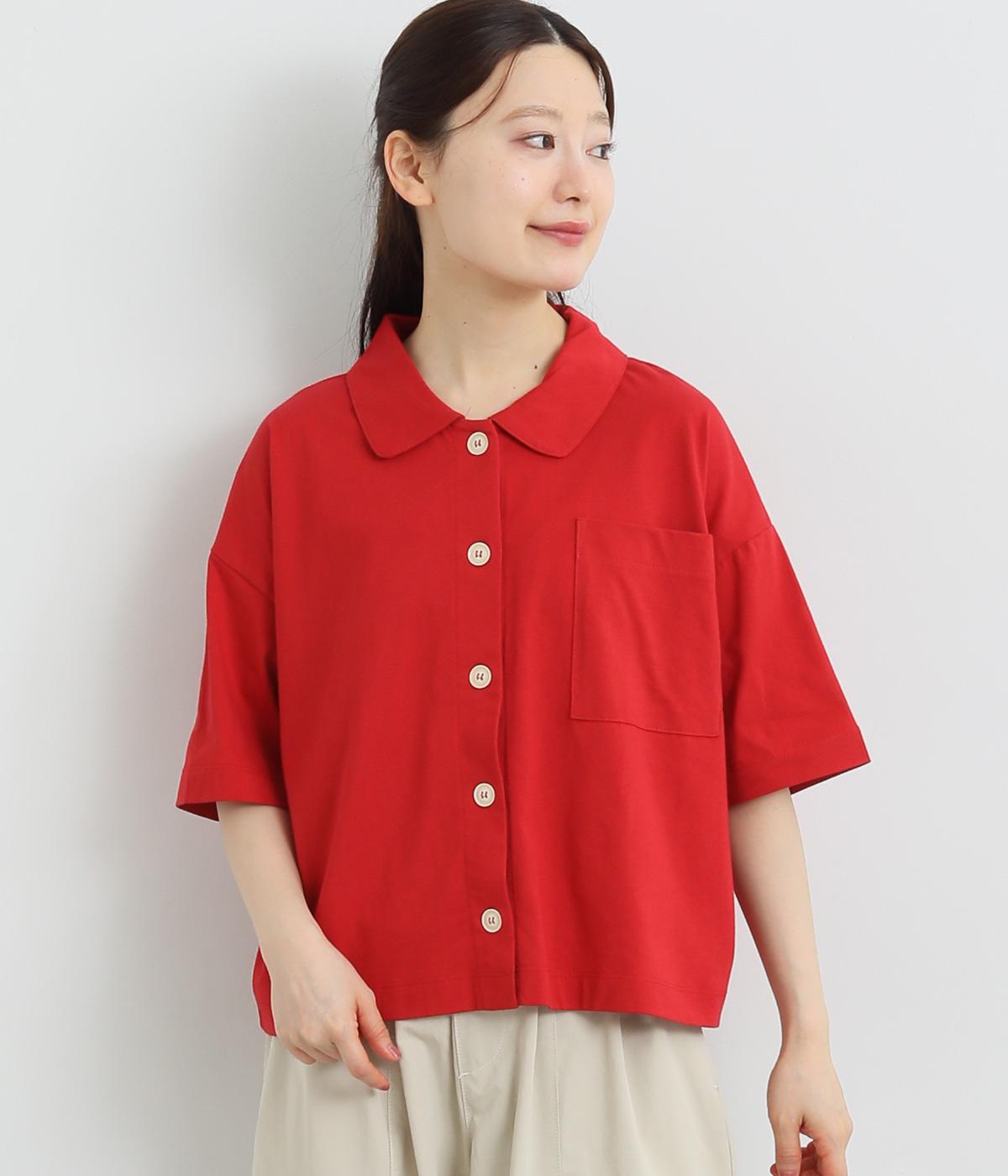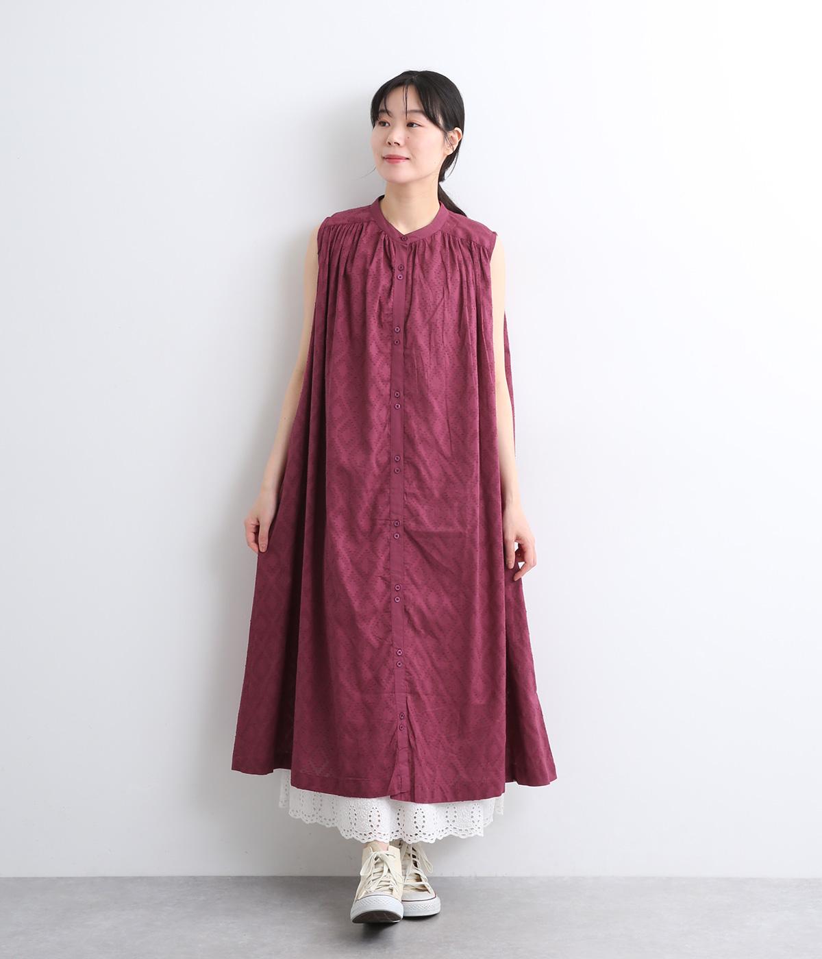 コットンリネンバンドカラープルオーバーワンピースレッド