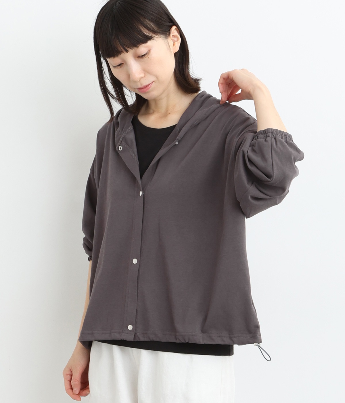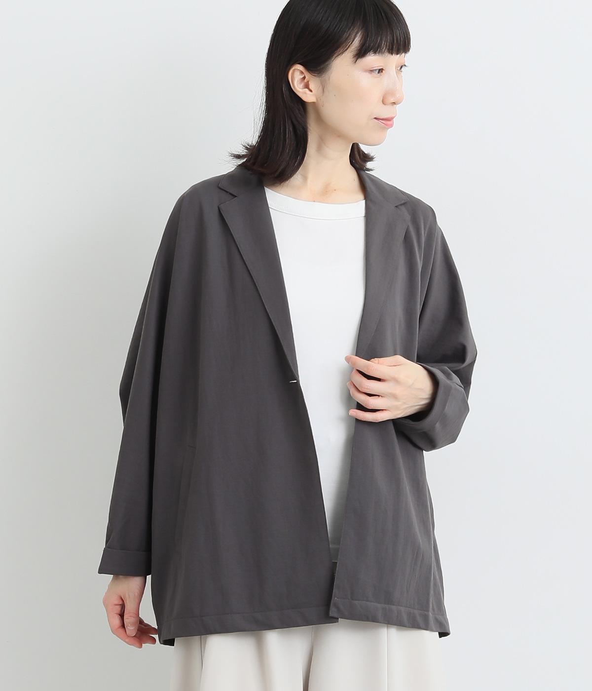 コットンツイルノーカラーコートチャコール