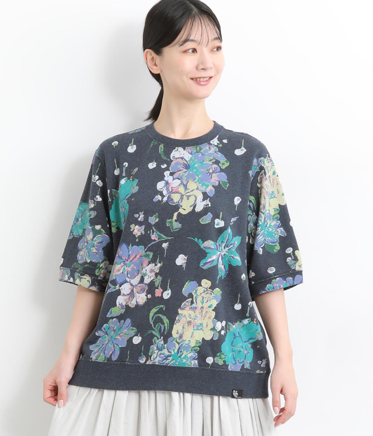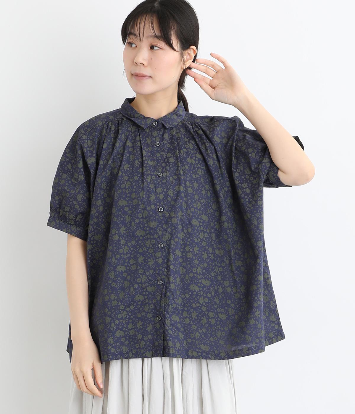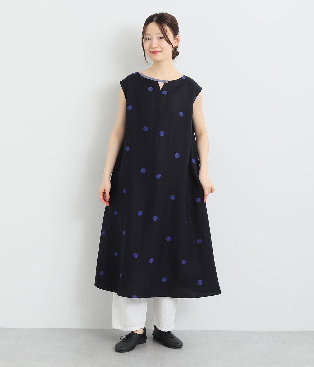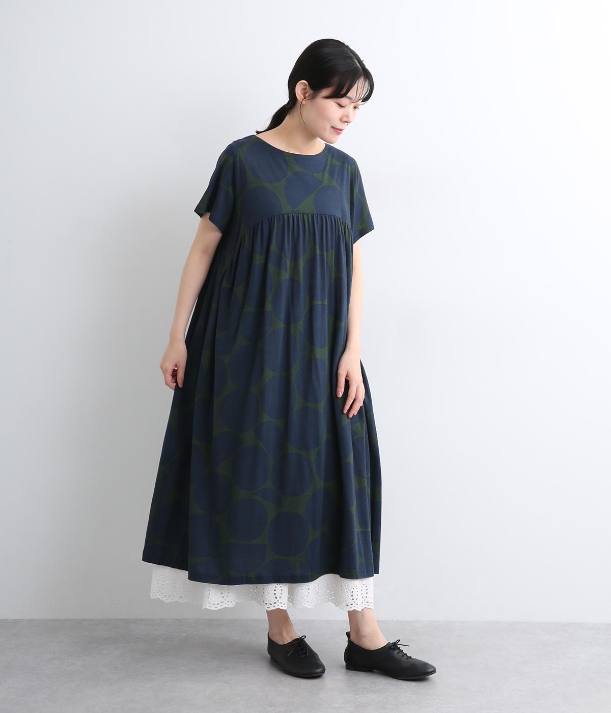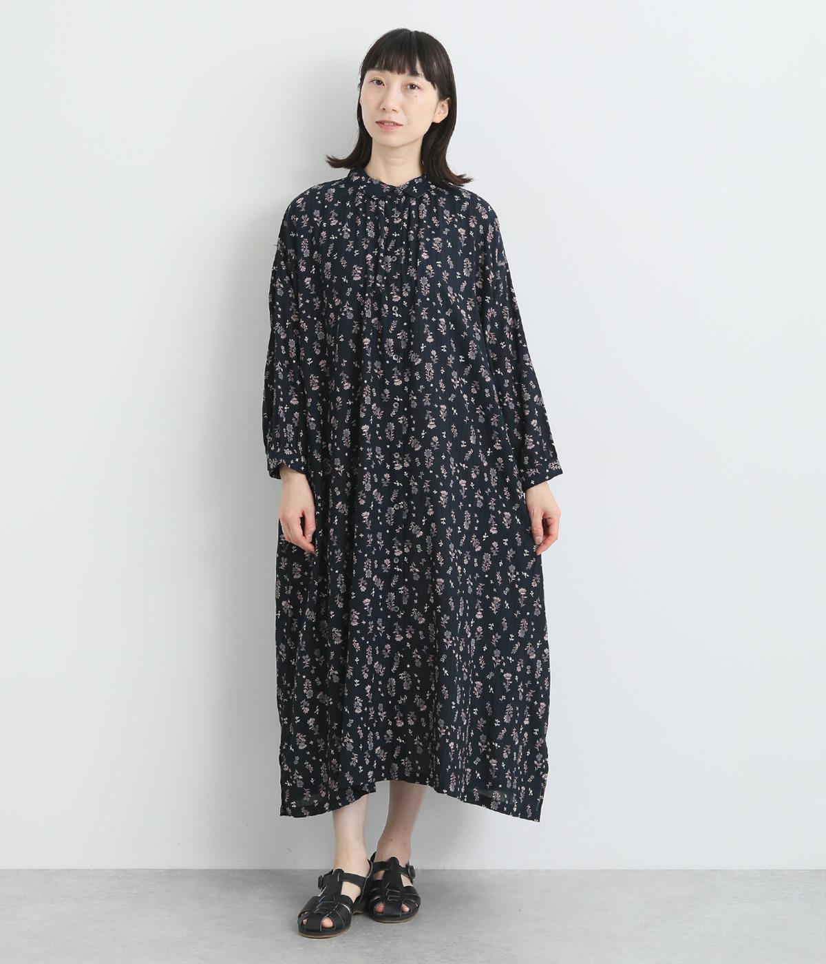 ローンフラワープリントワンピースネイビー