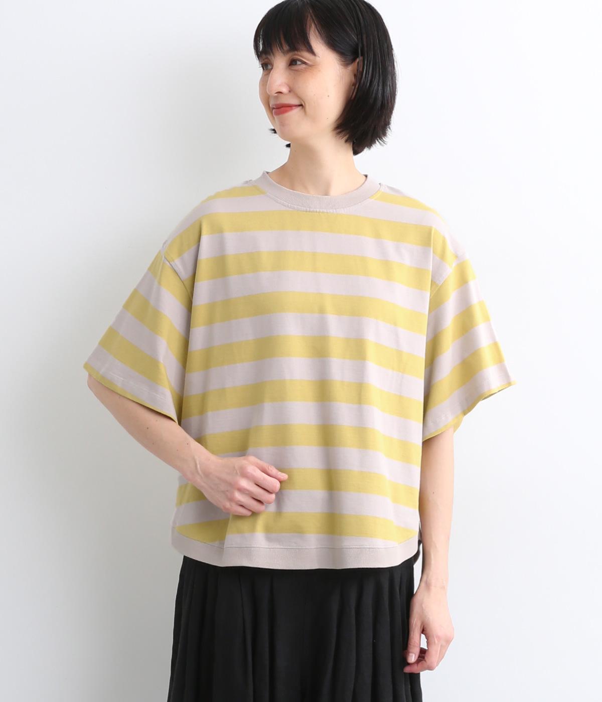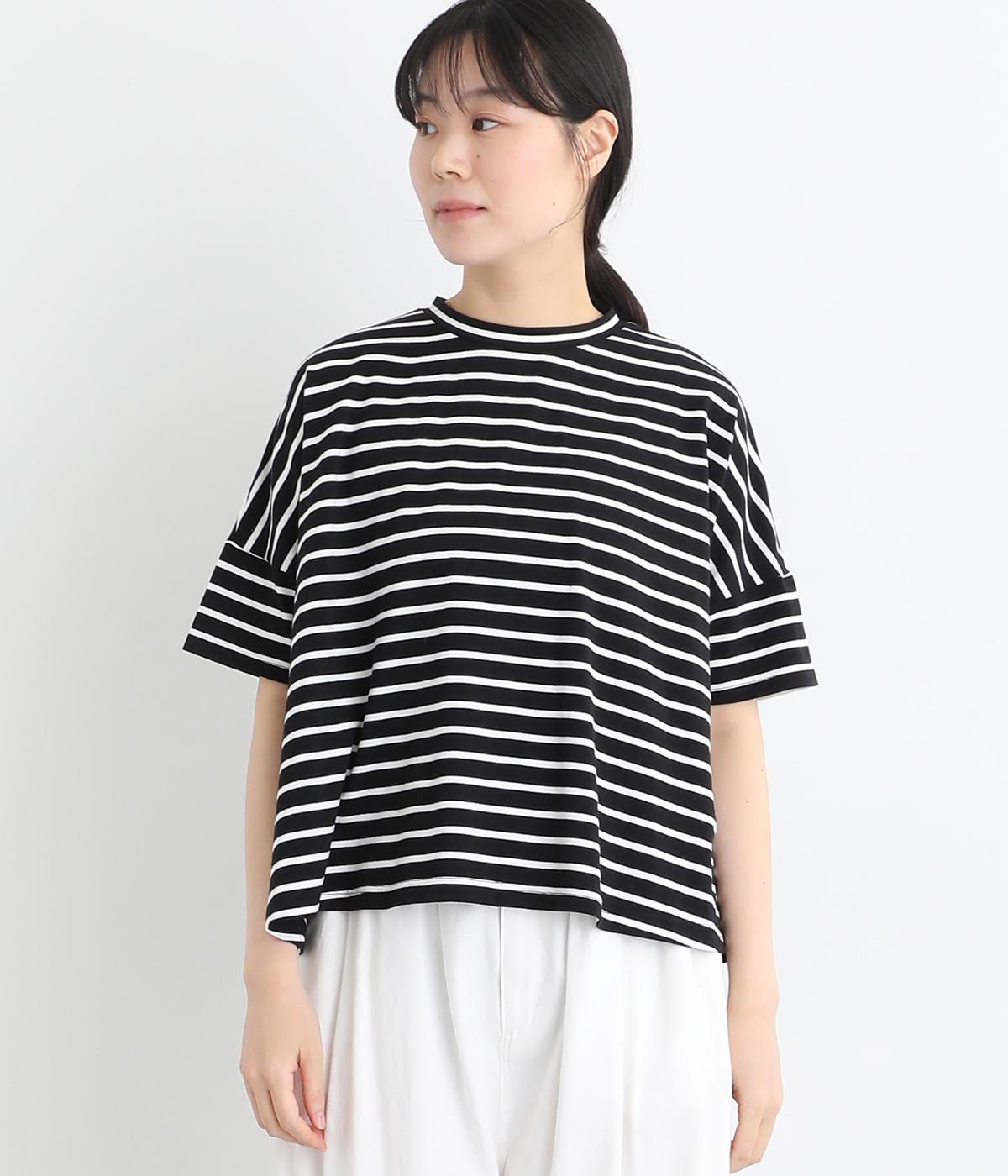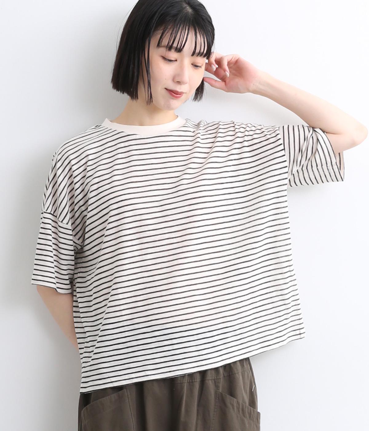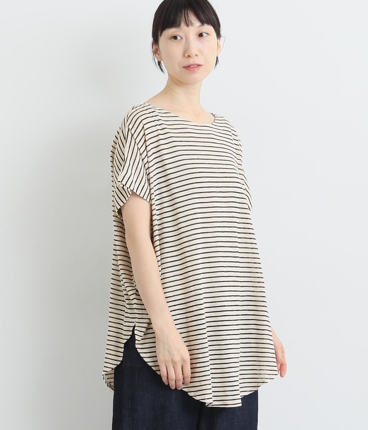 もちもちスムース ボーダー長袖Tシャツベージュ×ブラック