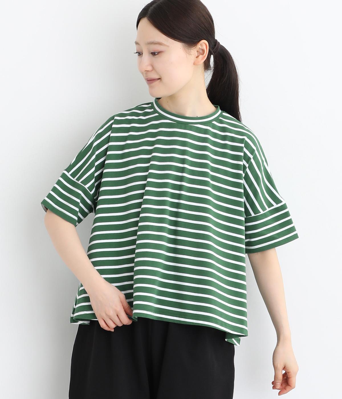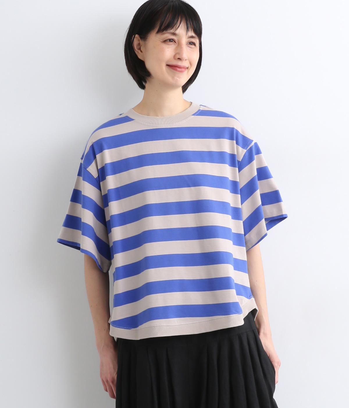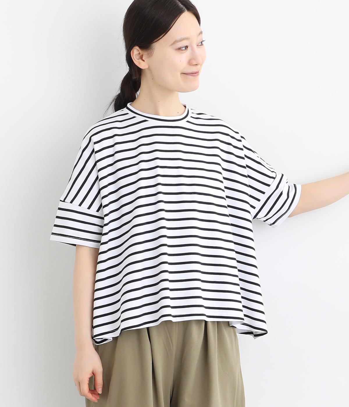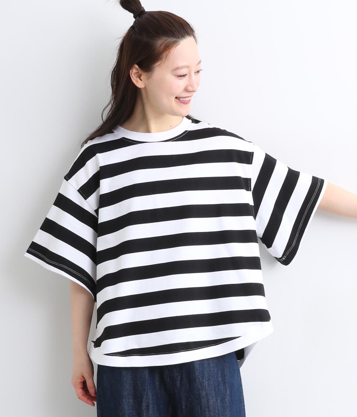 もちもちスムース ボーダー長袖Tシャツベージュ×ブラック