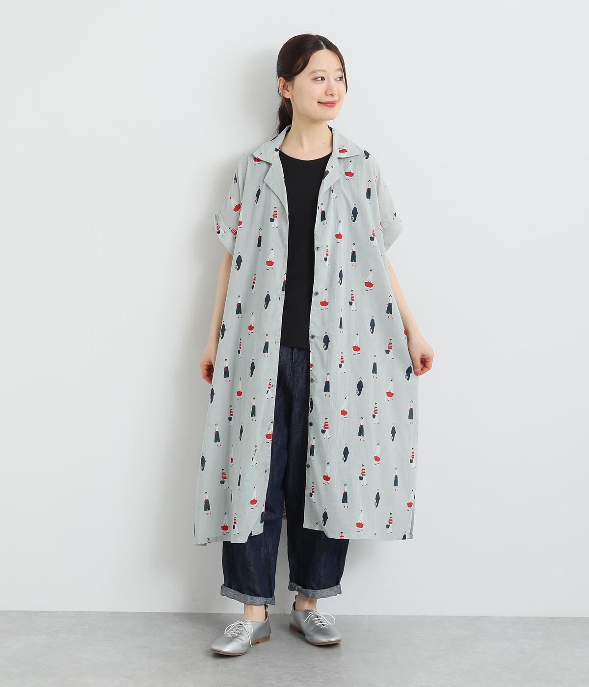 コットンタイプライターワンピースカーキ