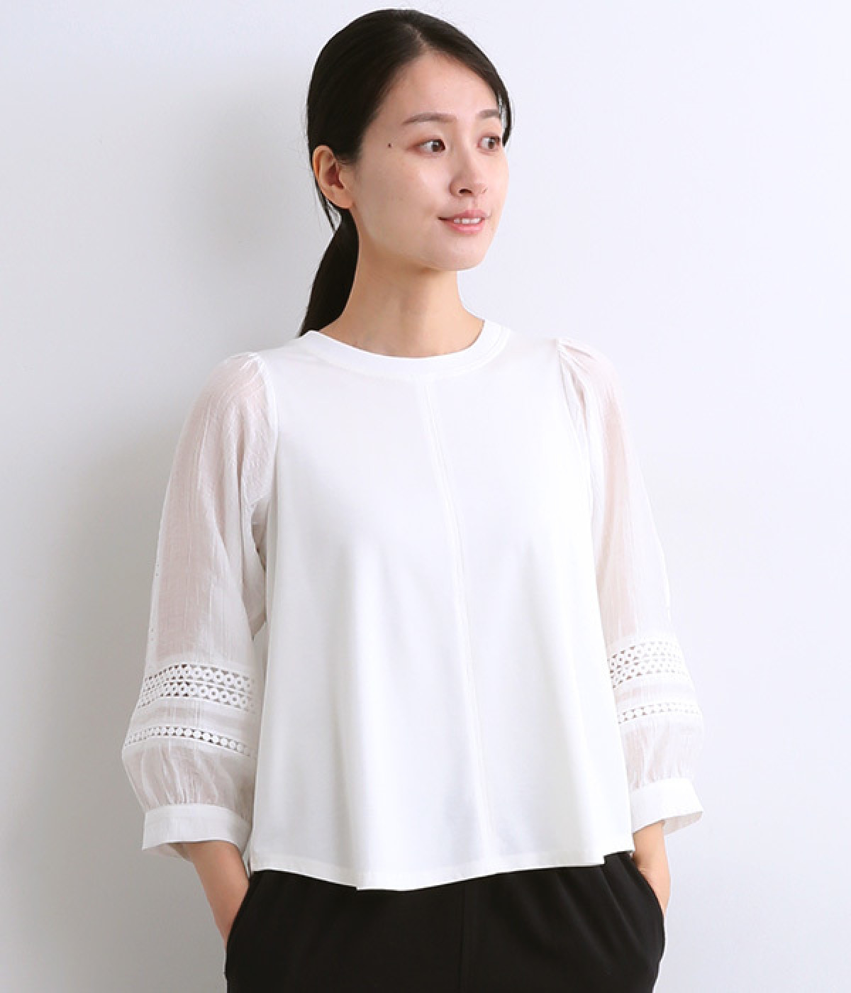 裾スリットTトレーナークリーム