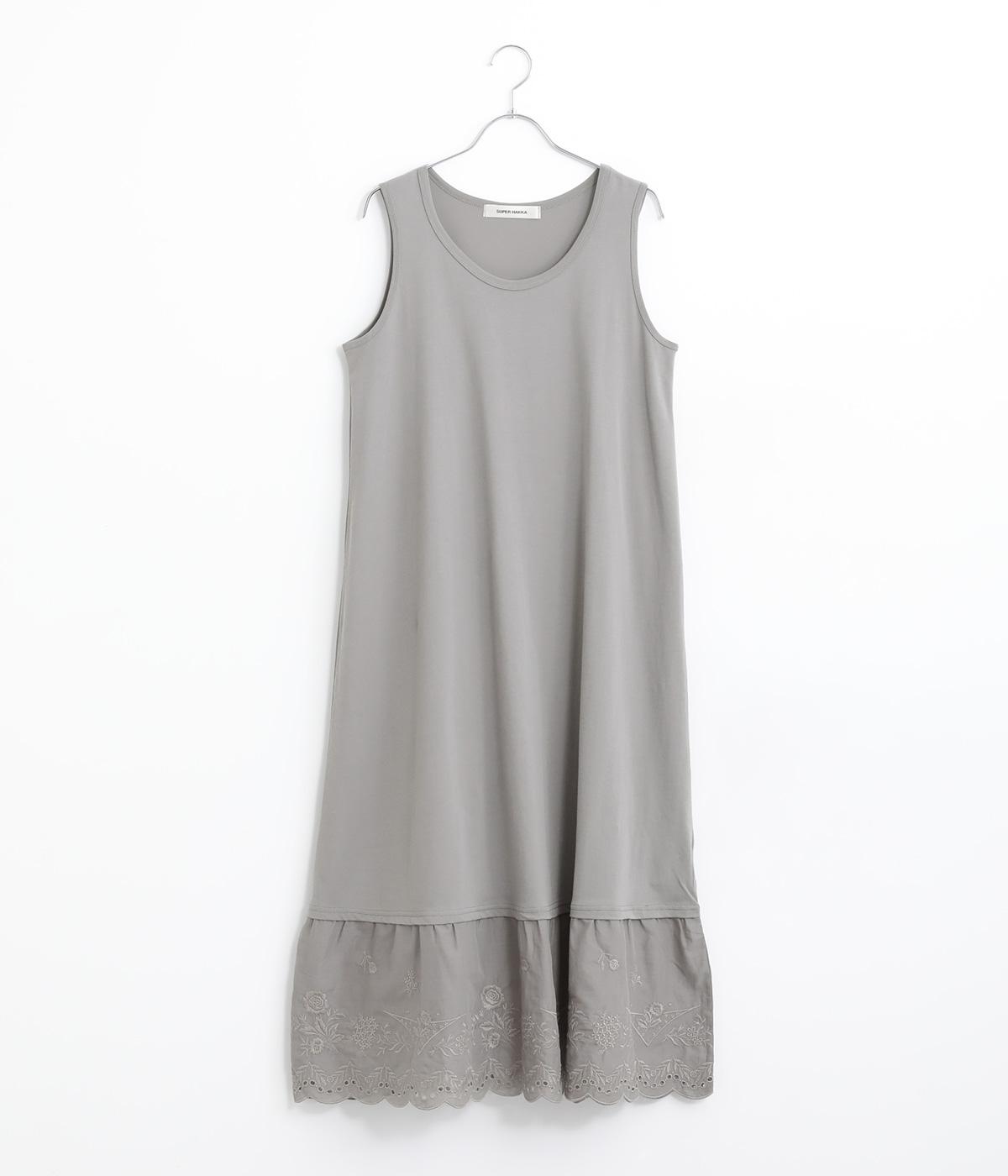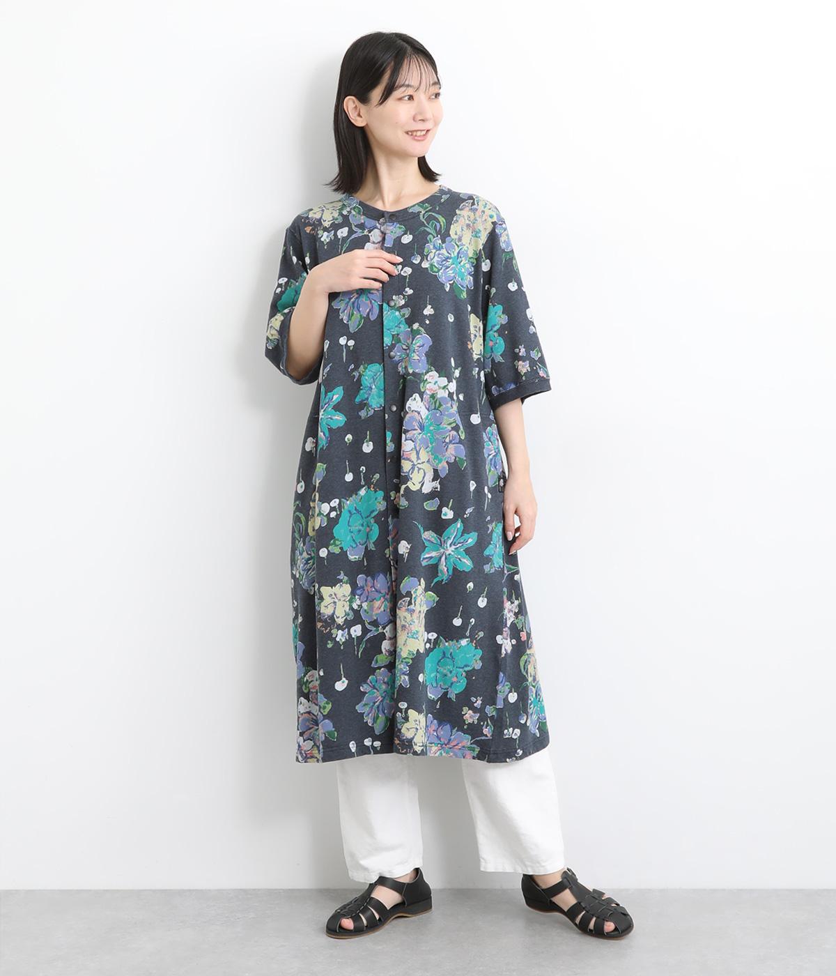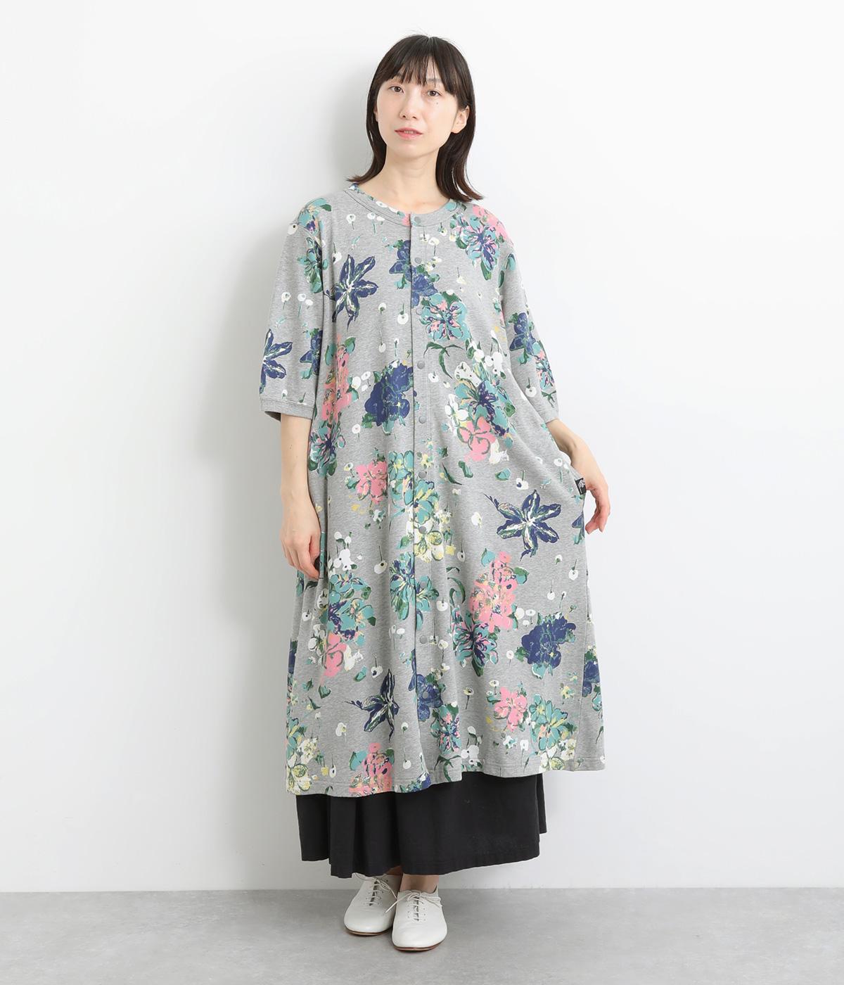 ローンフラワープリントワンピースグレー