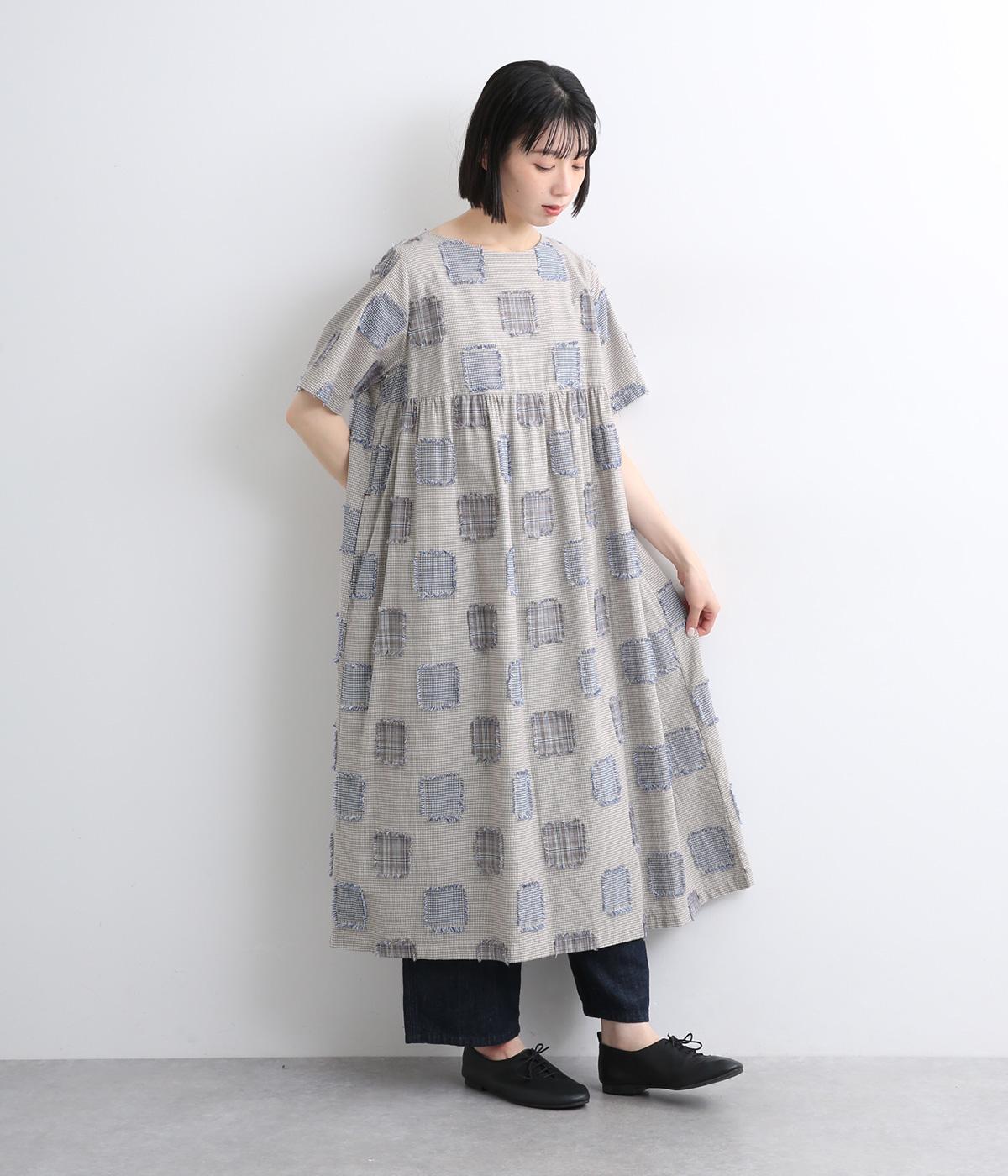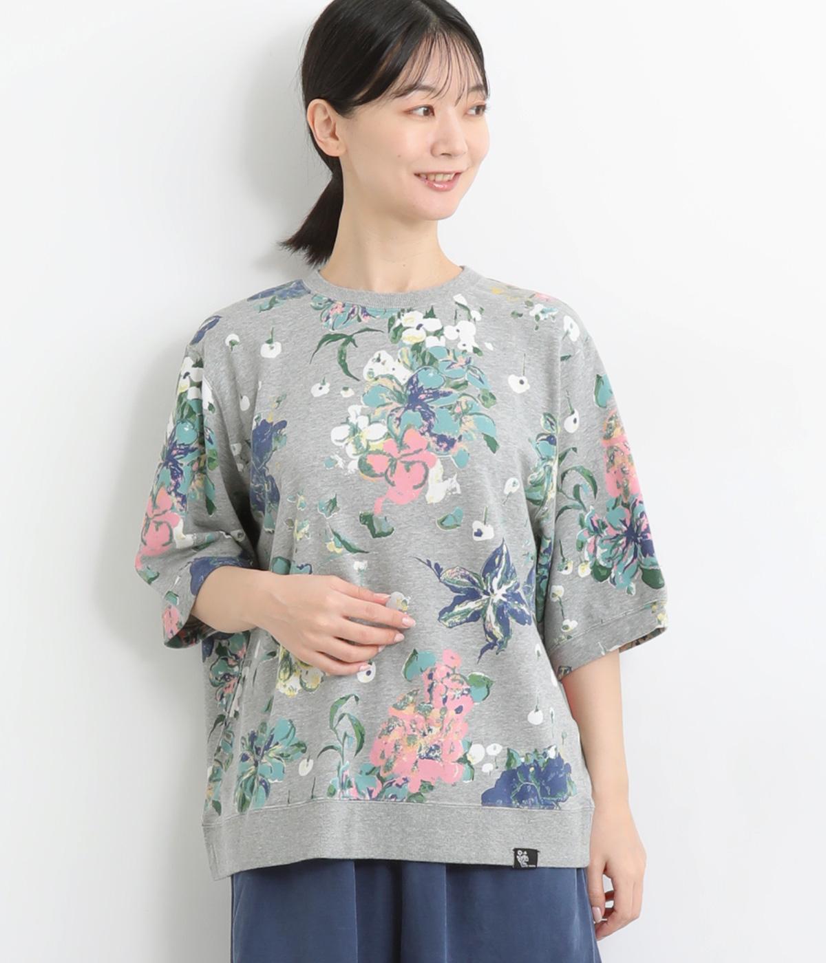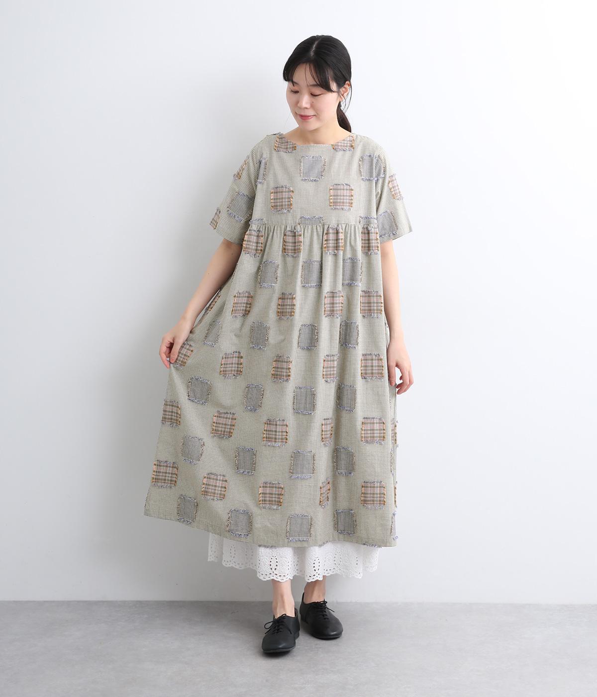 ローンフラワープリントワンピースグレー