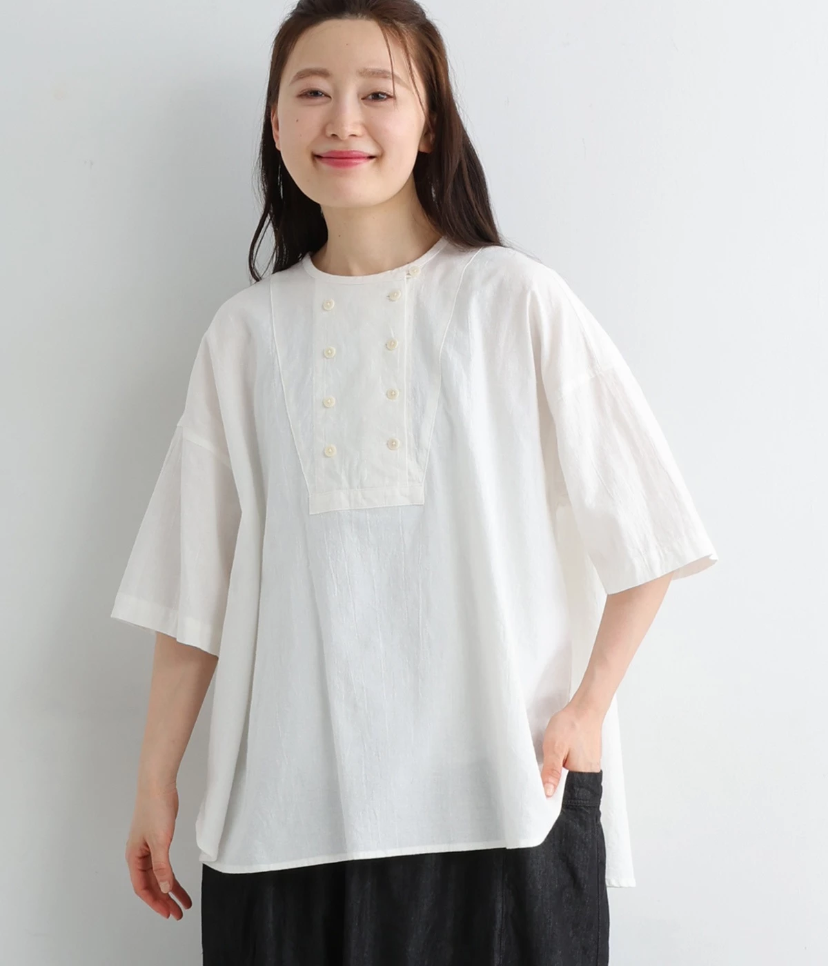 コットン ピンタックシャツホワイト