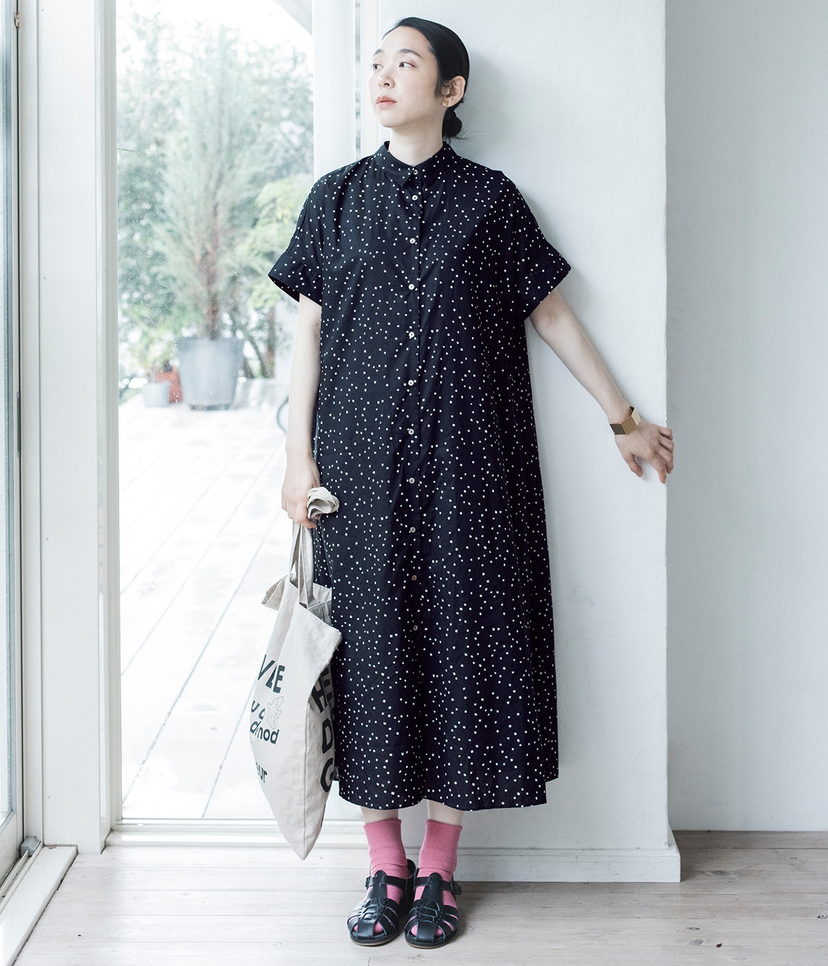 コットンタイプライターワンピースブラック
